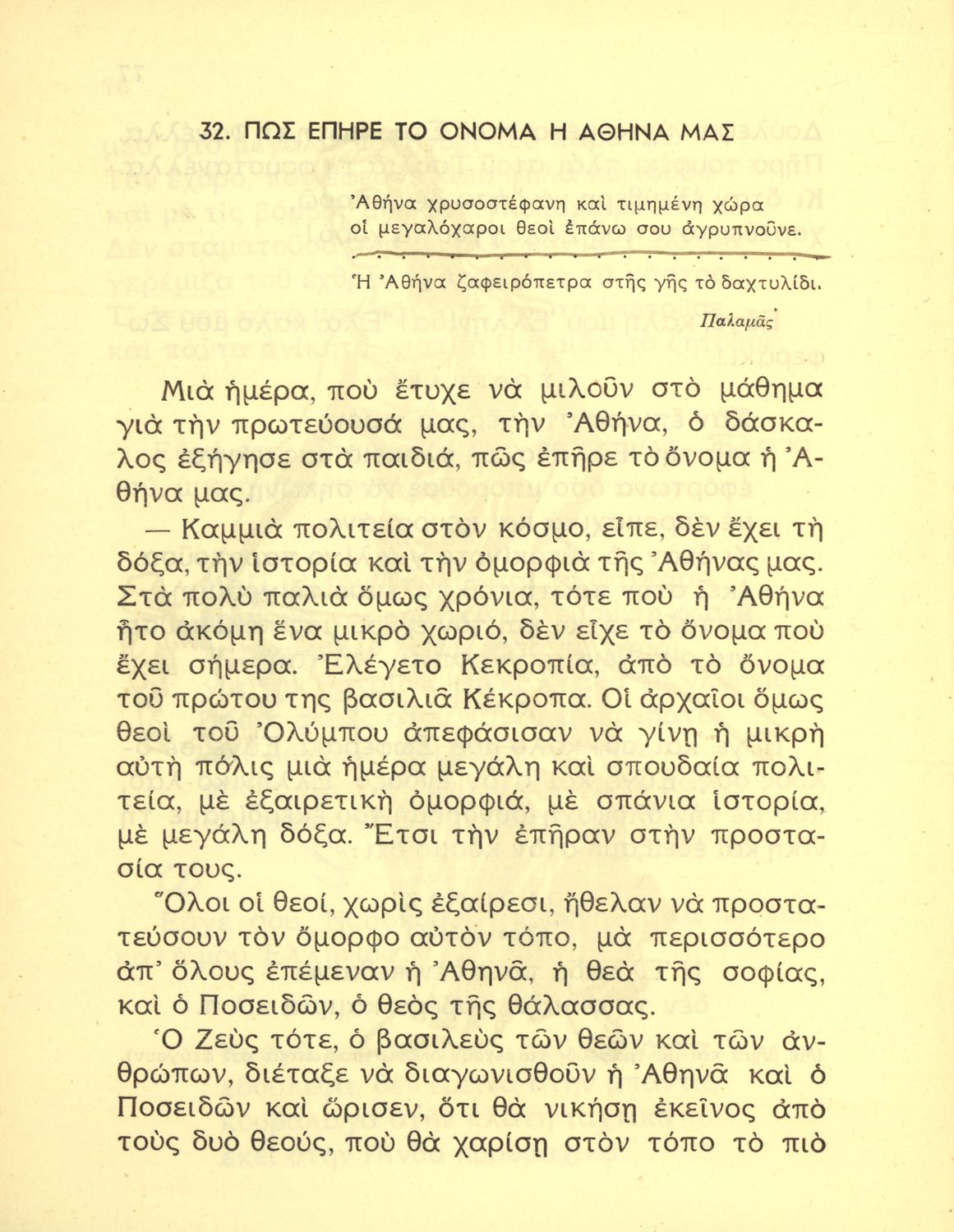 Αναγνωστικό Γ΄ Δημοτικού που περιλαμβάνει ποιήματα και πεζά εμπνευσμένα από την ελληνική φύση, τις ασχολίες των κατοίκων, την σύγχρονη ελληνική ιστορία, την ελληνική μυθολογία και τις θρησκευτικές γιορτές.