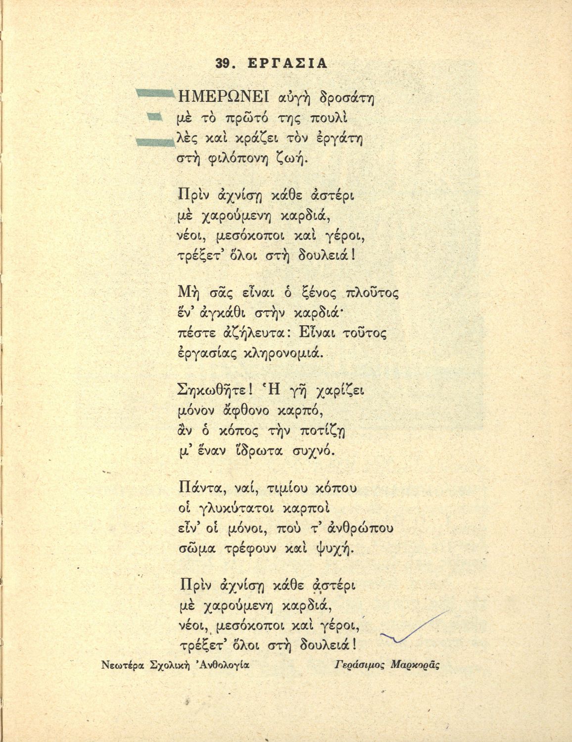 Αναγνωστικό Δ' Δημοτικού που είναι χωρισμένο σύμφωνα με τις εποχές του χρόνου και περιλαμβάνει ποιήματα και πεζά εμπνευσμένα από τη ζωή στην ύπαιθρο, την εθνική, οικογενειακή και κοινωνική ζωή, τη θρησκευτική παράδοση, τις ασχολίες των ανθρώπων, και την ελληνική φύση, ιστορία και μυθολογία.