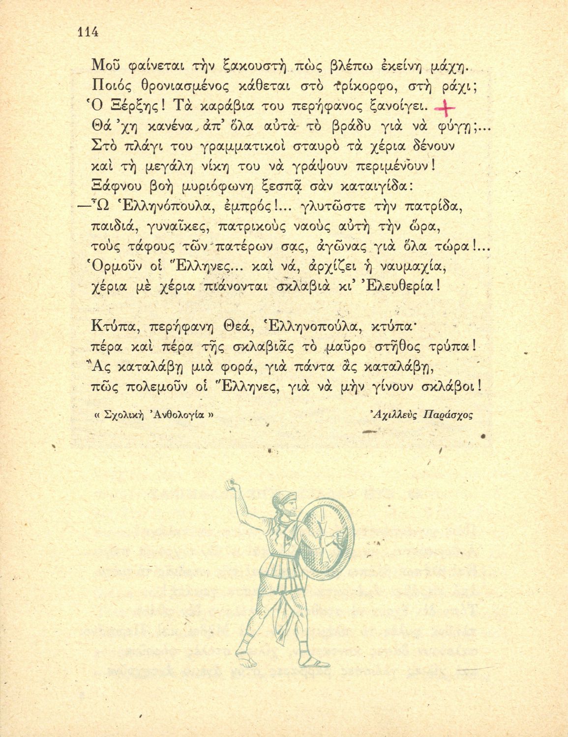 Βαθμίδα εκπαίδευσης: Πρωτοβάθμια Τάξη: Δ' Δημοτικού Μάθημα: Νέα Ελληνικά Γλώσσα: Δημοτική, Καθαρεύουσα Παρουσίαση περιεχομένου: Αναγνωστικό Δ' Δημοτικού που είναι χωρισμένο σύμφωνα με τις εποχές του χρόνου και περιλαμβάνει ποιήματα και πεζά εμπνευσμένα από τη ζωή στην ύπαιθρο, την εθνική, οικογενειακή και κοινωνική ζωή, τη θρησκευτική παράδοση, τις ασχολίες των ανθρώπων, και την ελληνική φύση, ιστορία και μυθολογία. |