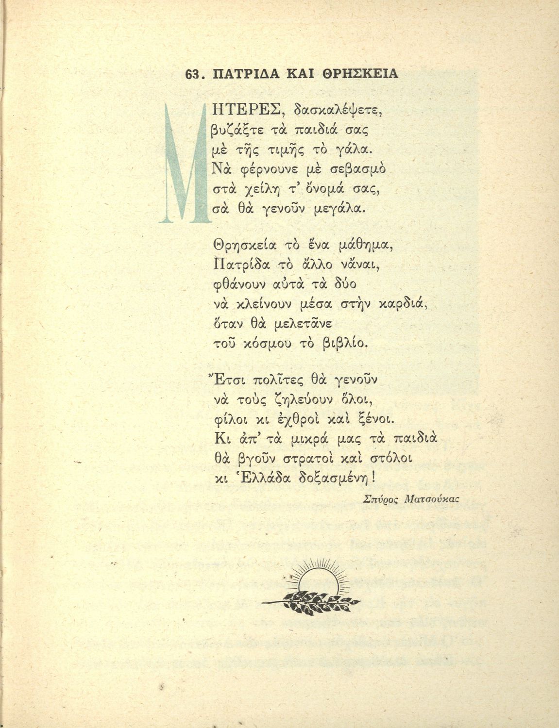 Αναγνωστικό Δ' Δημοτικού που είναι χωρισμένο σύμφωνα με τις εποχές του χρόνου και περιλαμβάνει ποιήματα και πεζά εμπνευσμένα από τη ζωή στην ύπαιθρο, την εθνική, οικογενειακή και κοινωνική ζωή, τη θρησκευτική ...