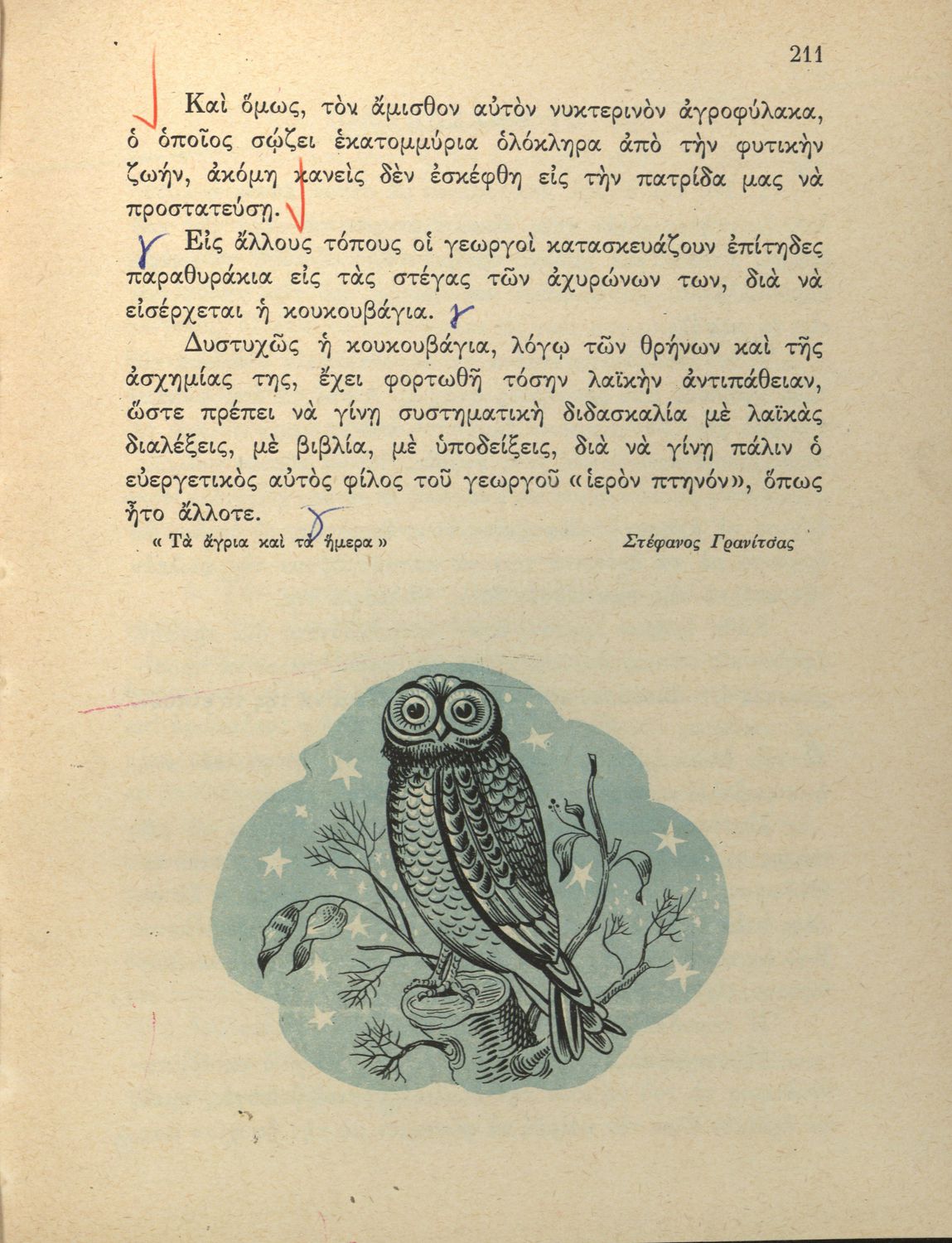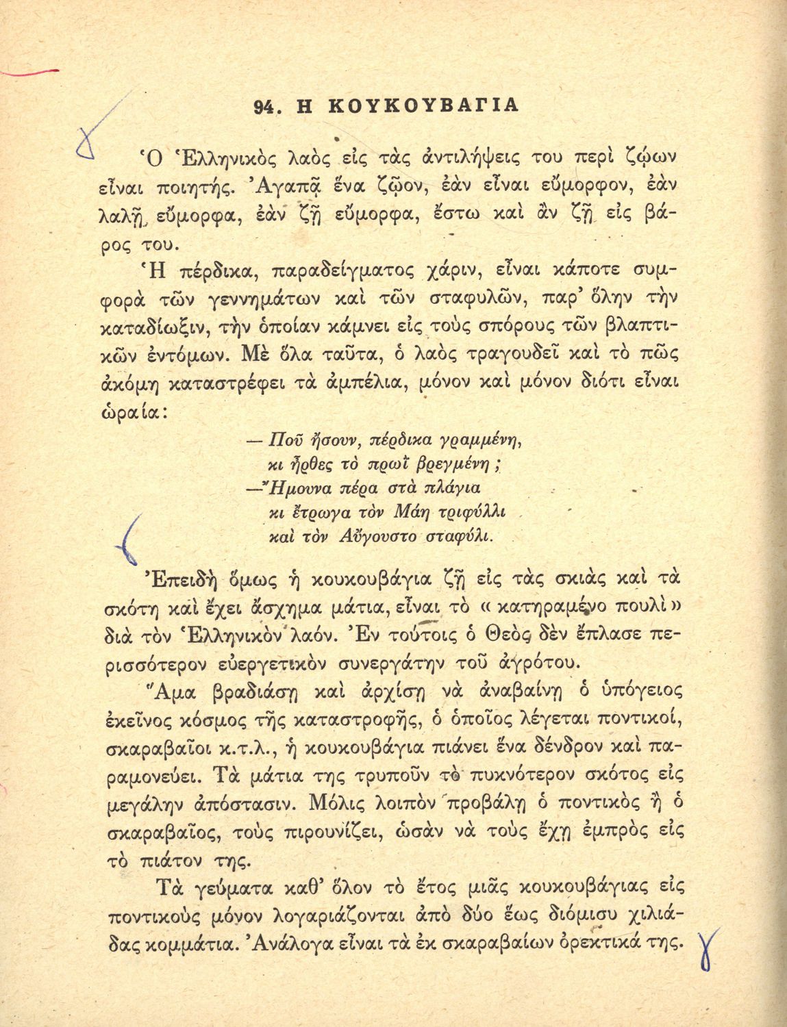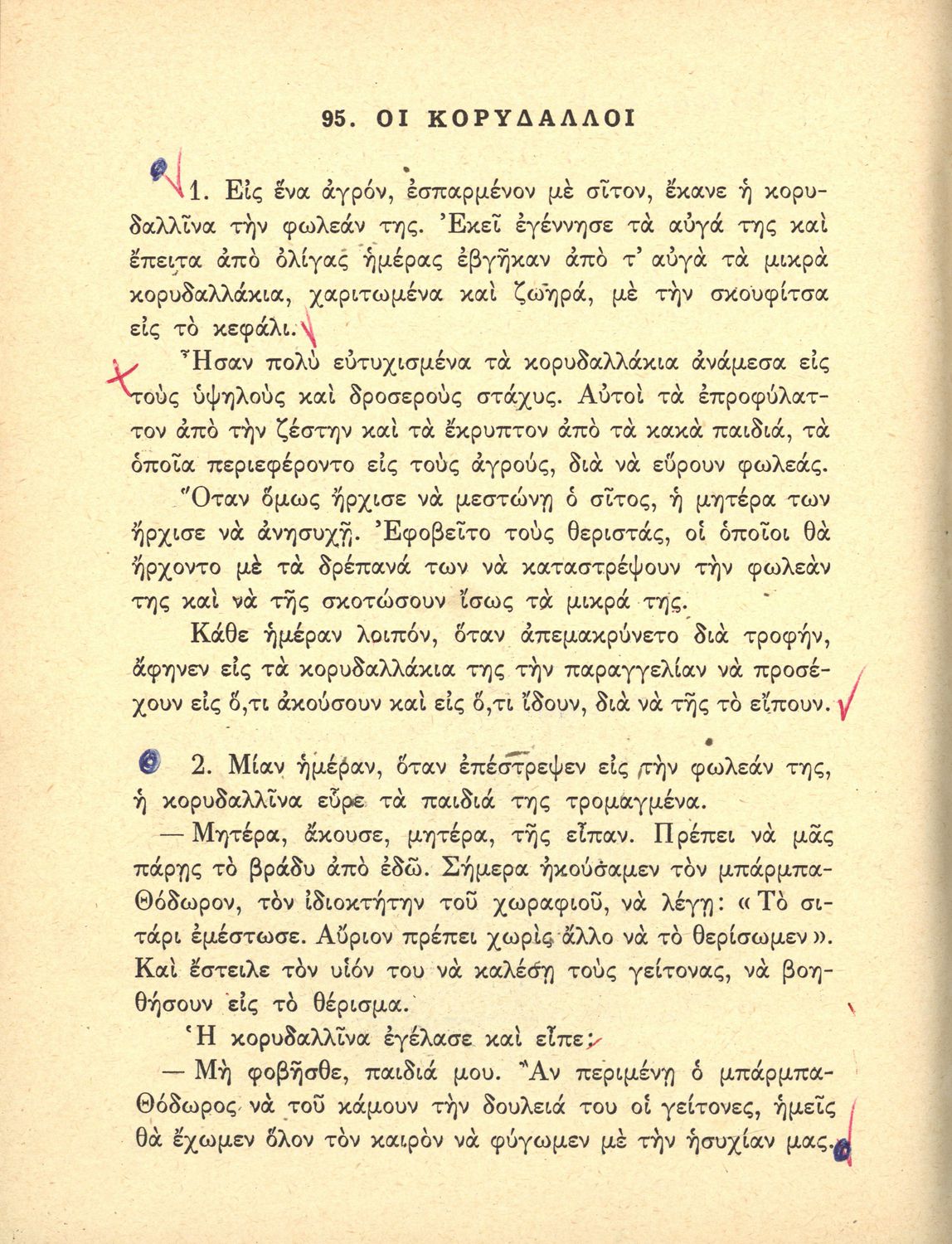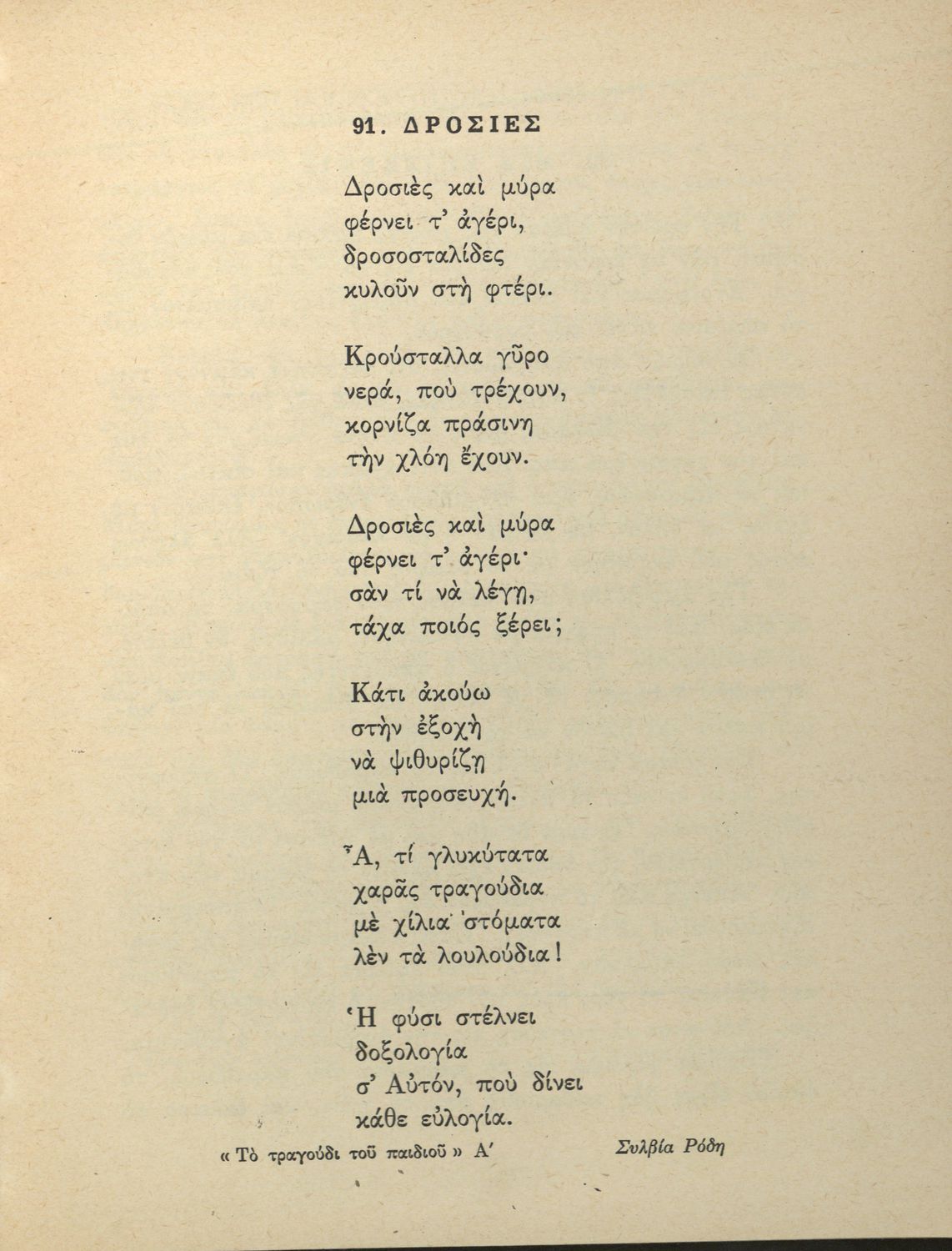 Αναγνωστικό Δ' Δημοτικού που είναι χωρισμένο σύμφωνα με τις εποχές του χρόνου και περιλαμβάνει ποιήματα και πεζά εμπνευσμένα από τη ζωή στην ύπαιθρο, την εθνική, οικογενειακή και κοινωνική ζωή, τη θρησκευτική παράδοση, τις ασχολίες των ανθρώπων, και την ελληνική φύση, ιστορία και μυθολογία.