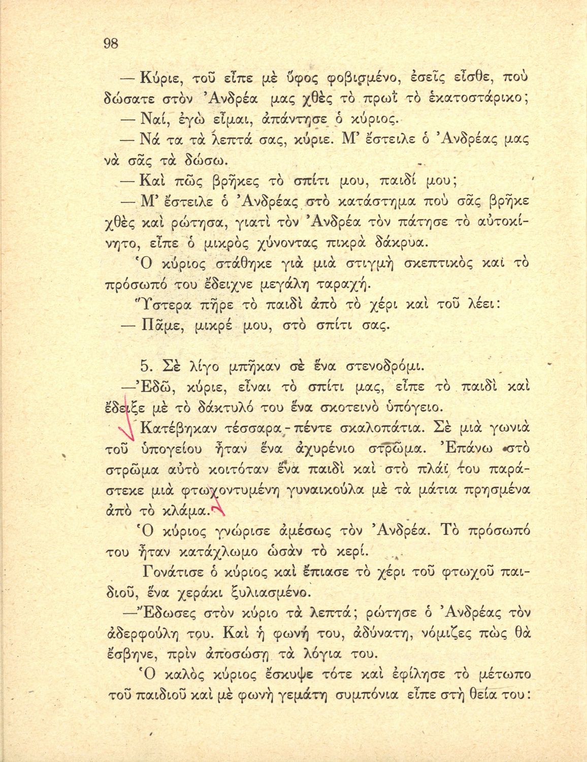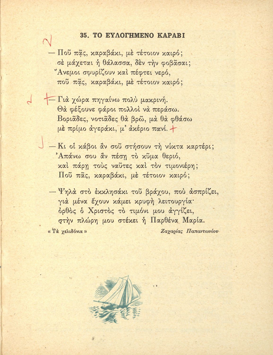 Αναγνωστικό Δ' Δημοτικού που είναι χωρισμένο σύμφωνα με τις εποχές του χρόνου και περιλαμβάνει ποιήματα και πεζά εμπνευσμένα από τη ζωή στην ύπαιθρο, την εθνική, οικογενειακή και κοινωνική ζωή, τη θρησκευτική παράδοση, τις ασχολίες των ανθρώπων, και την ελληνική φύση, ιστορία και μυθολογία.