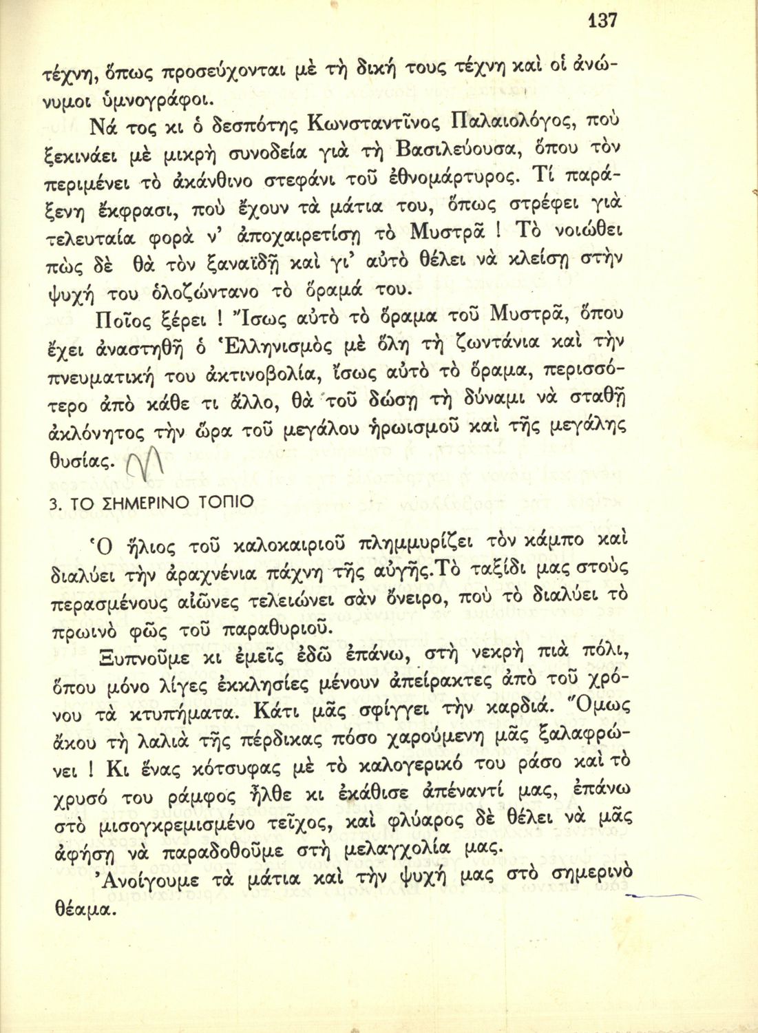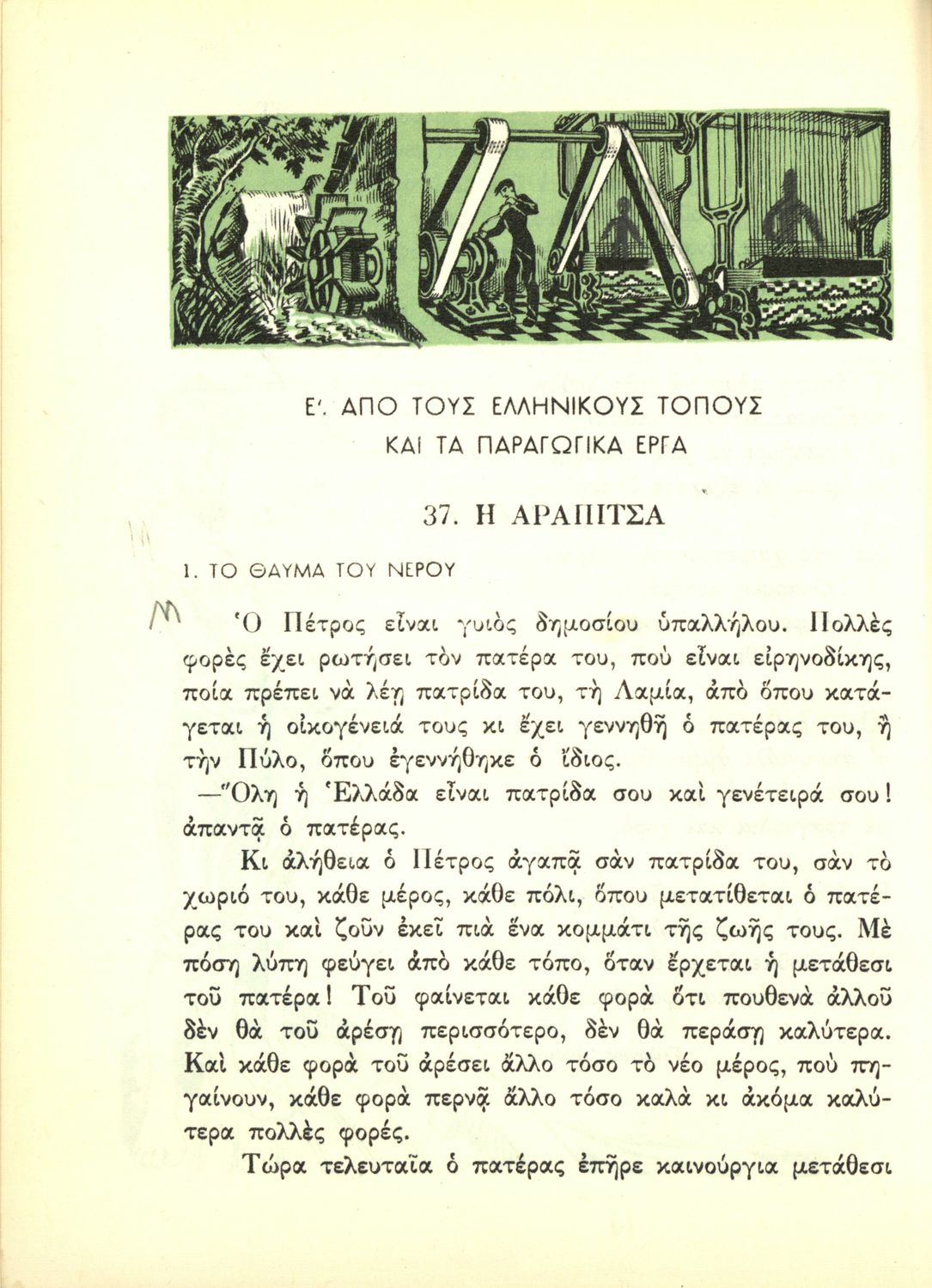 Αναγνωστικό Ε΄ Δημοτικού που περιέχει πεζά και ποιήματα εμπνευσμένα από τη θρησκευτική, εθνική, κοινωνική ζωή καθώς και από τις ασχολίες των Ελλήνων, την αρχαία και σύγχρονη ελληνική ιστορία και τον πολιτισμό.