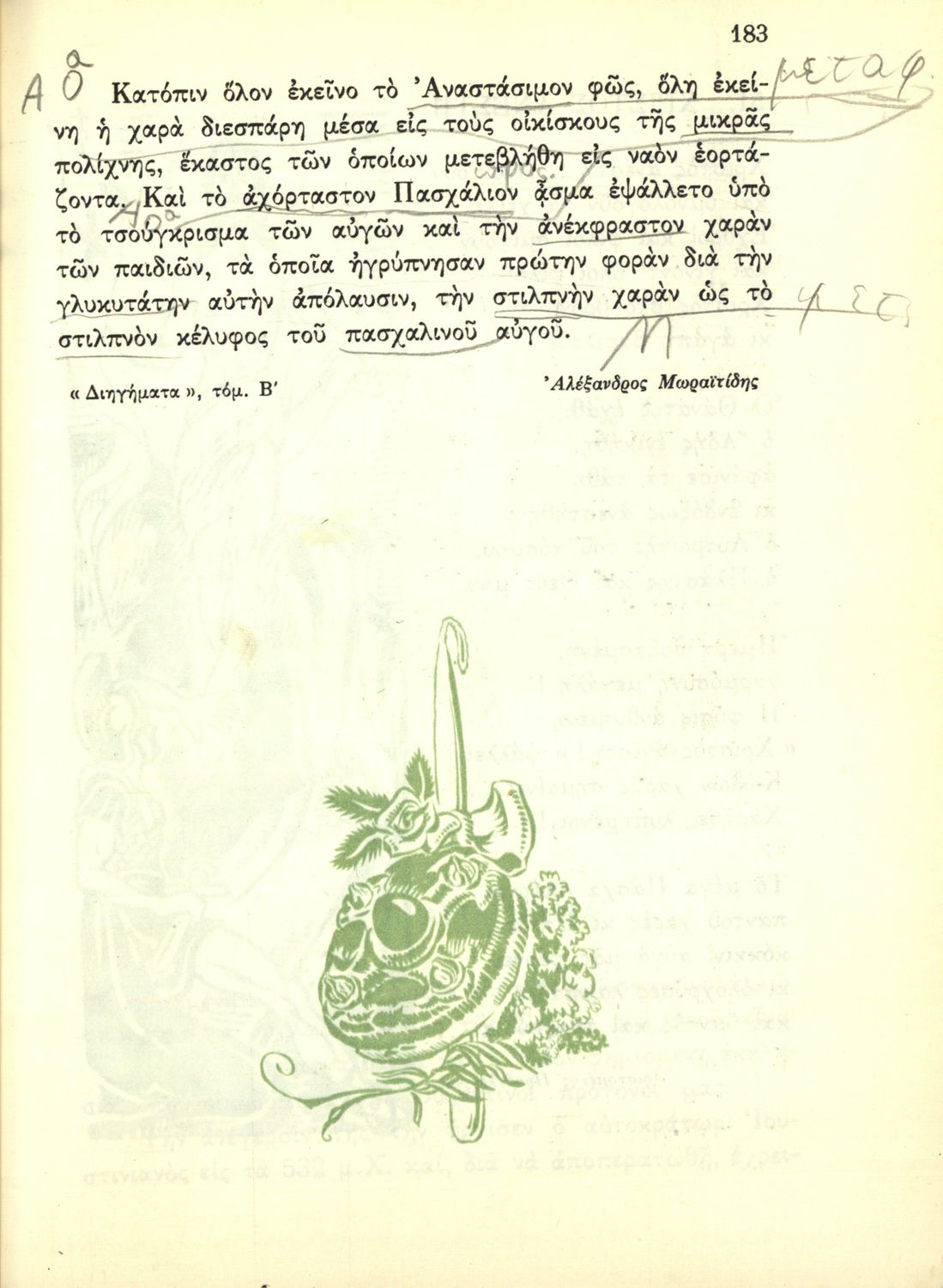 Αναγνωστικό Ε΄ Δημοτικού που περιέχει πεζά και ποιήματα εμπνευσμένα από τη θρησκευτική, εθνική, κοινωνική ζωή καθώς και από τις ασχολίες των Ελλήνων, την αρχαία και σύγχρονη ελληνική ιστορία και τον πολιτισμό.