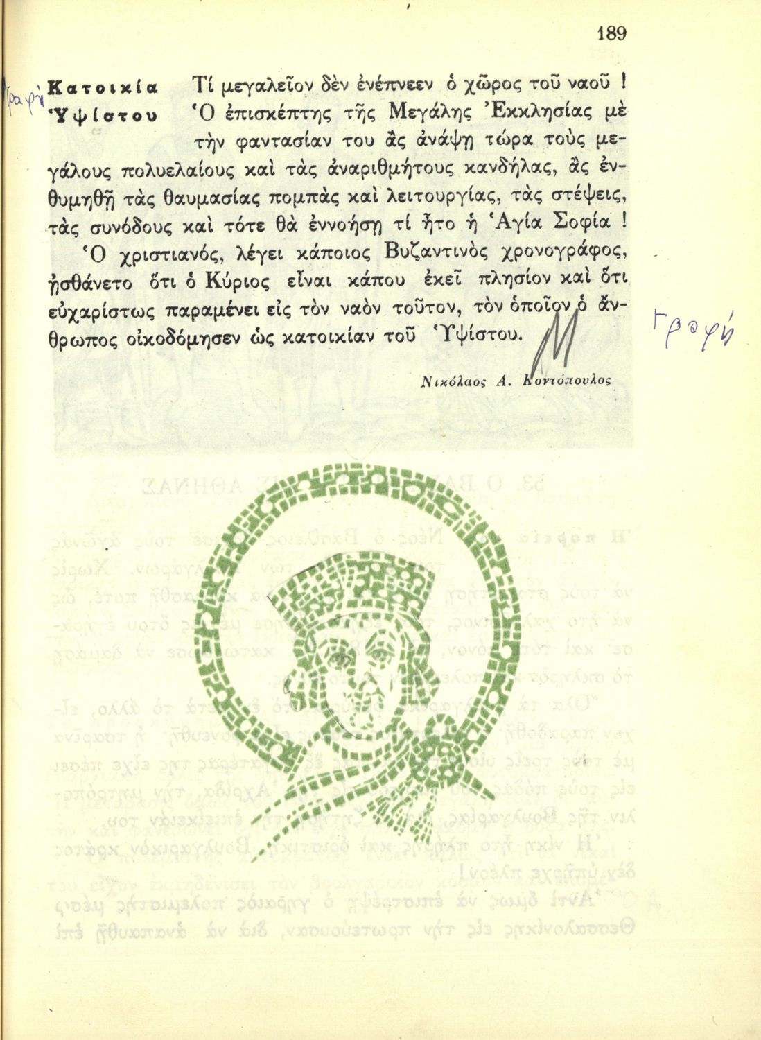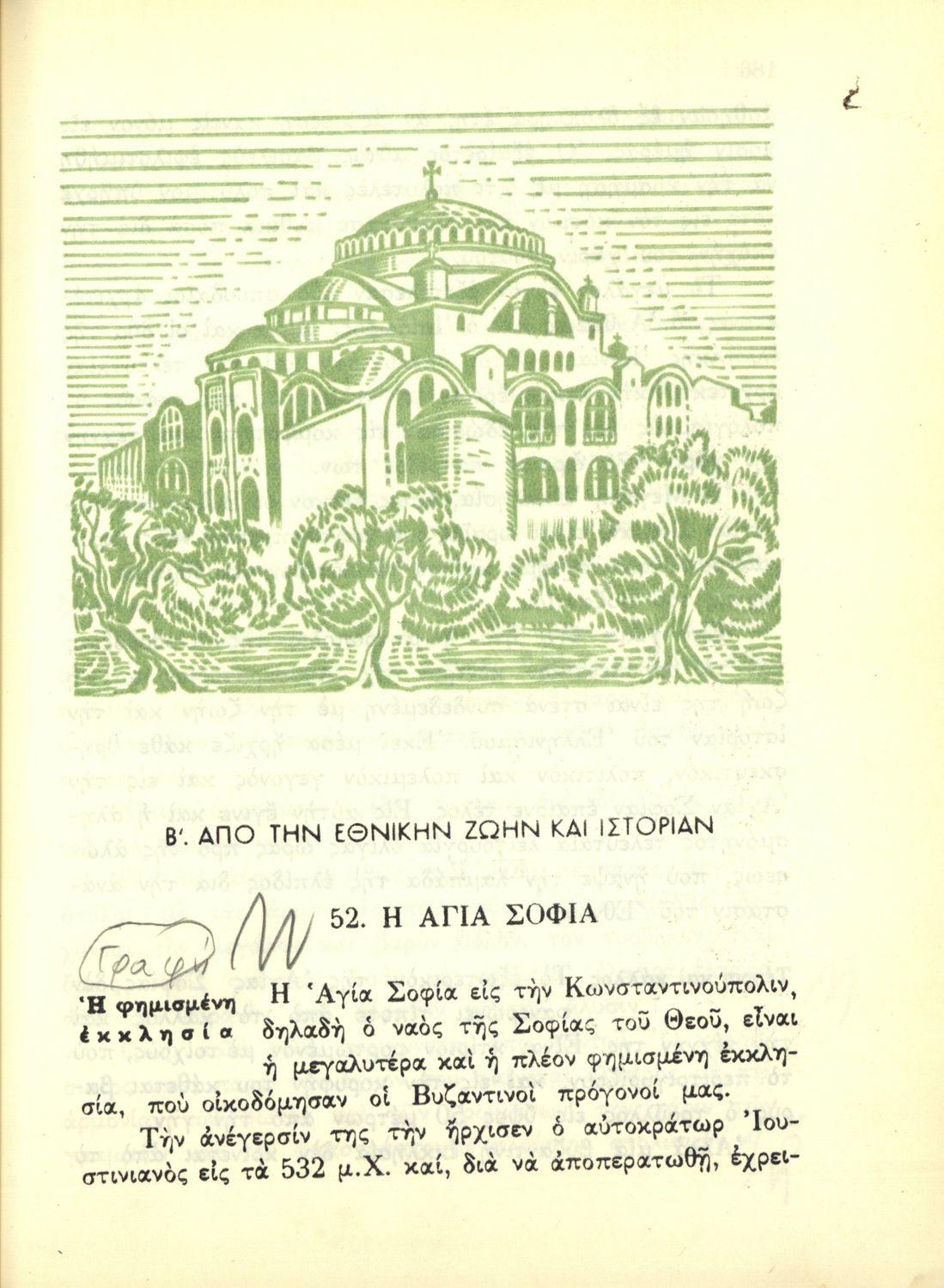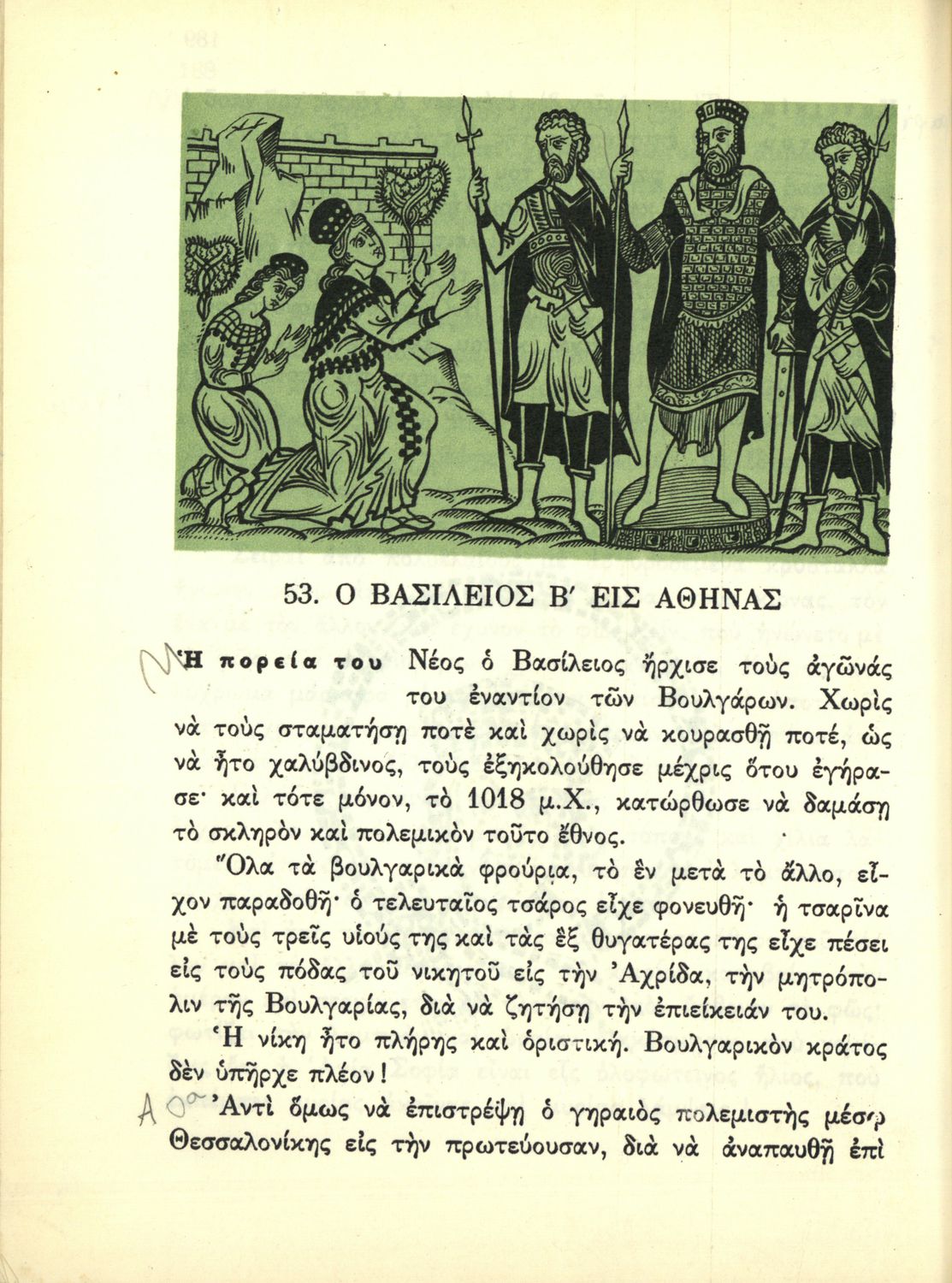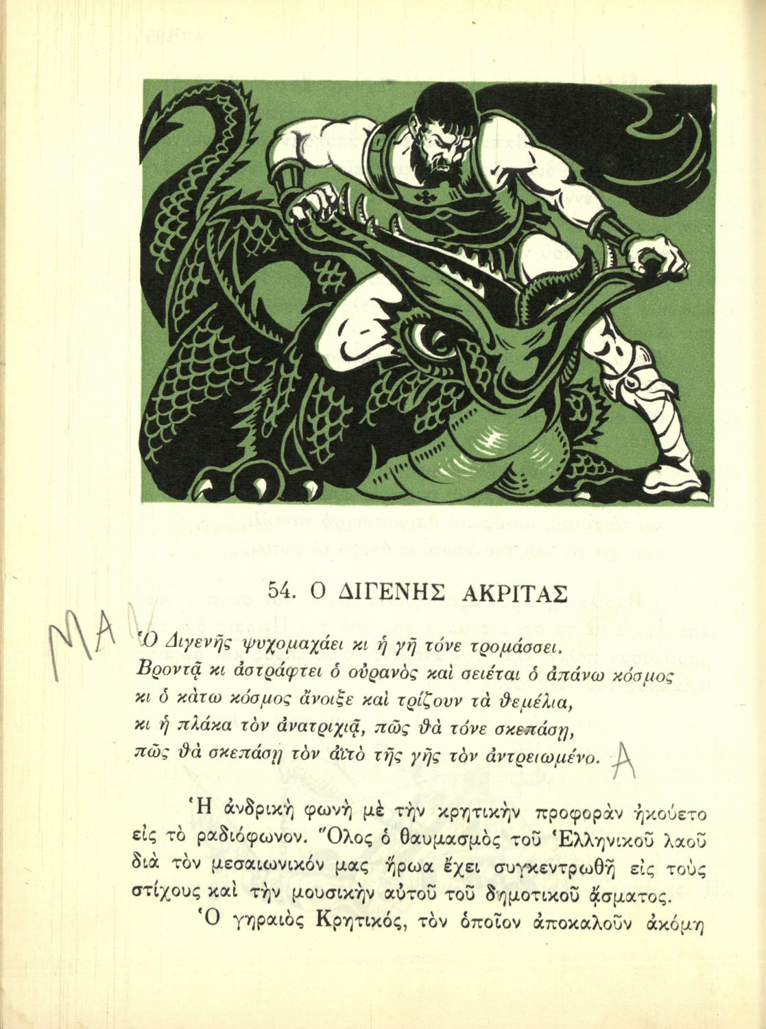 Αναγνωστικό Ε΄ Δημοτικού που περιέχει κείμενα εμπνευσμένα από την εθνική, κοινωνική και οικογενειακή ζωή και την ελληνική φύση, μυθολογία και ιστορία. Φέρει το σύμβολο της δικτατορίας.