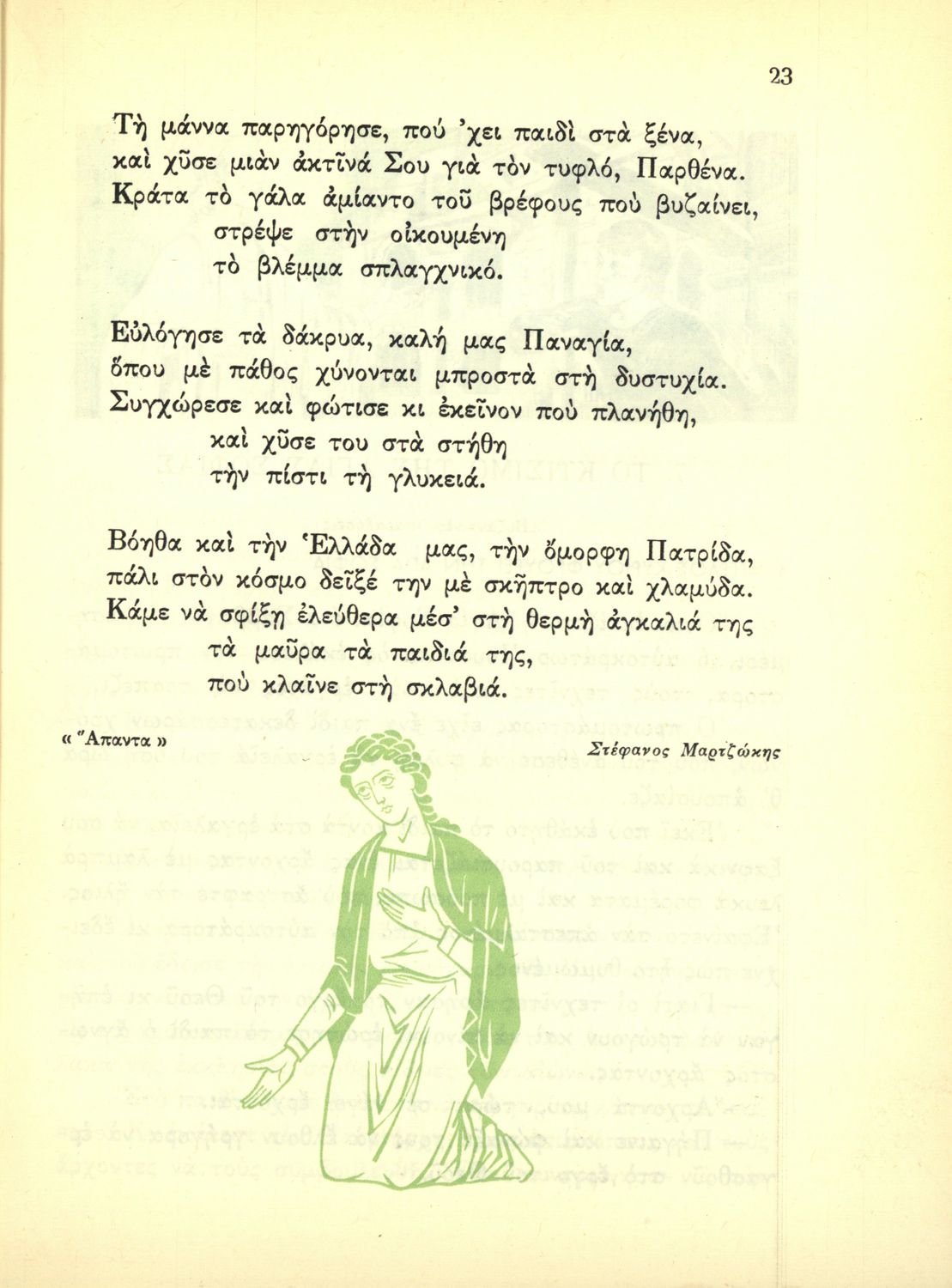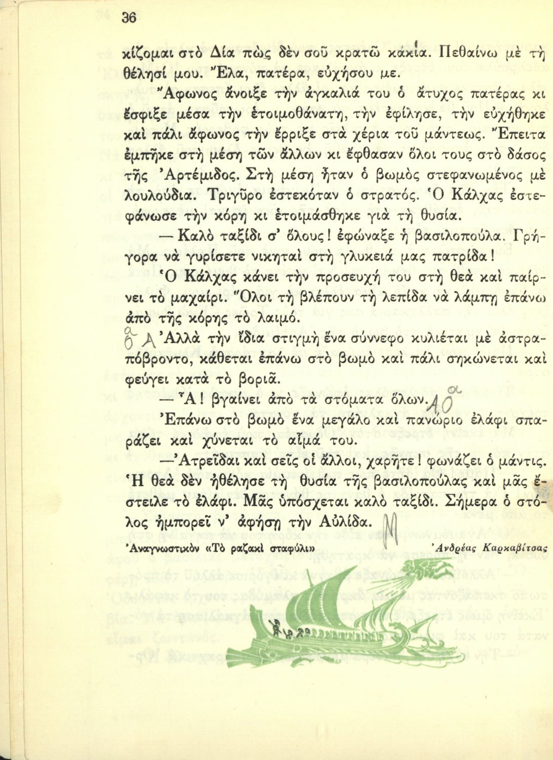 Αναγνωστικό Ε΄ Δημοτικού που περιέχει πεζά και ποιήματα εμπνευσμένα από τη θρησκευτική, εθνική, κοινωνική ζωή καθώς και από τις ασχολίες των Ελλήνων, την αρχαία και σύγχρονη ελληνική ιστορία και τον πολιτισμό.