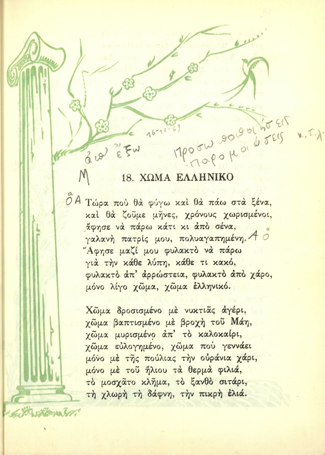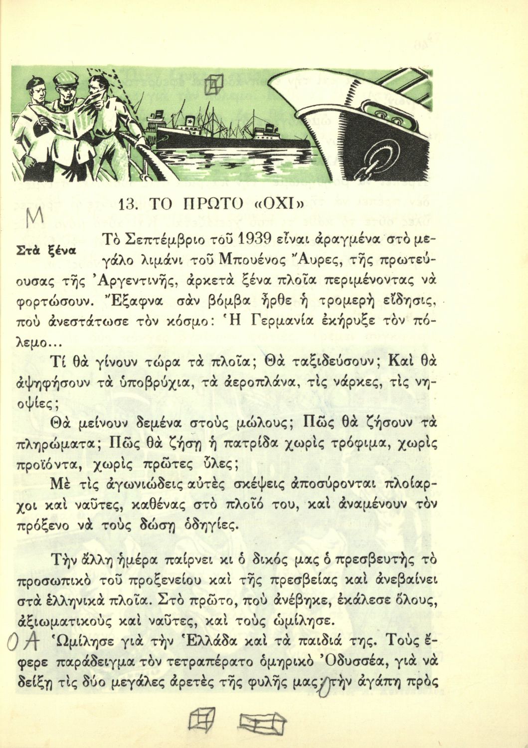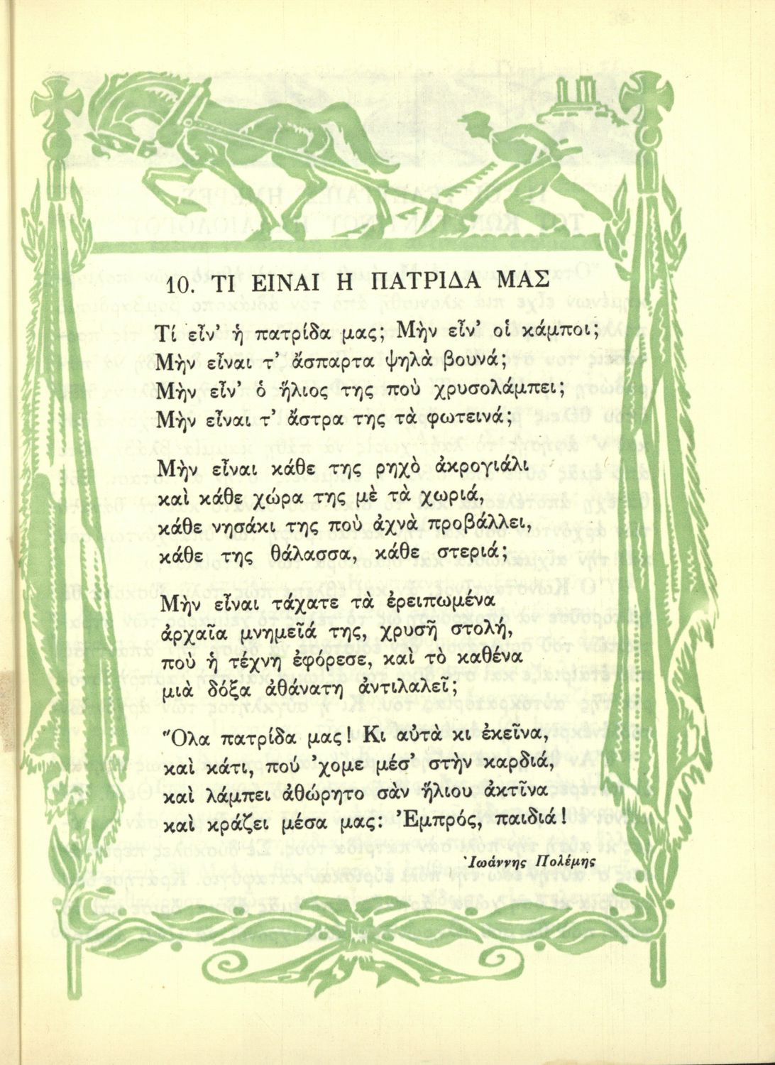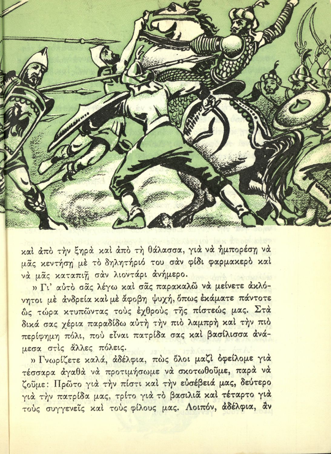 Αναγνωστικό Ε΄ Δημοτικού που περιέχει κείμενα εμπνευσμένα από την εθνική, κοινωνική και οικογενειακή ζωή και την ελληνική φύση, μυθολογία και ιστορία. Φέρει το σύμβολο της δικτατορίας.