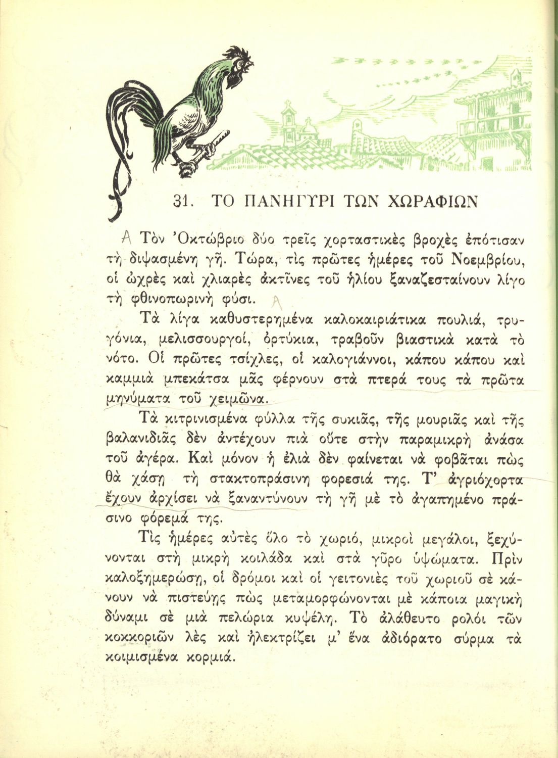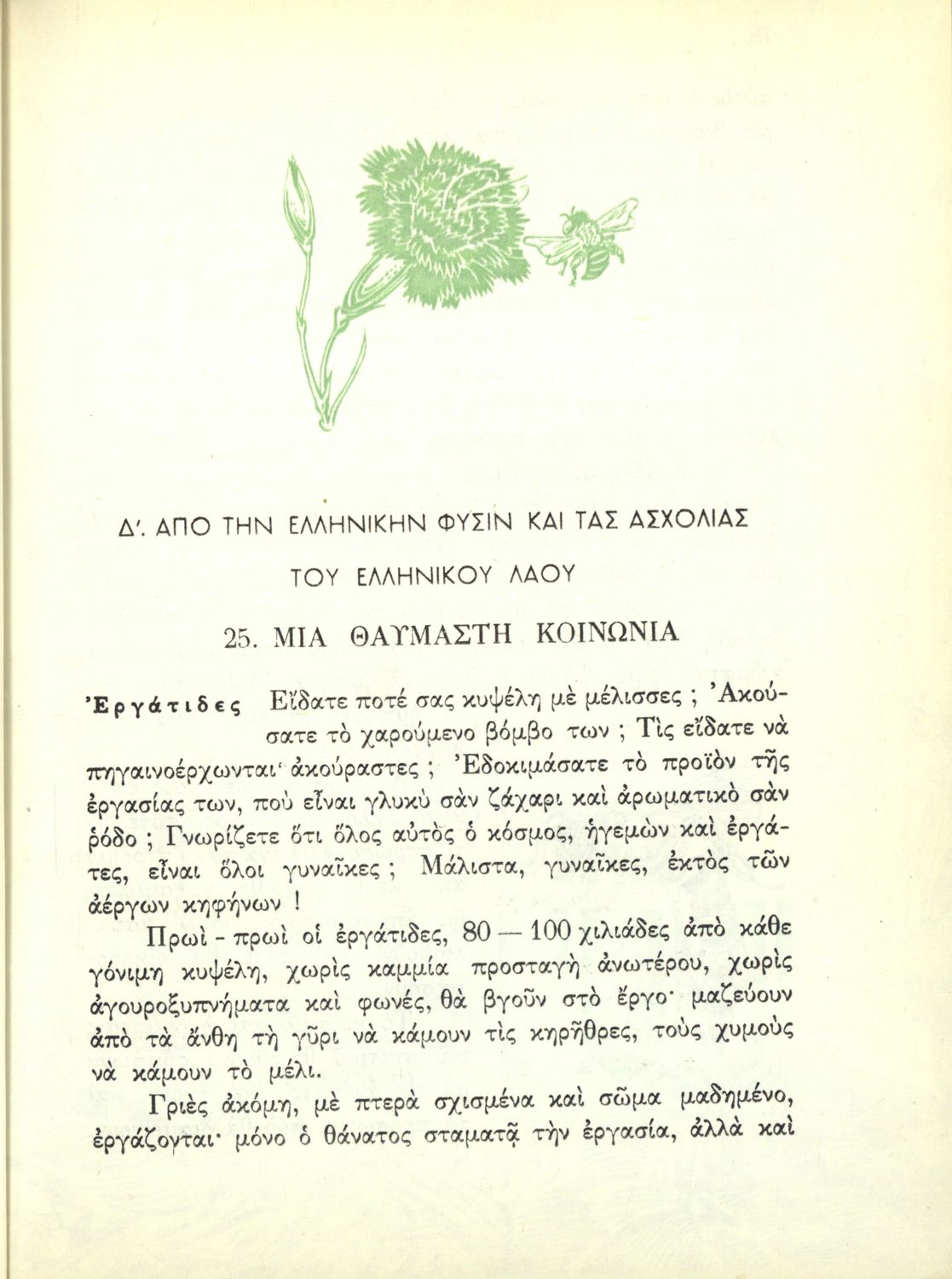Αναγνωστικό Ε΄ Δημοτικού που περιέχει κείμενα εμπνευσμένα από την εθνική, κοινωνική και οικογενειακή ζωή και την ελληνική φύση, μυθολογία και ιστορία.