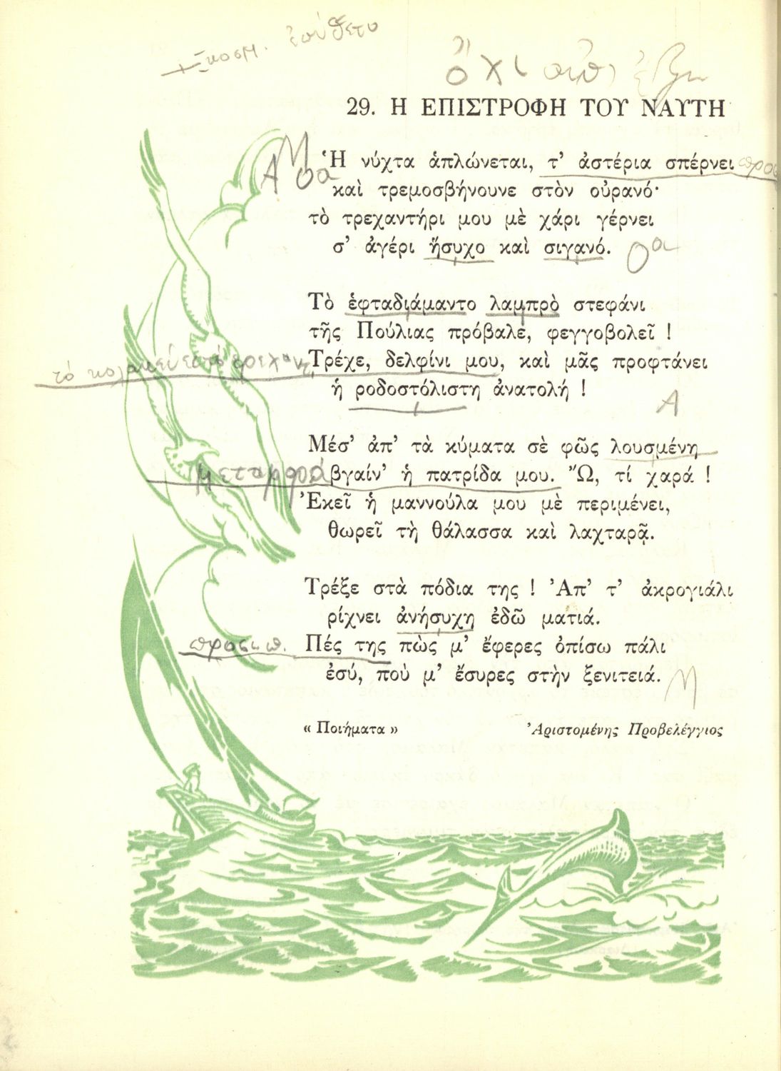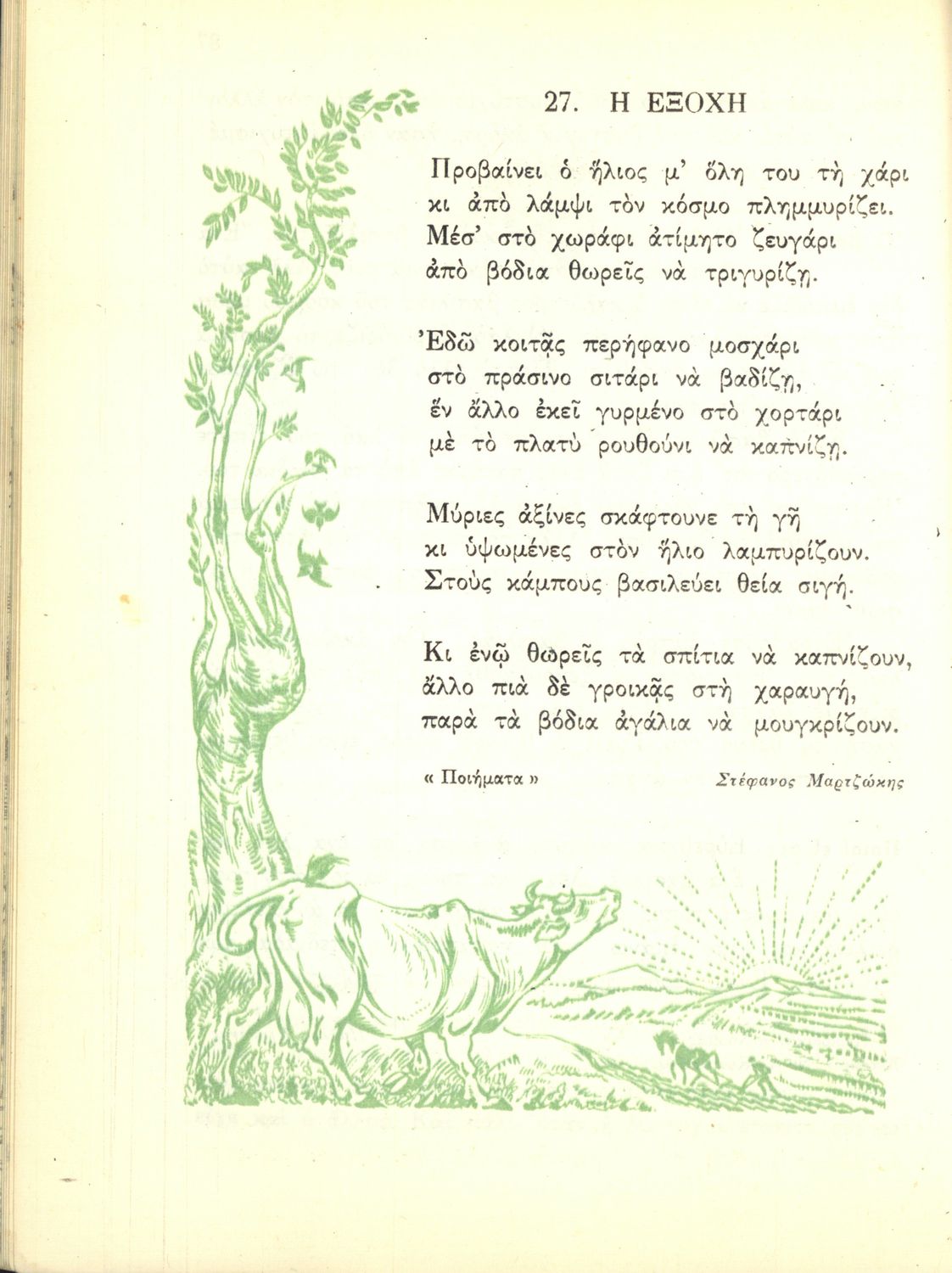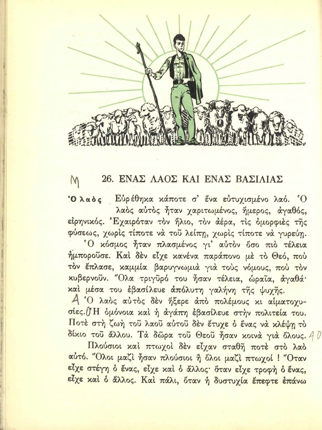 Αναγνωστικό Ε΄ Δημοτικού που περιέχει κείμενα εμπνευσμένα από την εθνική, κοινωνική και οικογενειακή ζωή και την ελληνική φύση, μυθολογία και ιστορία. Φέρει το σύμβολο της δικτατορίας.