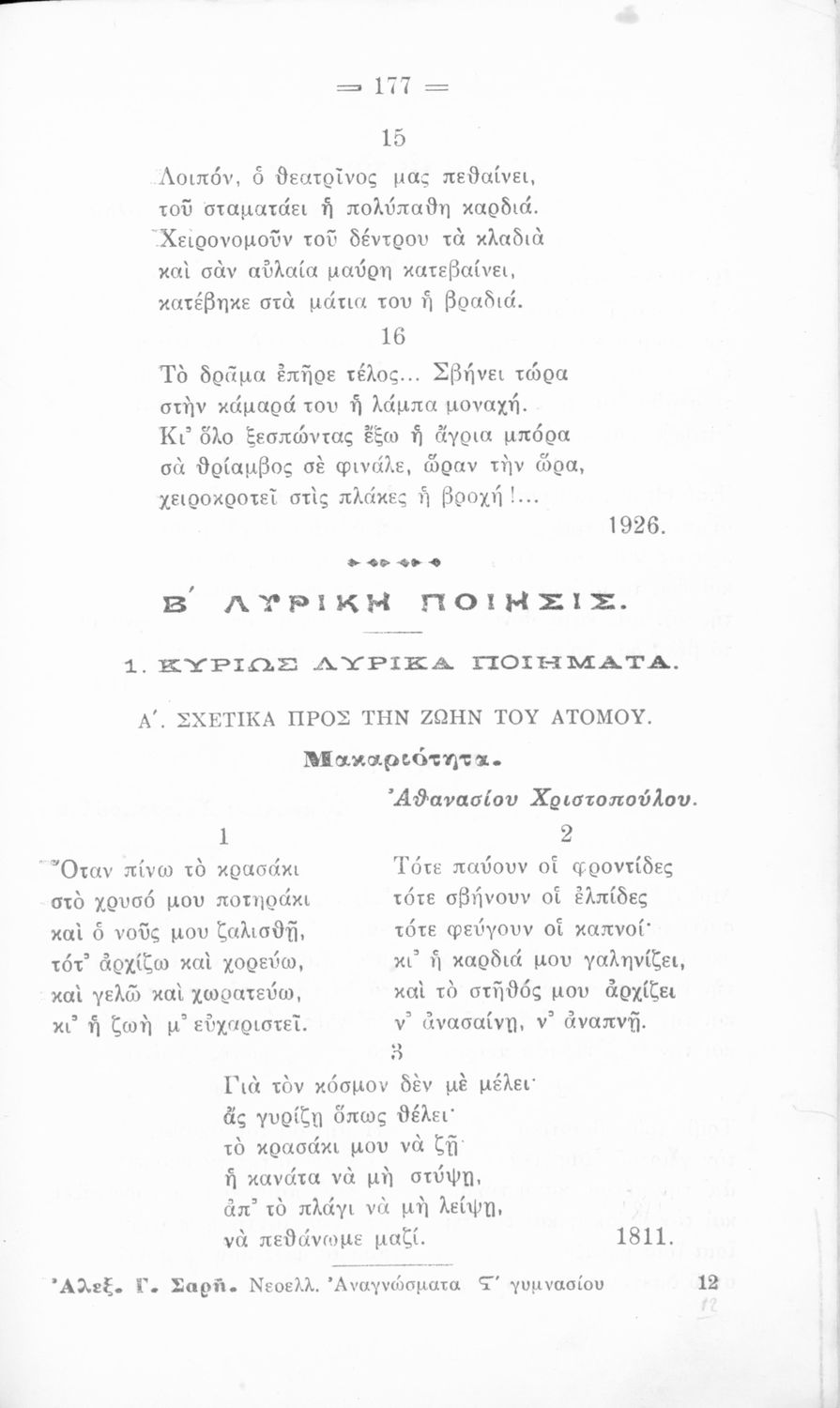 Νεοελληνικά αναγνώσματα δια τους μαθητάς της 6ης τάξεως των Γυμνασίων και λυκείων