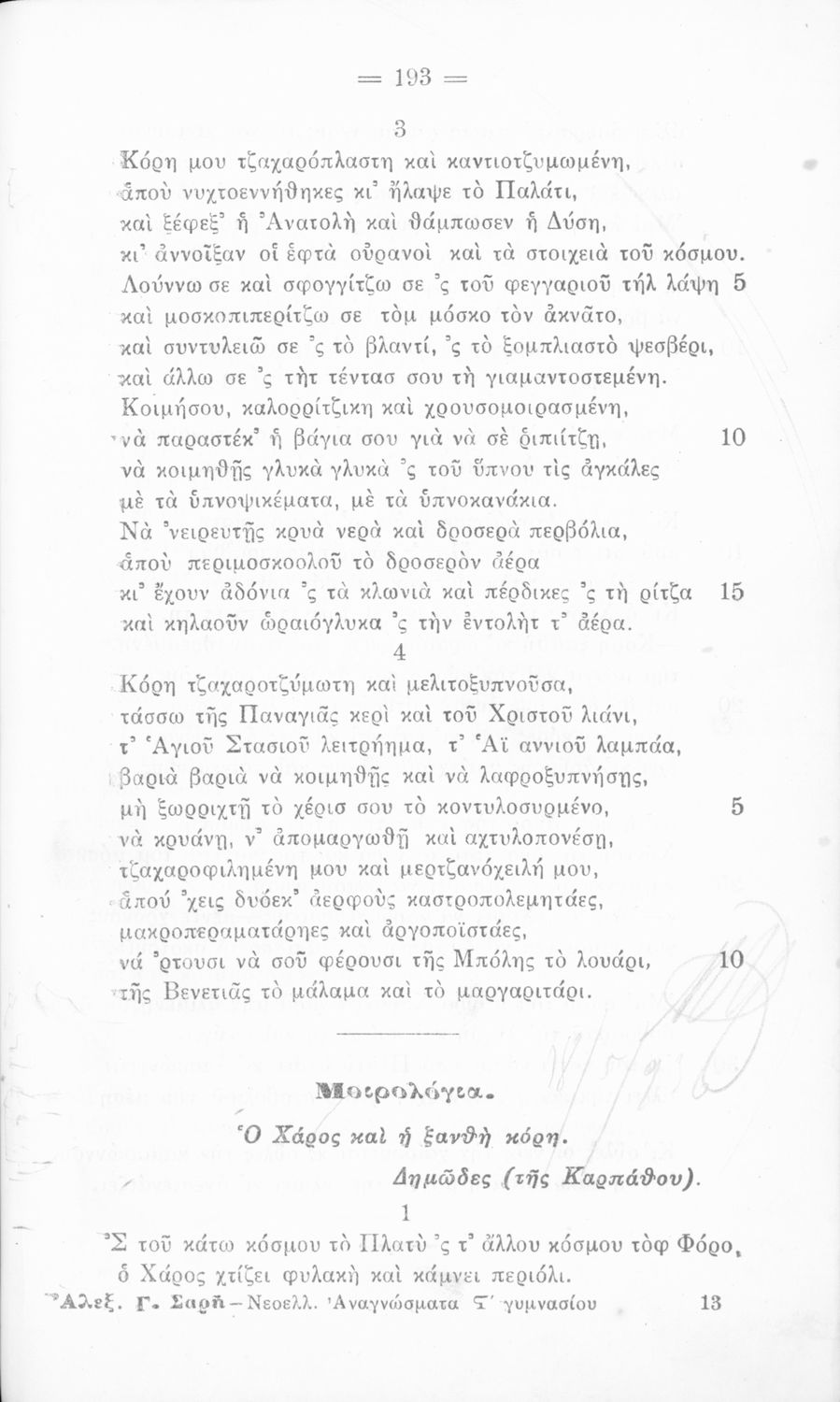 Γλώσσα: Καθαρεύουσα / Δημοτική