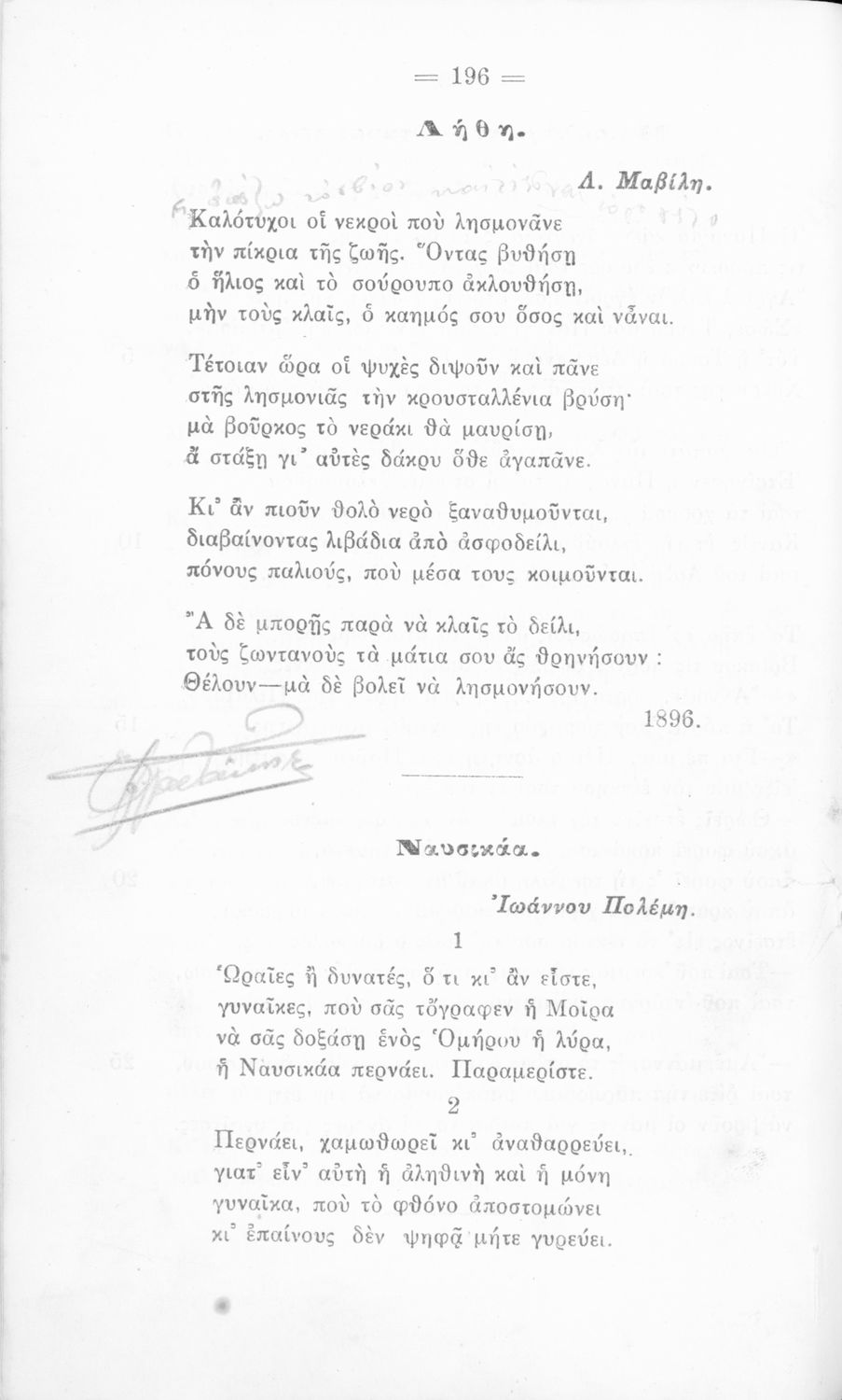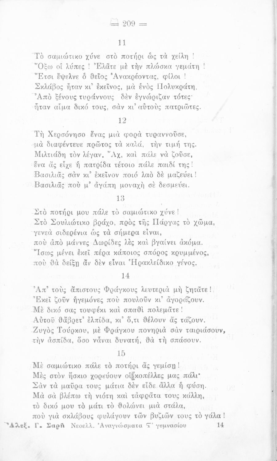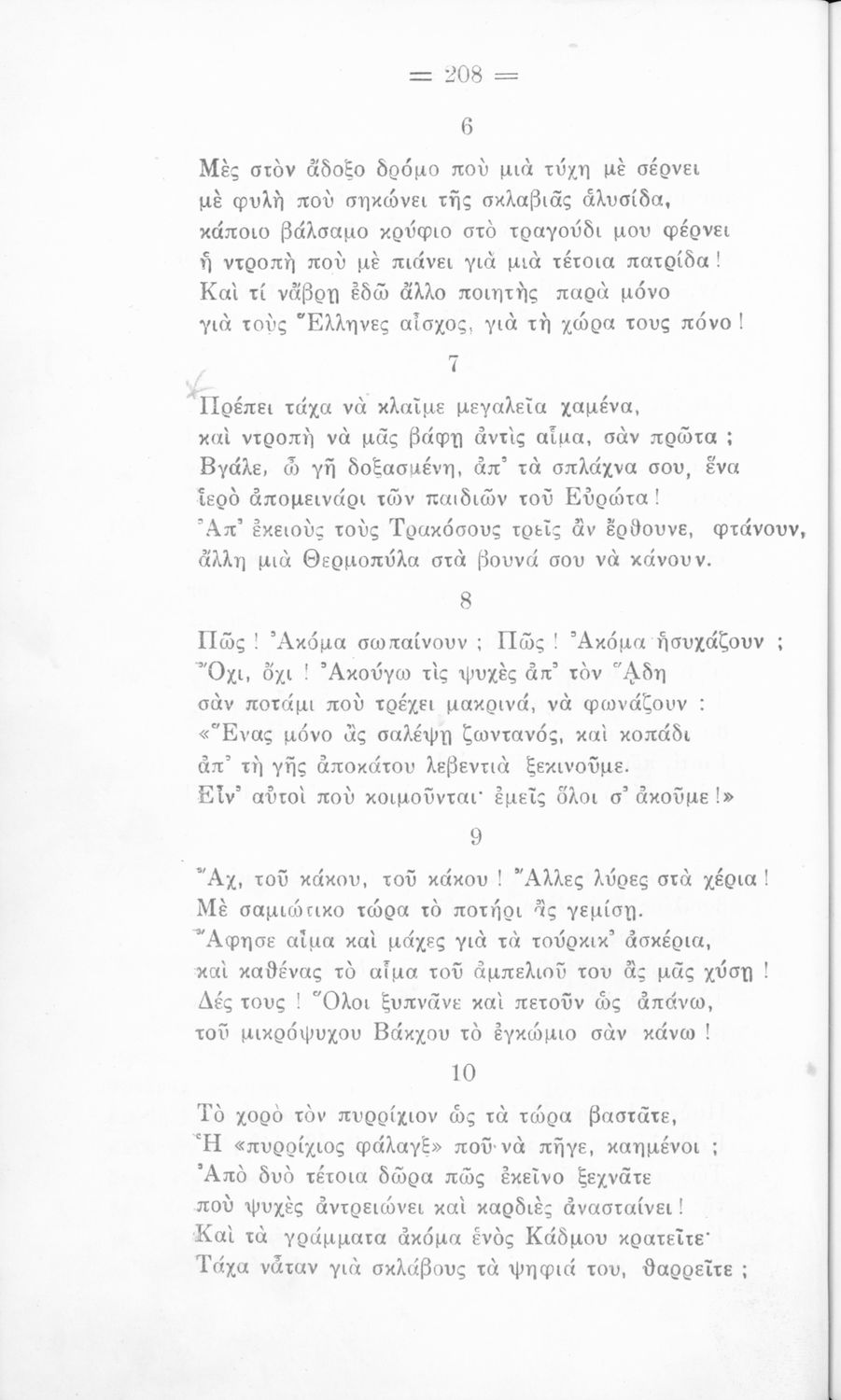 Σχολικό εγχειρίδιο Νέων Ελληνικών ΣΤ΄ Γυμνασίου και Λυκείου που περιλαμβάνει κείμενα Ελλήνων και ξένων συγγραφέων με θέματα από την σύγχρονη ελληνική ιστορία και την οικογενειακή και θρησκευτική ζωή, και δημοτικά τραγούδια. Περιέχει και παράρτημα με βιογραφίες των συγγραφέων και λεξιλόγιο.