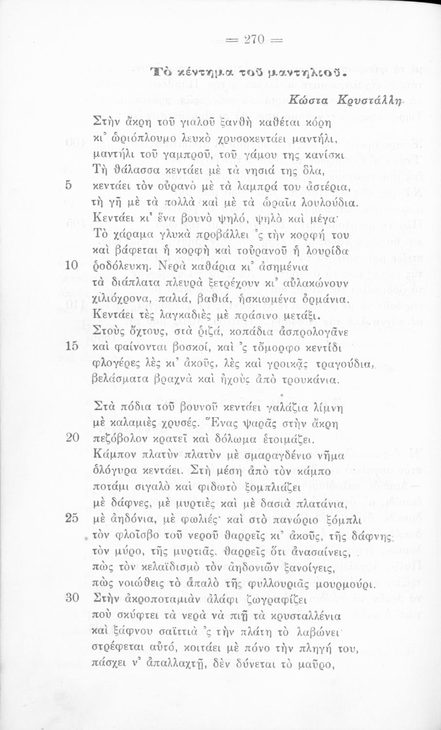 Σχετιζόμενοι όροι:  Κρυστάλλης, Παλαμάς, Σολωμός, Δροσίνης