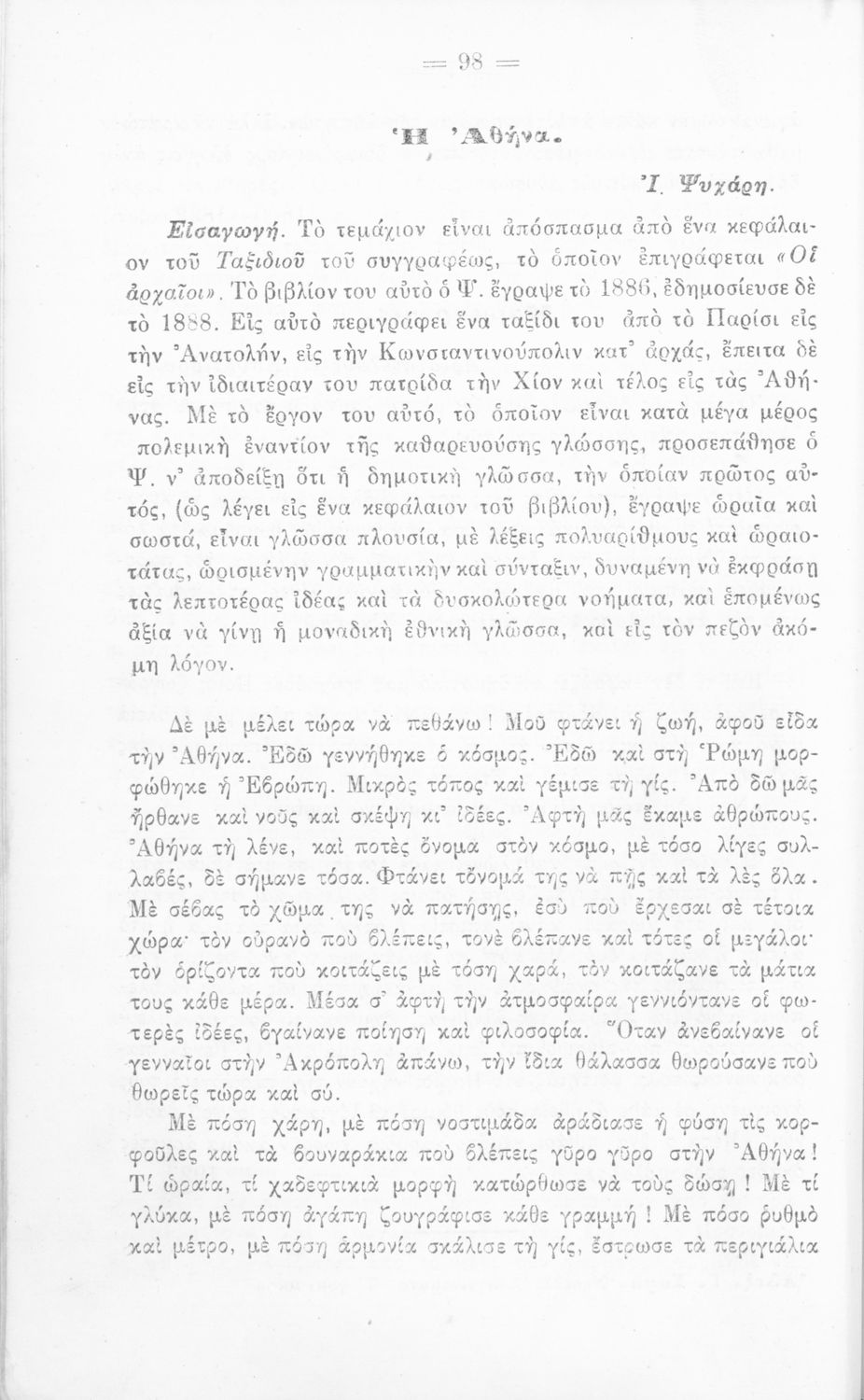 Γλώσσα: Καθαρεύουσα / Δημοτική