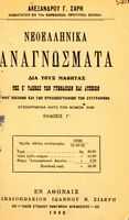 Βαθμίδα εκπαίδευσης: Δευτεροβάθμια Τάξη: ΣΤ' Γυμνασίου / ΣΤ' Λυκείου Μάθημα: Νέα Ελληνικά Γλώσσα: Καθαρεύουσα / Δημοτική Παρουσίαση περιεχομένου: Σχολικό εγχειρίδιο Νέων Ελληνικών ΣΤ΄ Γυμνασίου και Λυκείου που περιλαμβάνει κείμενα Ελλήνων και ξένων συγγραφέων με θέματα από την σύγχρονη ελληνική ιστορία και την οικογενειακή και θρησκευτική ζωή, και δημοτικά τραγούδια. Περιέχει και παράρτημα με βιογραφίες των συγγραφέων και λεξιλόγιο. |