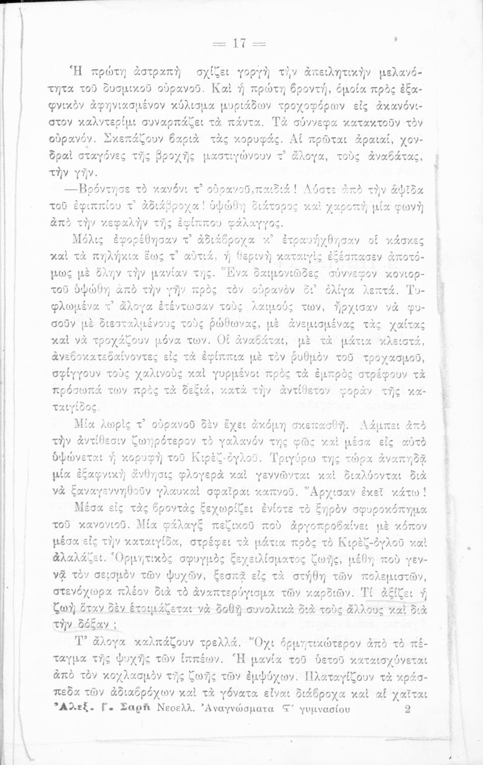 Σχολικό εγχειρίδιο Νέων Ελληνικών ΣΤ΄ Γυμνασίου και Λυκείου που περιλαμβάνει κείμενα Ελλήνων και ξένων συγγραφέων με θέματα από την σύγχρονη ελληνική ιστορία και την οικογενειακή και θρησκευτική ζωή, και δημοτικά τραγούδια. Περιέχει και παράρτημα με βιογραφίες των συγγραφέων και λεξιλόγιο.