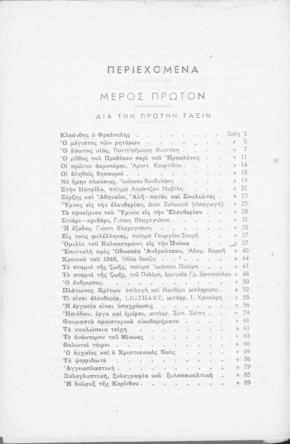 Σχολικό εγχειρίδιο Νέων Ελληνικών Δ΄ Γυμνασίου και Β΄ Αστικού Σχολείου που περιέχει πεζά και ποιήματα Ελλήνων συγγραφέων εμπνευσμένα από τη θρησκευτική και κοινωνική ζωή, την ελληνική μυθολογία, την αρχαία και