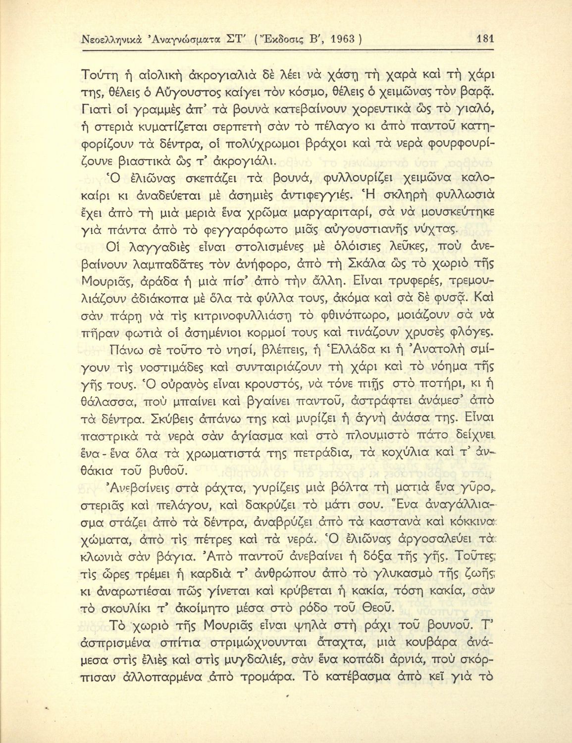 Σχολικό εγχειρίδιο Νέων Ελληνικών ΣΤ΄ Γυμνασίου που περιλαμβάνει κείμενα Ελλήνων και ξένων συγγραφέων και δημοτικά τραγούδια εμπνευσμένα από την ελληνική φύση, την καθημερινή ζωή των ανθρώπων, τη θρησκευτική ...
