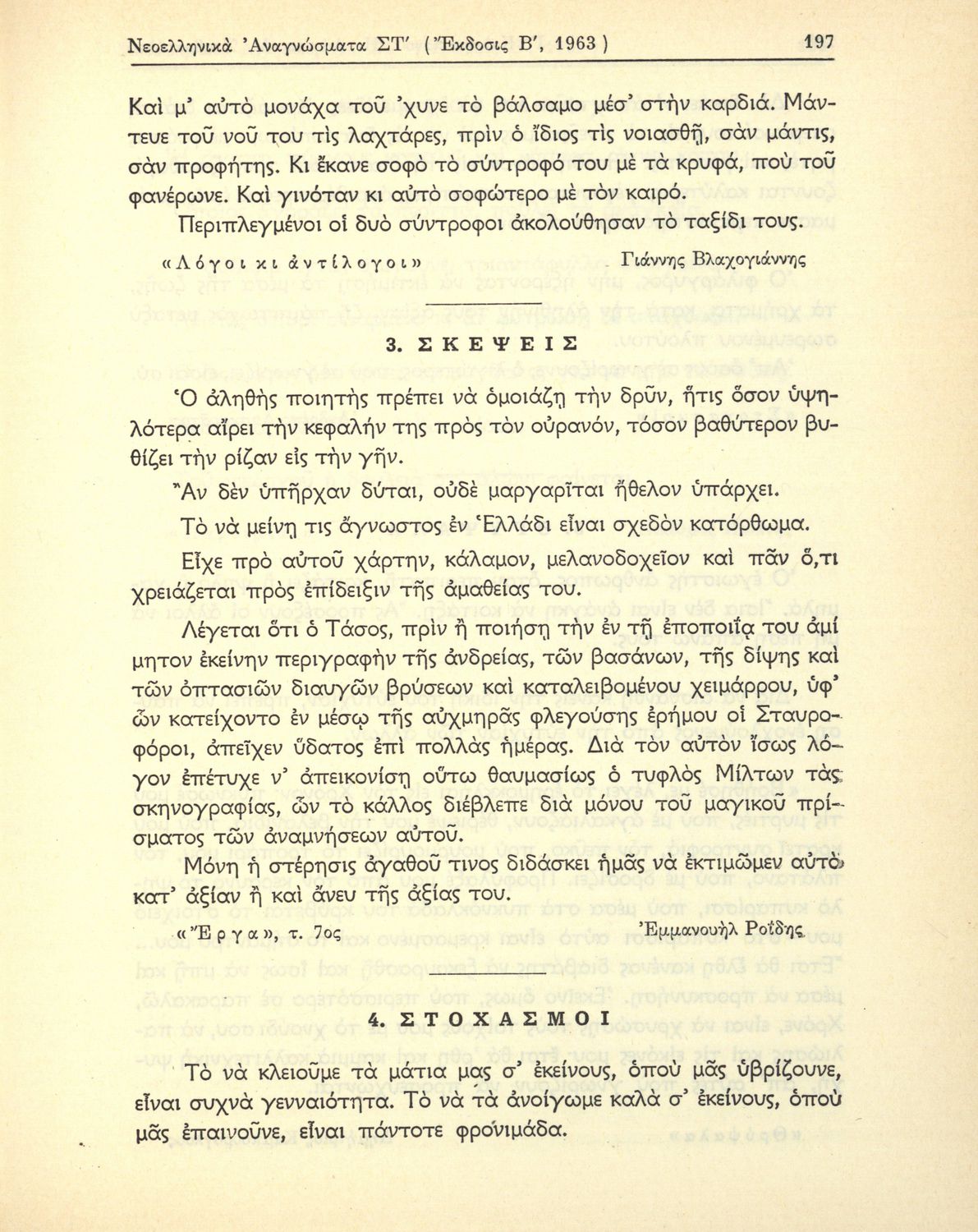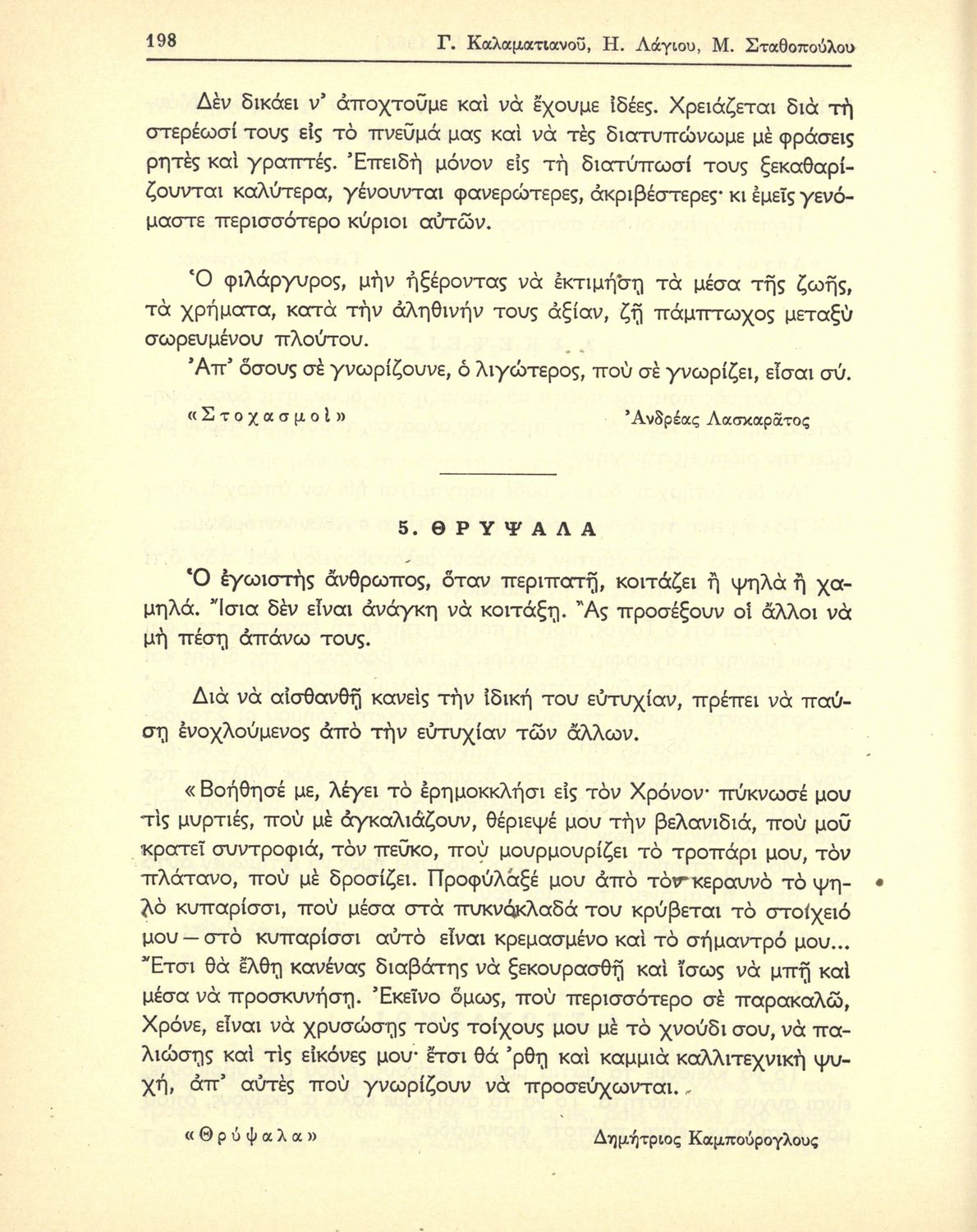 Σχολικό εγχειρίδιο Νέων Ελληνικών ΣΤ΄ Γυμνασίου και Λυκείου που περιλαμβάνει κείμενα Ελλήνων και ξένων συγγραφέων με θέματα από την σύγχρονη ελληνική ιστορία και την οικογενειακή και θρησκευτική ζωή, και ...