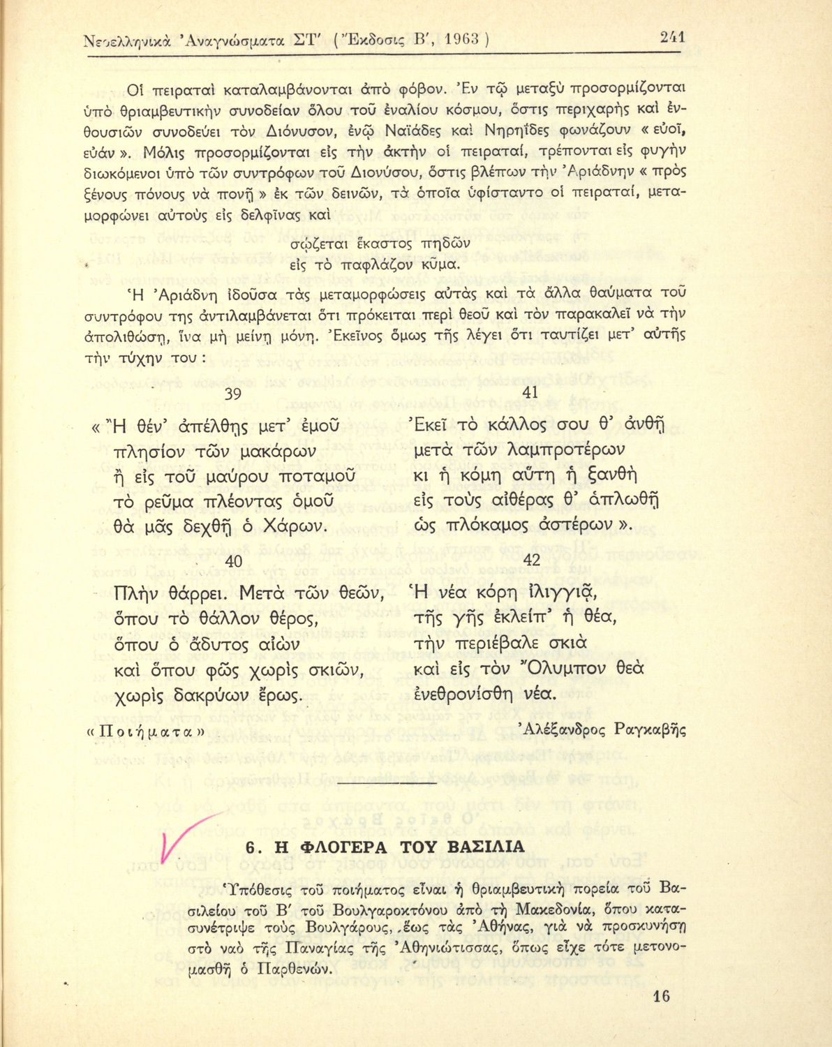 Νεοελληνικά Αναγνώσματα, ΣΤ΄ Γυμνασίου