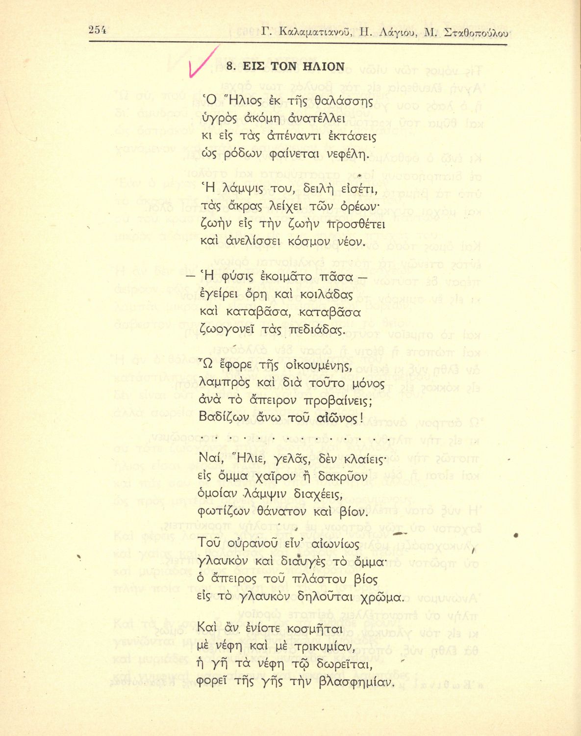 Σχολικό εγχειρίδιο Νέων Ελληνικών ΣΤ΄ Γυμνασίου που περιλαμβάνει ποιήματα και πεζά Ελλήνων συγγραφέων εμπνευσμένα από την οικογενειακή και κοινωνική ζωή, την σύγχρονη ελληνική ιστορία, τη θρησκευτική παράδοση ...