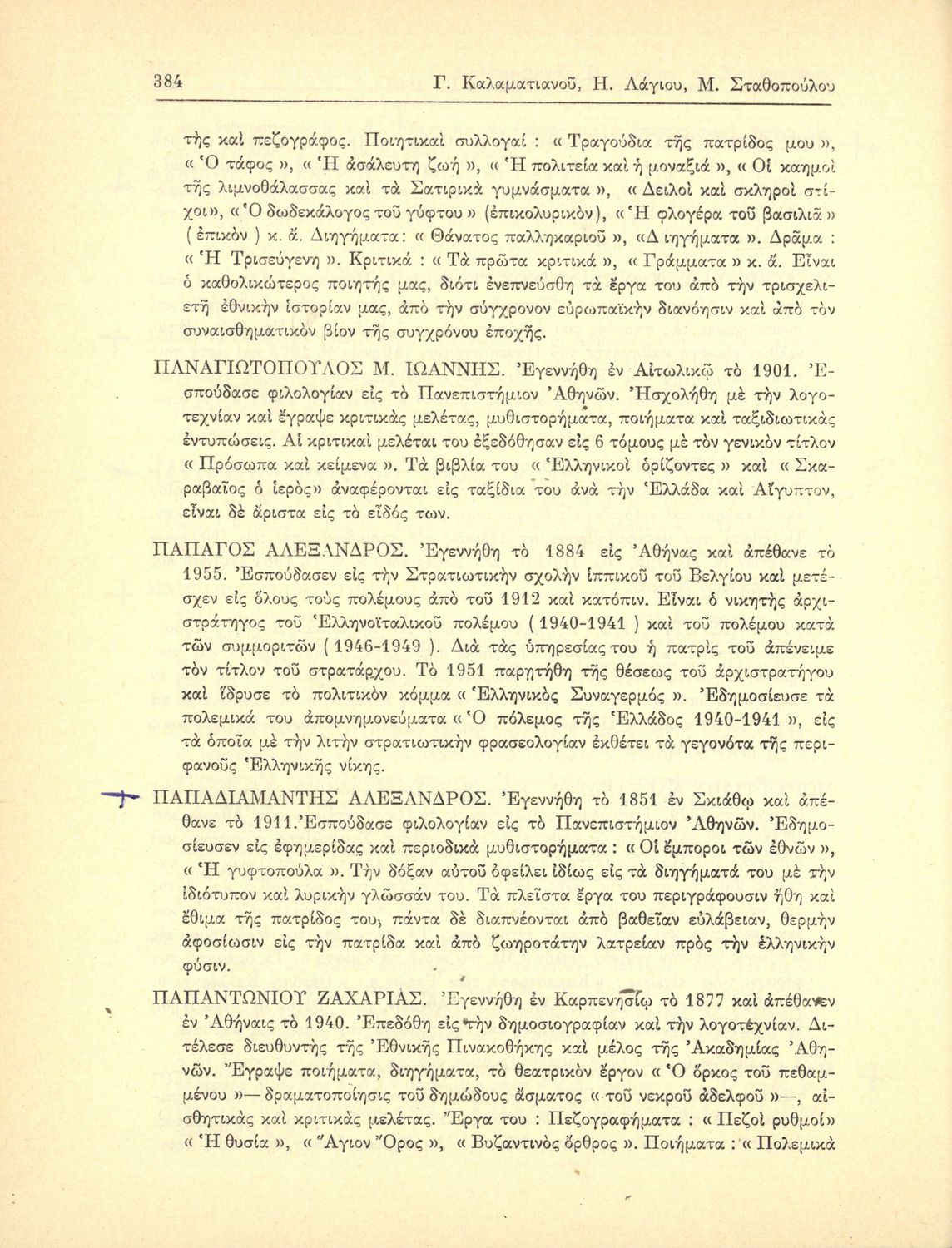 Γ. Καλαματιανός, Η. Λάγιος, Μ. Σταθοπούλου-Χριστοφέλλη
