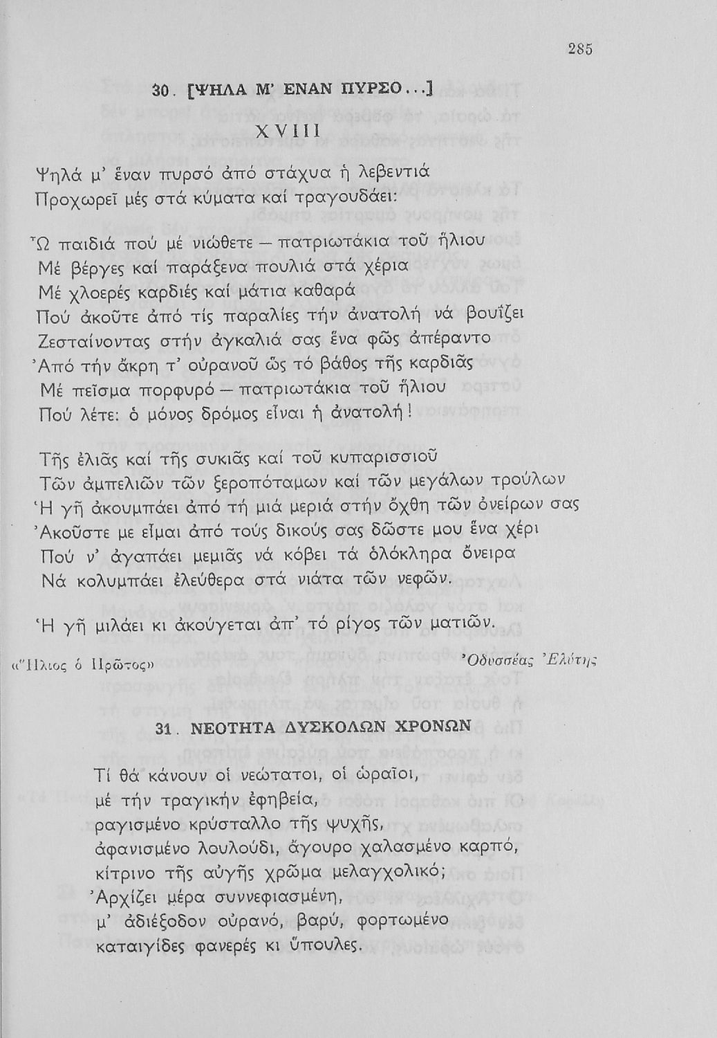 Σχετιζόμενοι όροι:  Παλαμάς, Σεφέρης, Καβάφης, Σικελιανός