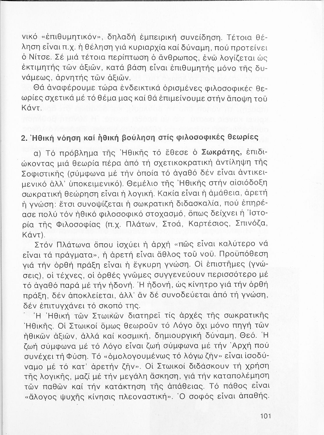 Σχολικό εγχειρίδιο Φιλοσοφίας Γ΄ Λυκείου που ακολουθεί μια ιστορική πραγμάτευση επιστημολογικών, ηθικών και αισθητικών ζητημάτων και καλύπτει δύο περιόδους: α) την ελληνική αρχαιότητα και β) την σύγχρονη ευρωπαϊκή σκέψη από τον Descartes και τον Kant στον λογικό θετικισμό και τον νεοκαντιανισμό. Περιέχει εκτενές κεφάλαιο για τους προσωκρατικούς.