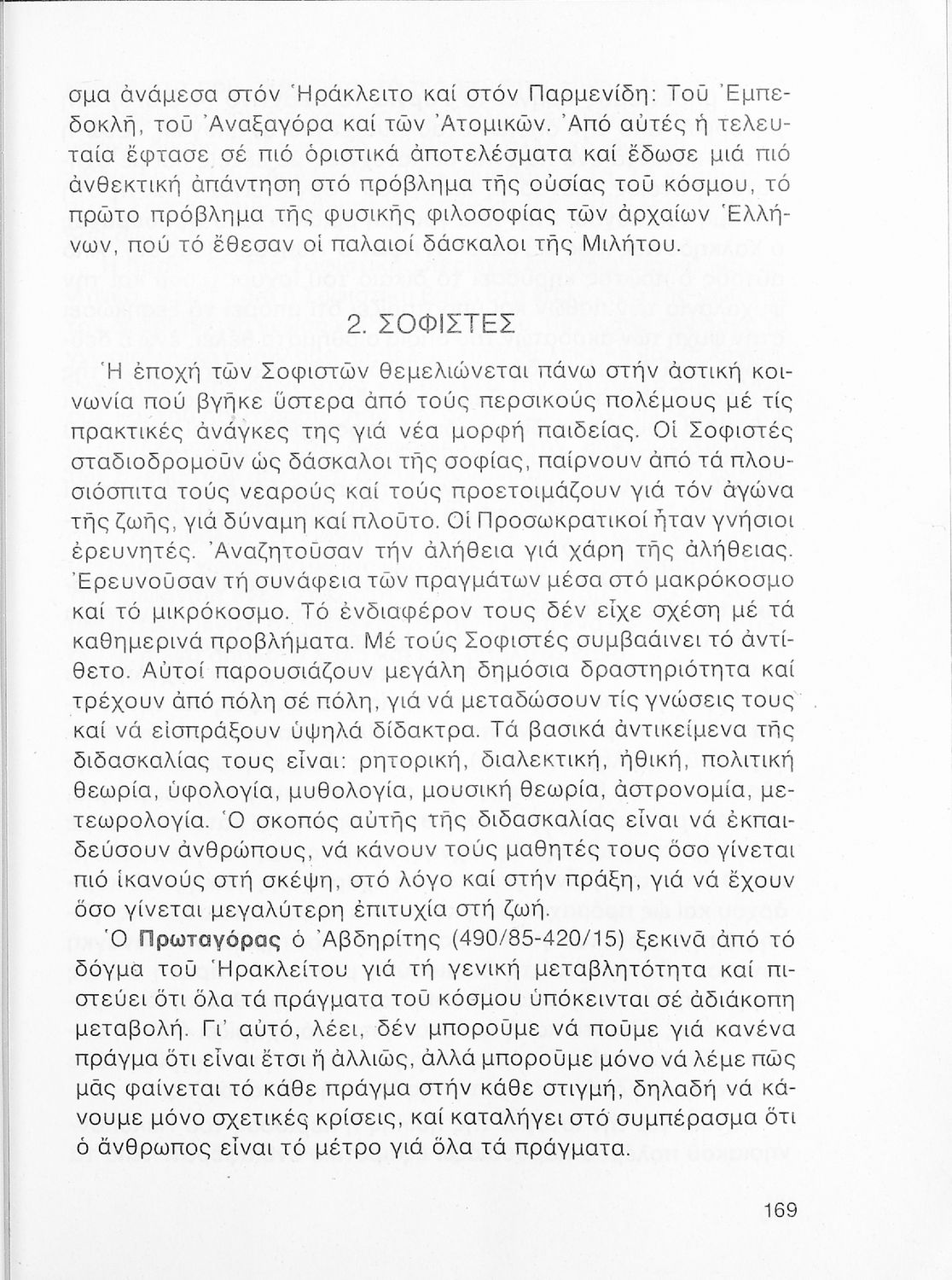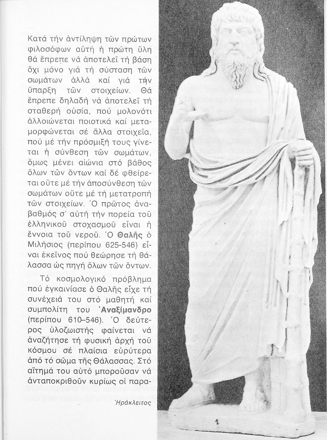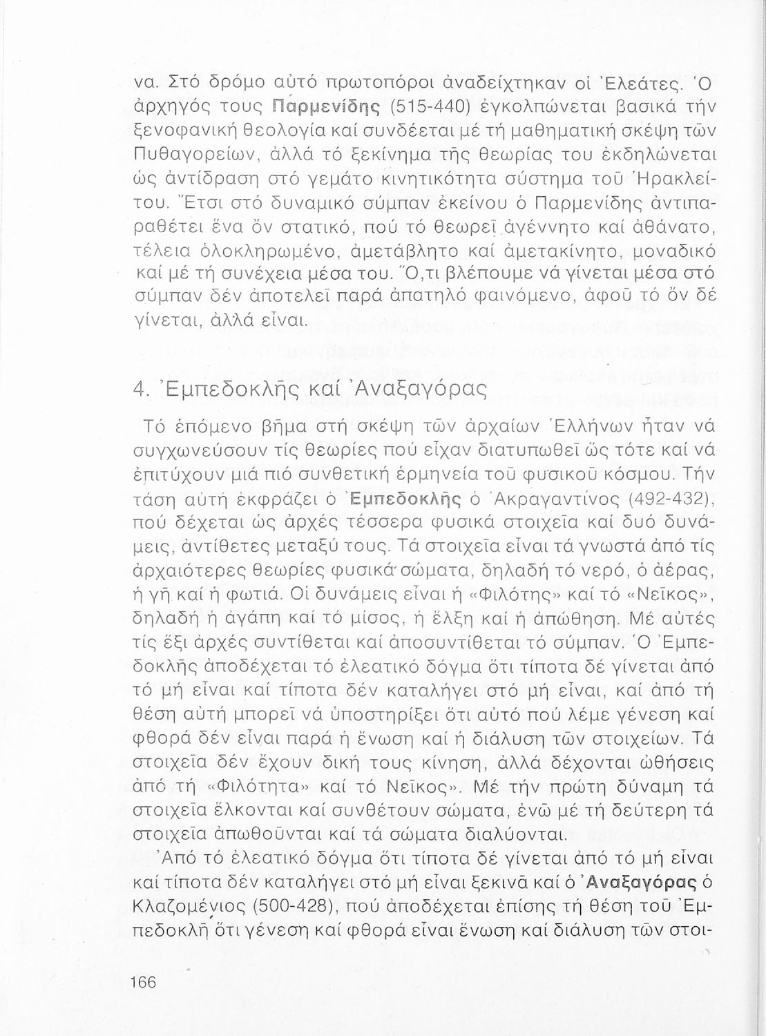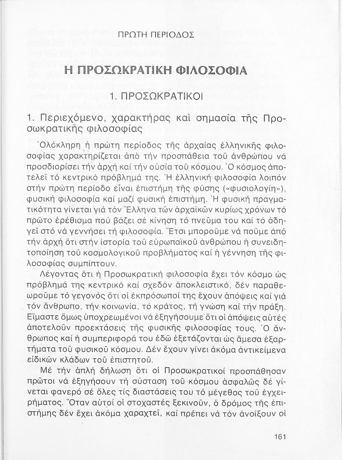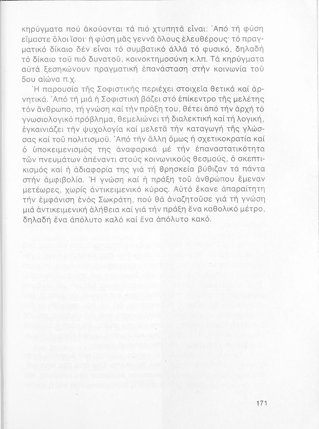 Σχολικό εγχειρίδιο Φιλοσοφίας Γ΄ Λυκείου που ακολουθεί μια ιστορική πραγμάτευση επιστημολογικών, ηθικών και αισθητικών ζητημάτων και καλύπτει δύο περιόδους: α) την ελληνική αρχαιότητα και β) την σύγχρονη ευρωπαϊκή σκέψη από τον Descartes και τον Kant στον λογικό θετικισμό και τον νεοκαντιανισμό. Περιέχει εκτενές κεφάλαιο για τους προσωκρατικούς.
