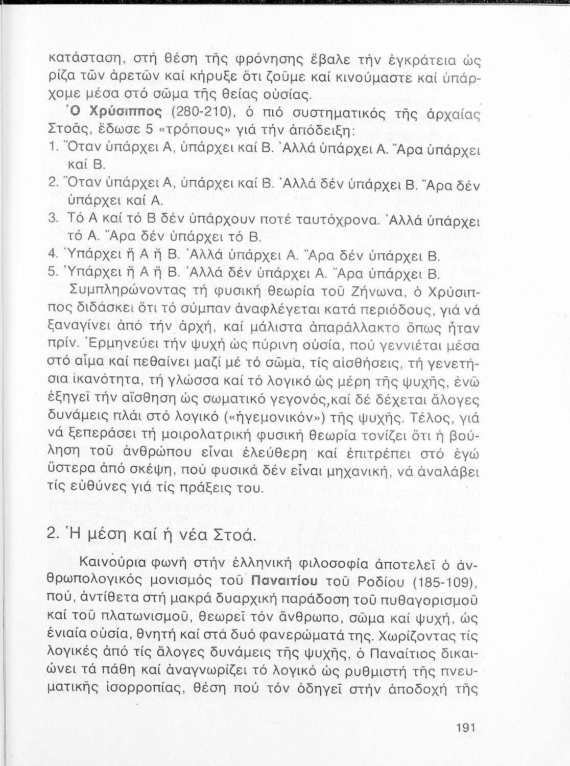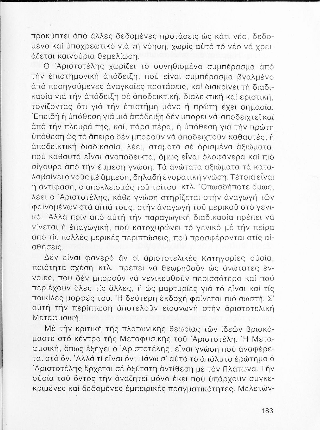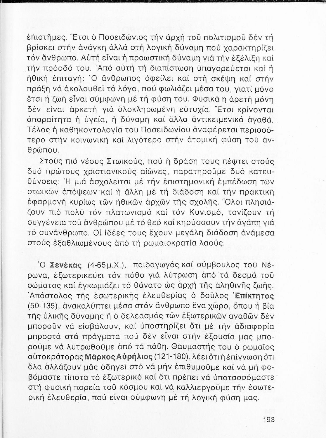 Σχολικό εγχειρίδιο Φιλοσοφίας Γ΄ Λυκείου που ακολουθεί μια ιστορική πραγμάτευση επιστημολογικών, ηθικών και αισθητικών ζητημάτων και καλύπτει δύο περιόδους: α) την ελληνική αρχαιότητα και β) την σύγχρονη ευρωπαϊκή σκέψη από τον Descartes και τον Kant στον λογικό θετικισμό και τον νεοκαντιανισμό. Περιέχει εκτενές κεφάλαιο για τους προσωκρατικούς.