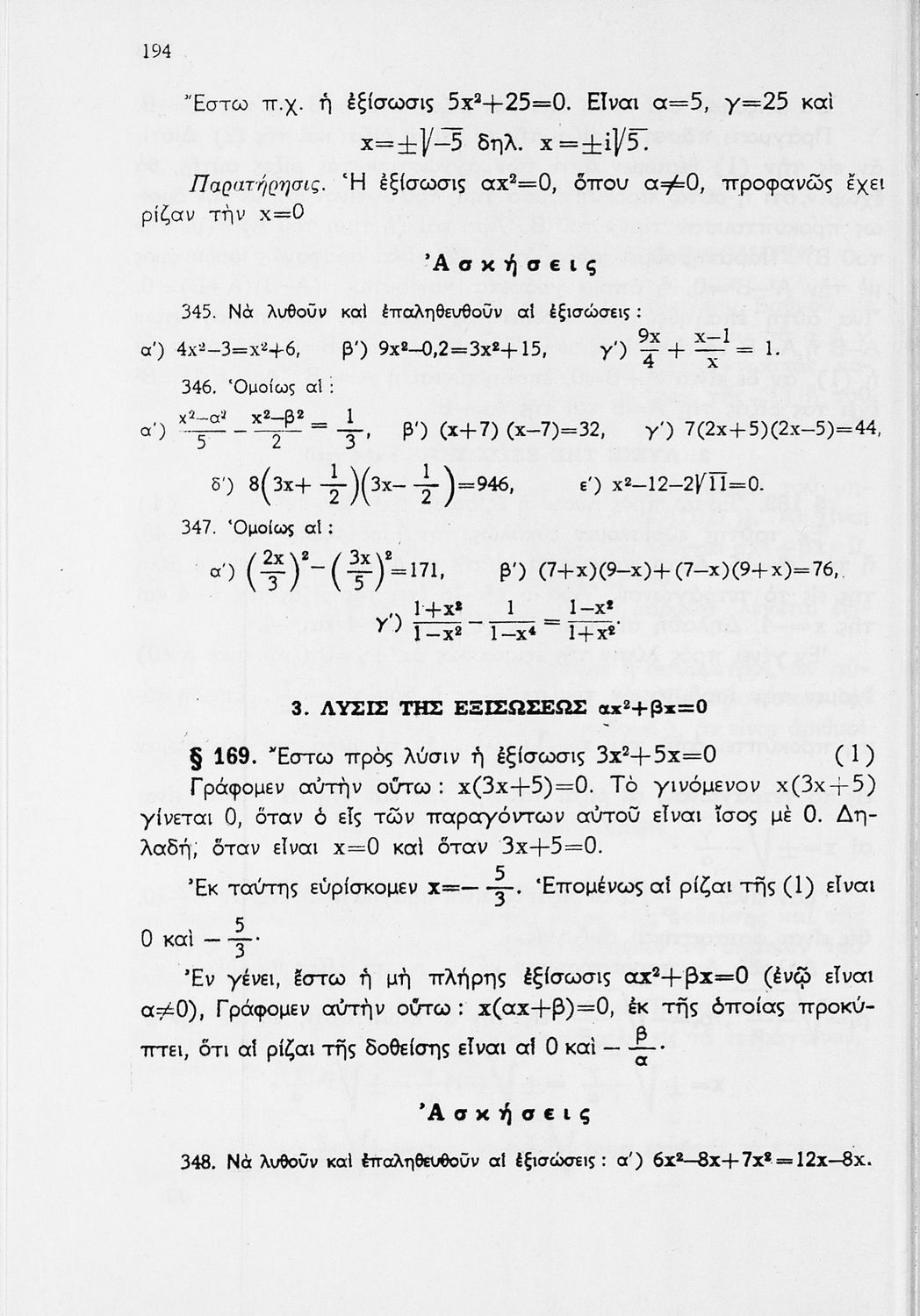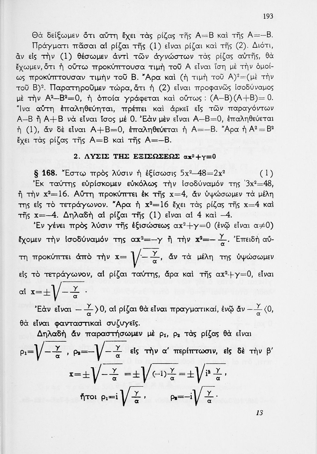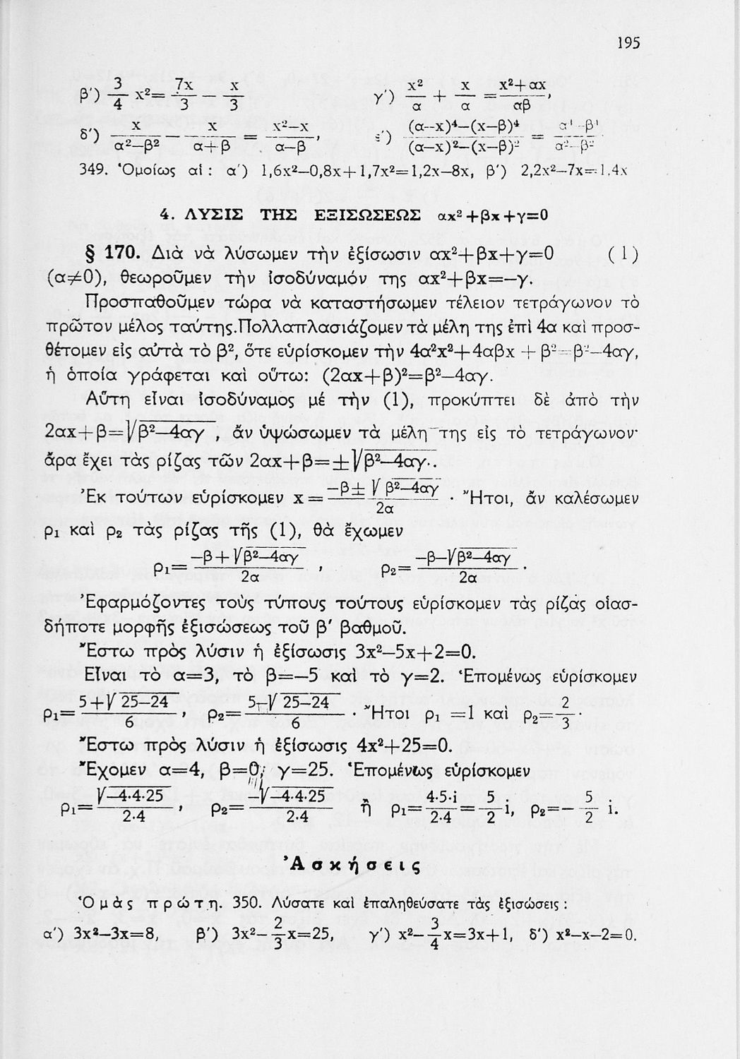 Άλγεβρα Δ΄ Γυμνασίου   [1971, 13η Έκδοση]