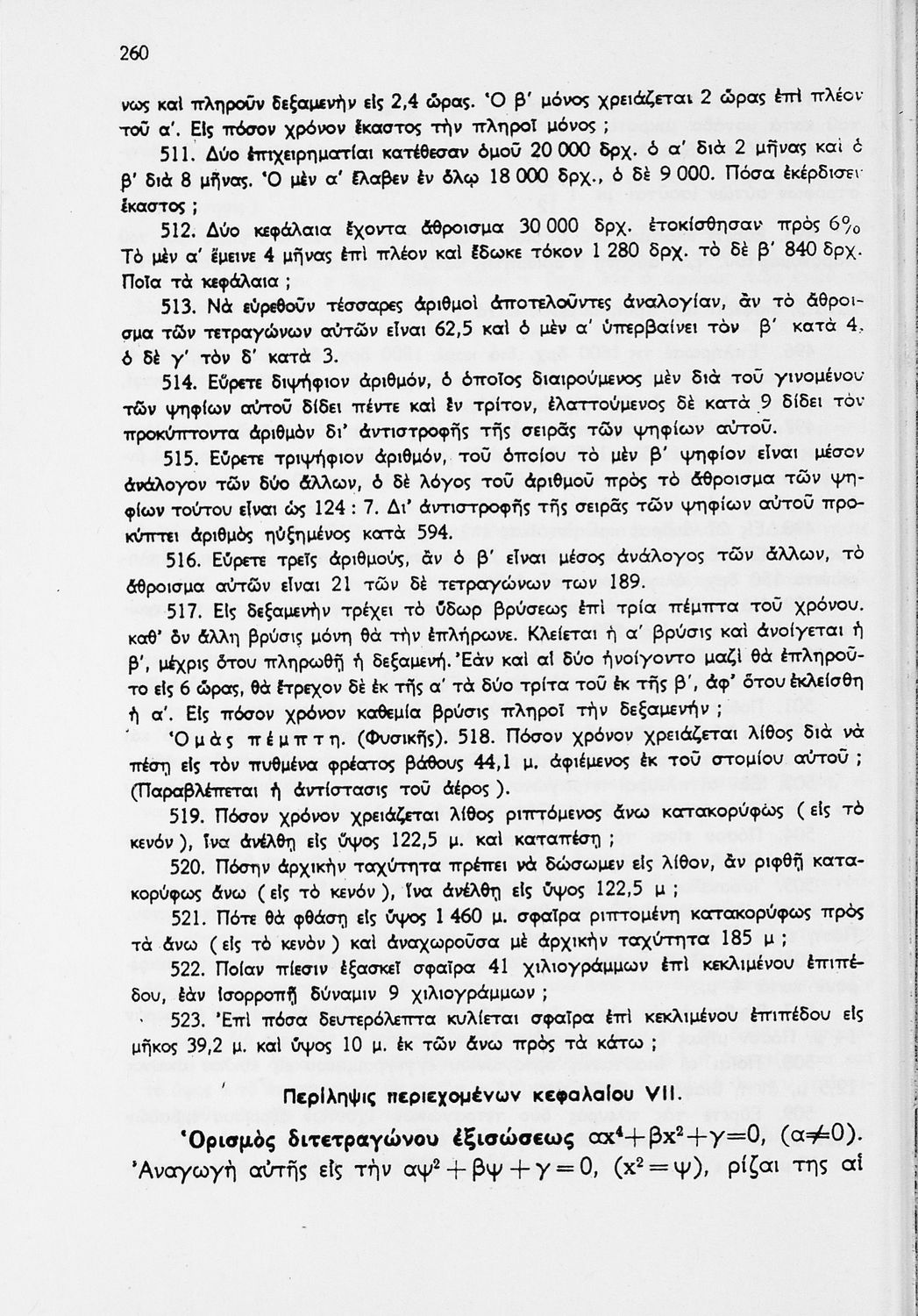 Σχολικό εγχειρίδιο Άλγεβρας Δ΄ Γυμνασίου που εστιάζει στις ιδιότητες των αριθμών, στις εξισώσεις, στους λογάριθμους και στις παραγώγους. Ο συγγραφέας ήταν καθηγητής στο Πανεπιστήμιο. Φέρει το σύμβολο της δικτατορίας.