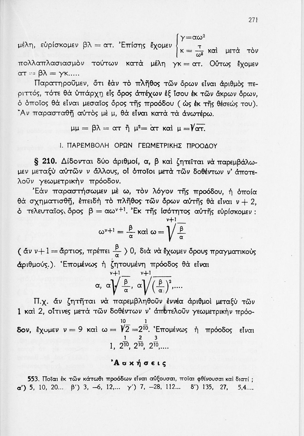 Άλγεβρα Δ΄ Γυμνασίου   [1971, 13η Έκδοση]