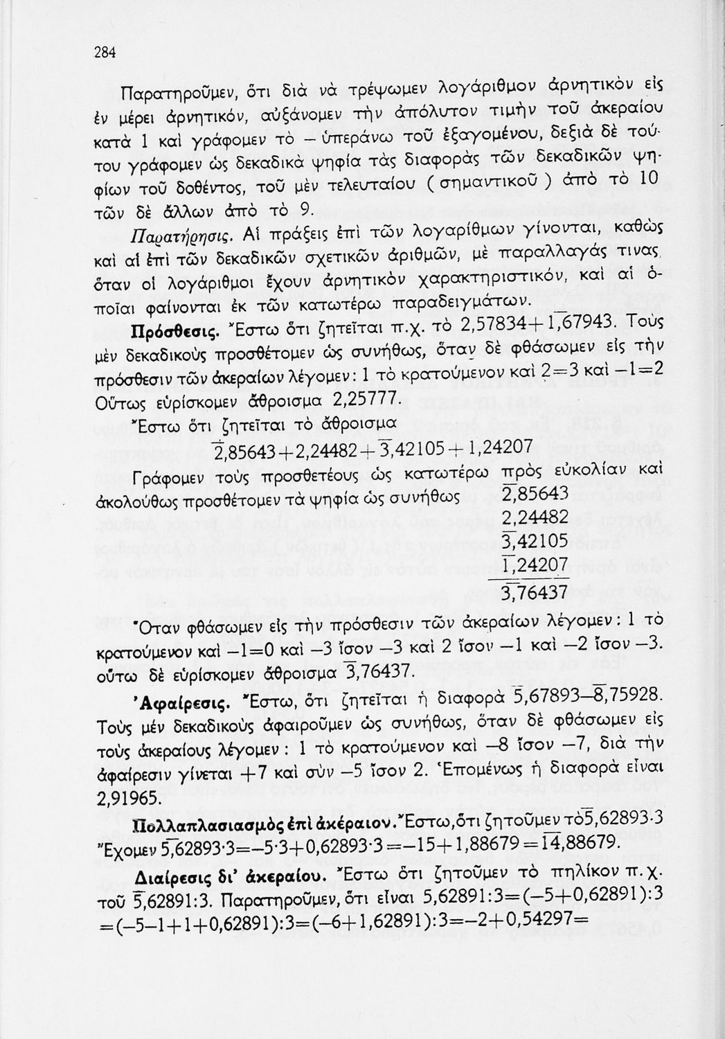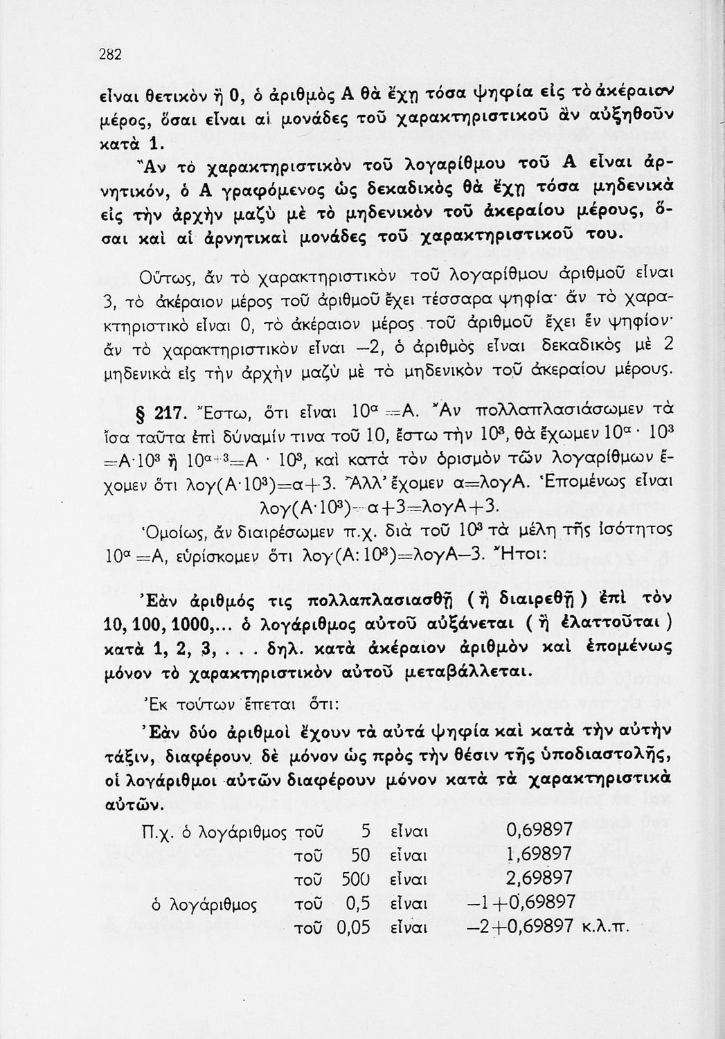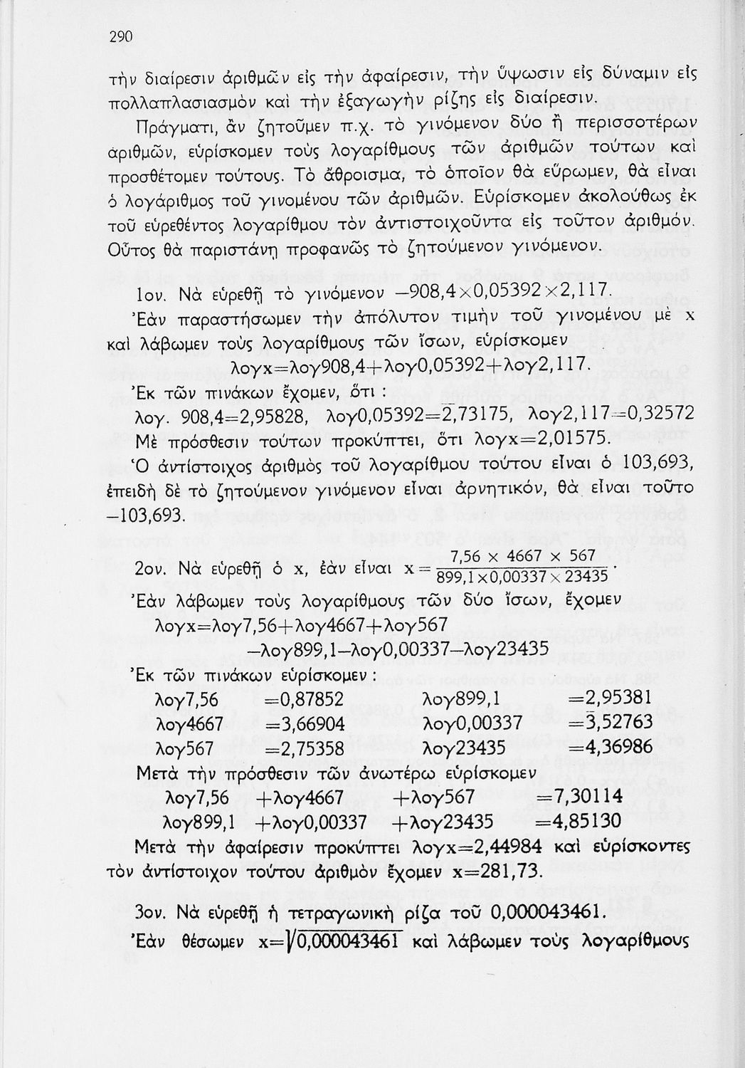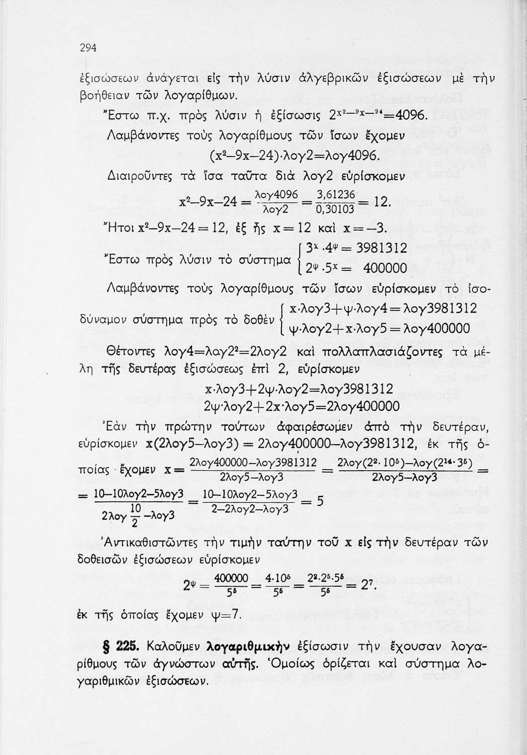 Σχολικό εγχειρίδιο Άλγεβρας Δ΄ Γυμνασίου που εστιάζει στις ιδιότητες των αριθμών, στις εξισώσεις, στους λογάριθμους και στις παραγώγους. Ο συγγραφέας ήταν καθηγητής στο Πανεπιστήμιο. Φέρει το σύμβολο της δικτατορίας.