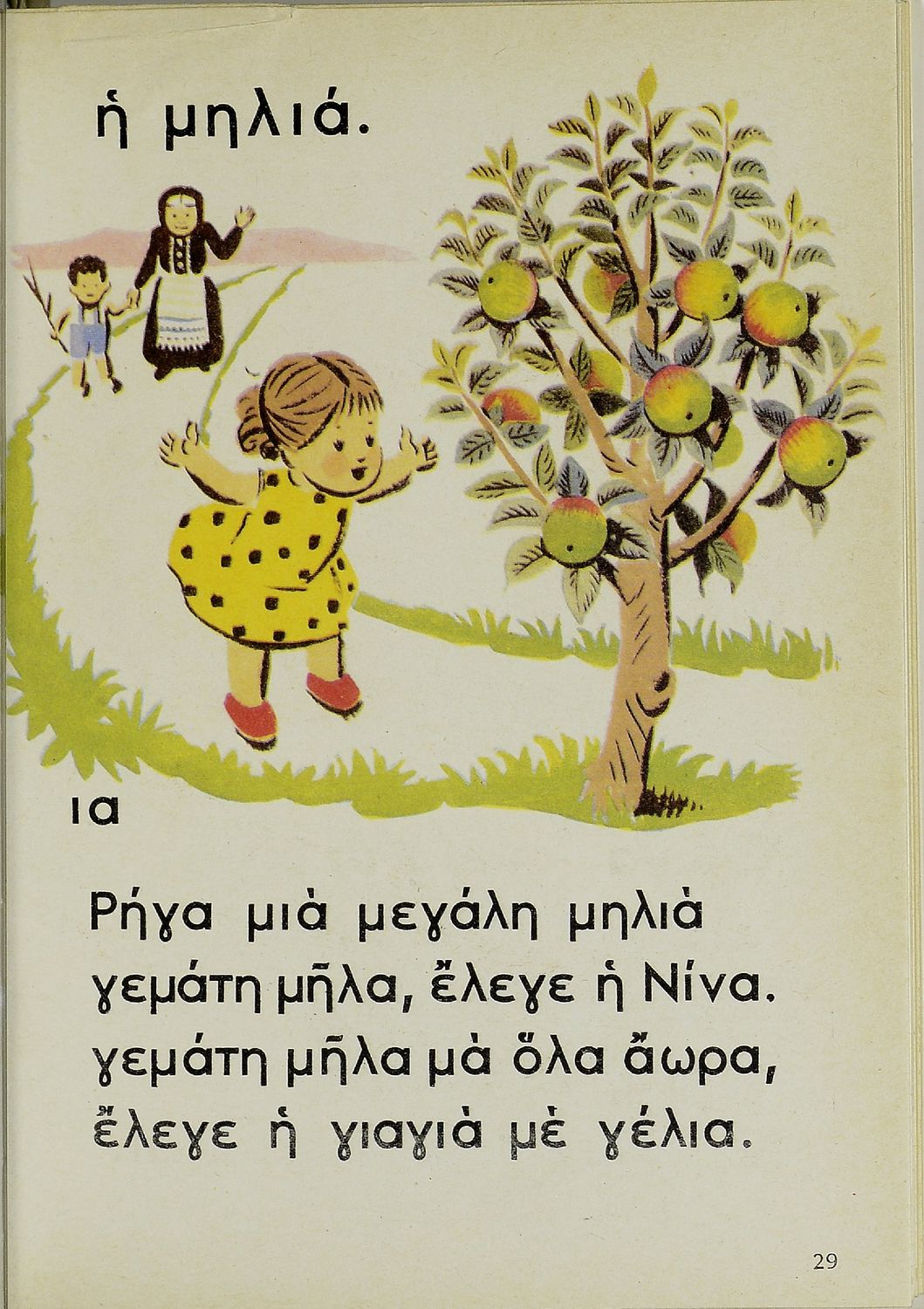 Αναγνωστικό Α΄ Δημοτικού που περιέχει ποιήματα και πεζά με σκηνές και προκρίνει τις αξίες της καλοσύνης, της υπευθυνότητας, της εργατικότητας, της αγάπης προς τα ζώα, αλλά και της διασκέδασης.