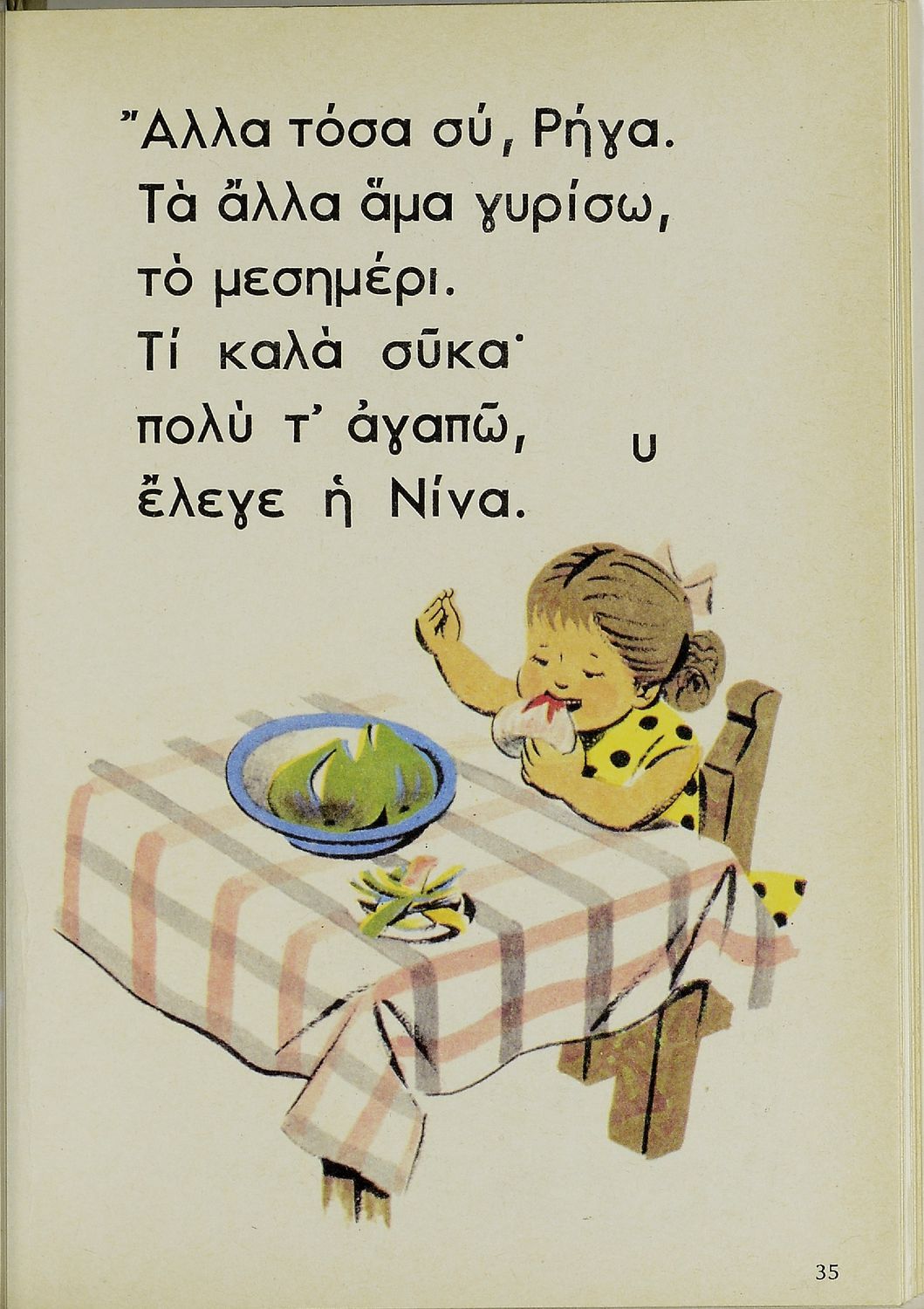 Παρουσίαση περιεχομένου: Αναγνωστικό Α΄ Δημοτικού που περιέχει ποιήματα και πεζά με σκηνές και προκρίνει τις αξίες της καλοσύνης, της υπευθυνότητας, της εργατικότητας, της αγάπης προς τα ζώα, αλλά και της διασκέδασης.