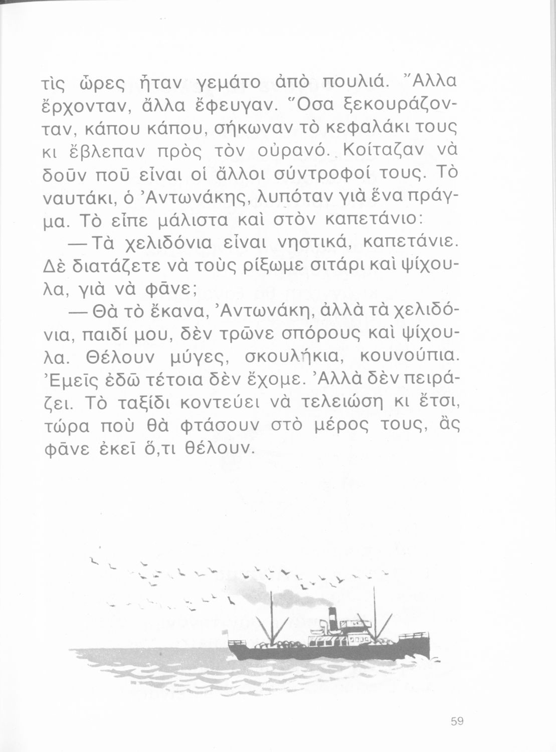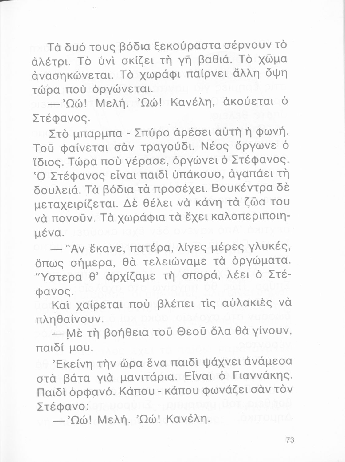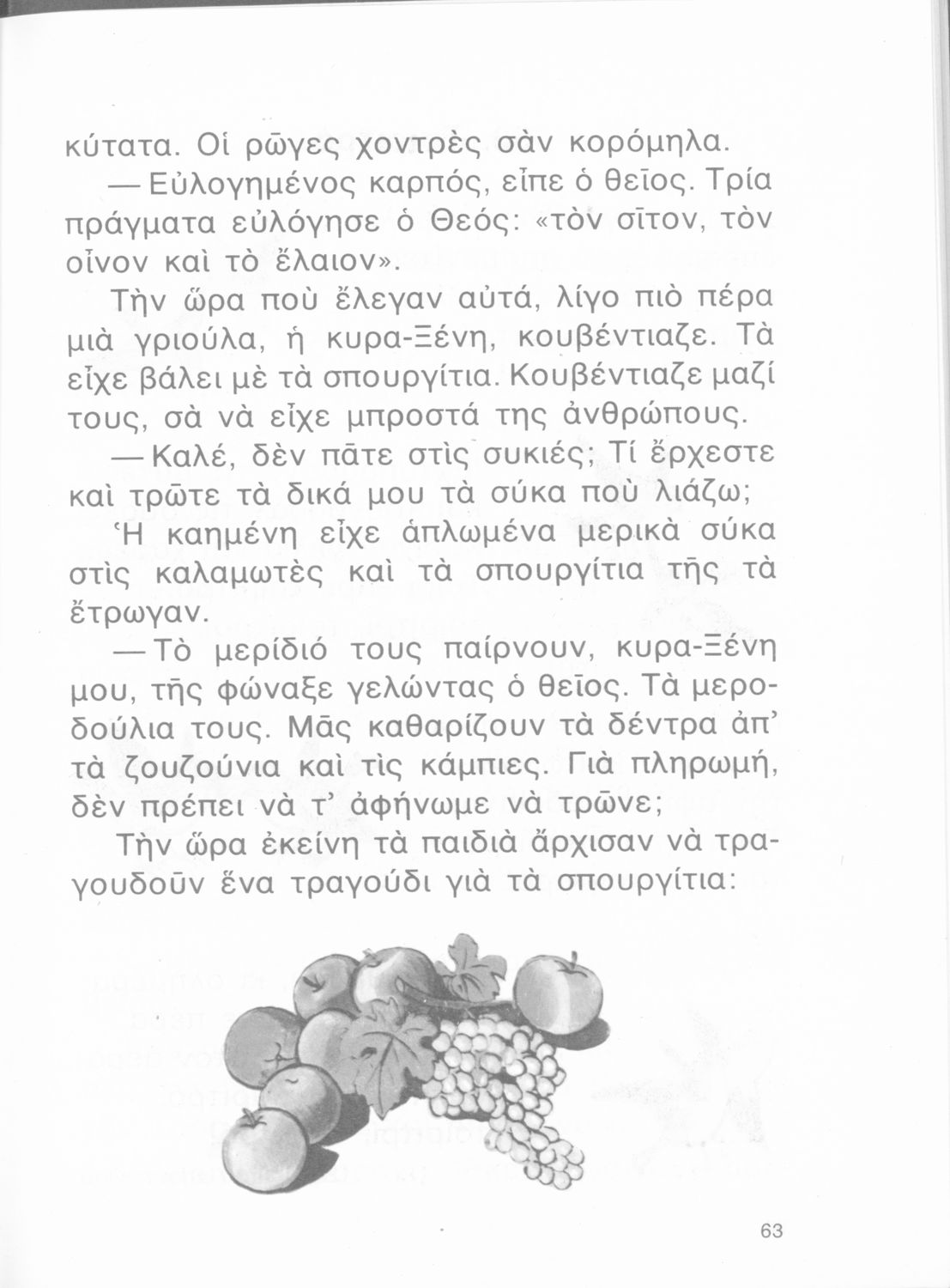 Αναγνωστικό Β' Δημοτικού που περιλαμβάνει μικρά διηγήματα και ποιήματα με περιεχόμενο από την οικογενειακή και κοινωνική ζωή, την ελληνική φύση, την ελληνική ιστορία και μυθολογία και την υγιεινή.