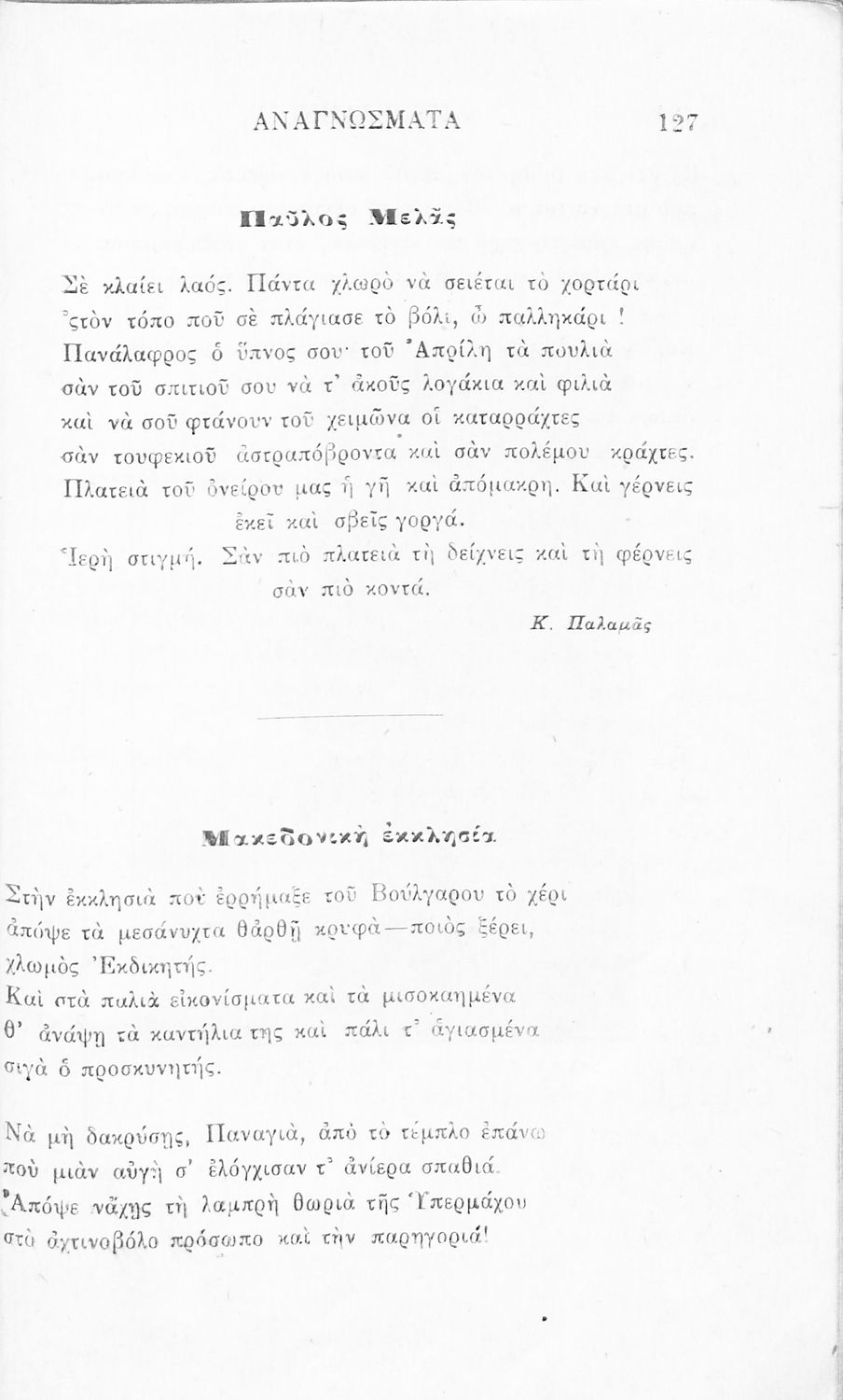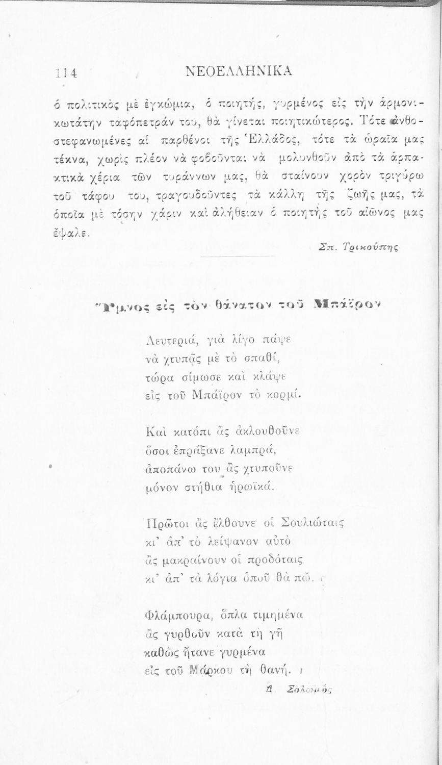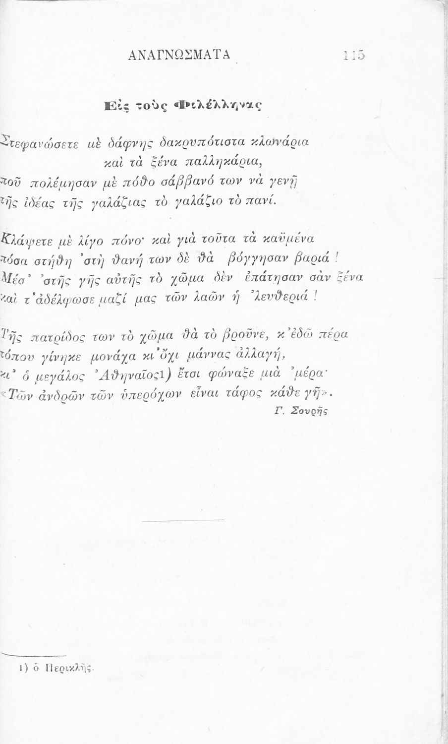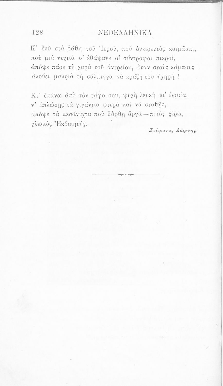 Σχολικό εγχειρίδιο Νέων Ελληνικών Γ' Ελληνικού Σχολείου που περιλαμβάνει ποιήματα και πεζά Ελλήνων συγγραφέων και δημοτικά τραγούδια εμπνευσμένα από την σύγχρονη ελληνική ιστορία, τη βυζαντινή ιστορία, την ελληνική φύση και τη ζωή στην ύπαιθρο, την οικογενειακή ζωή και τη θρησκευτική παράδοση. Περιέχει και παράρτημα με βιογραφίες των συγγραφέων και λεξιλόγιο.