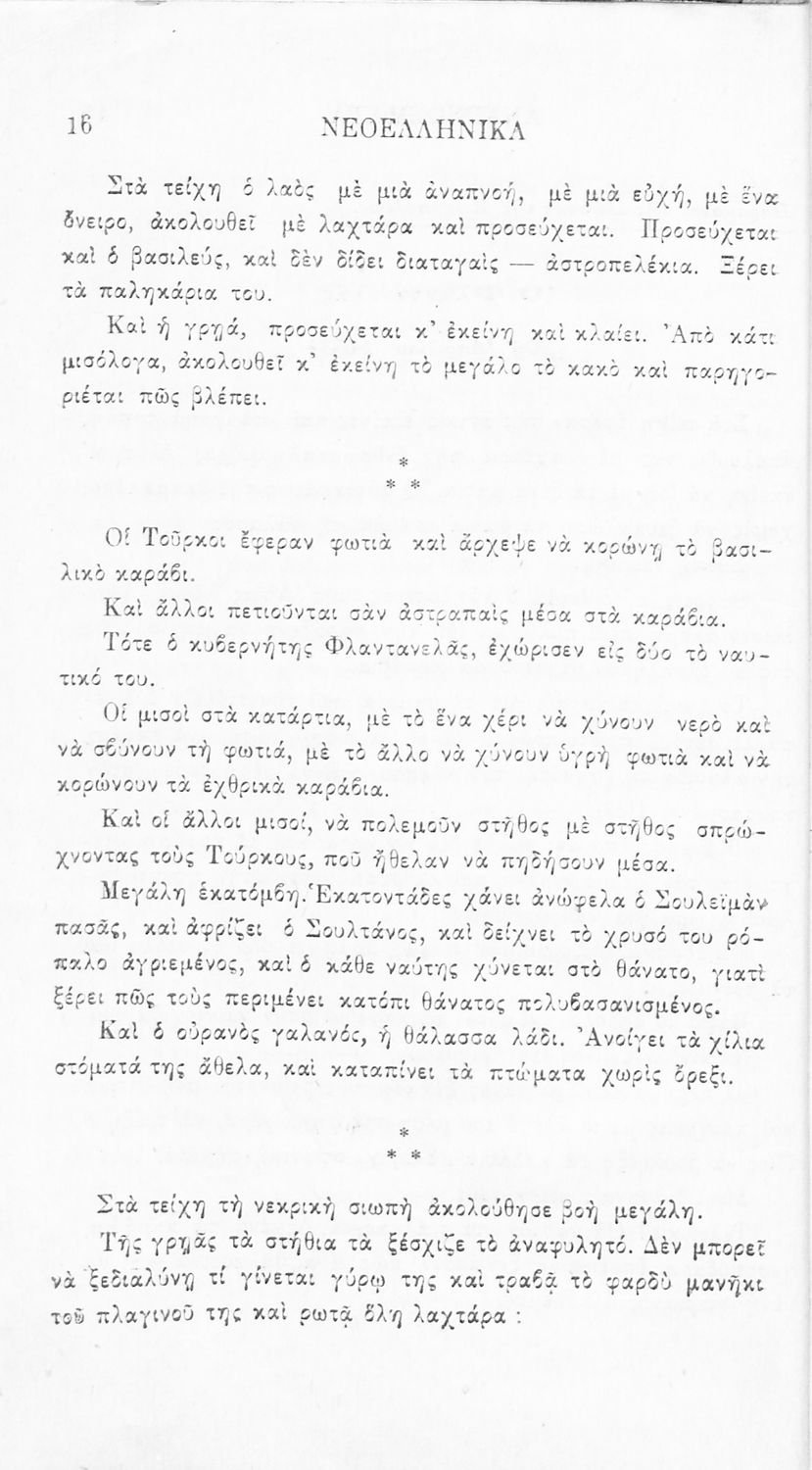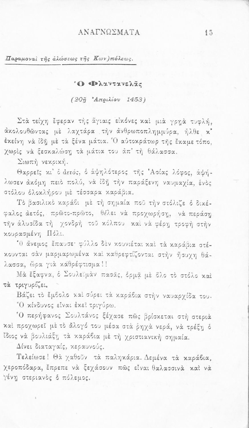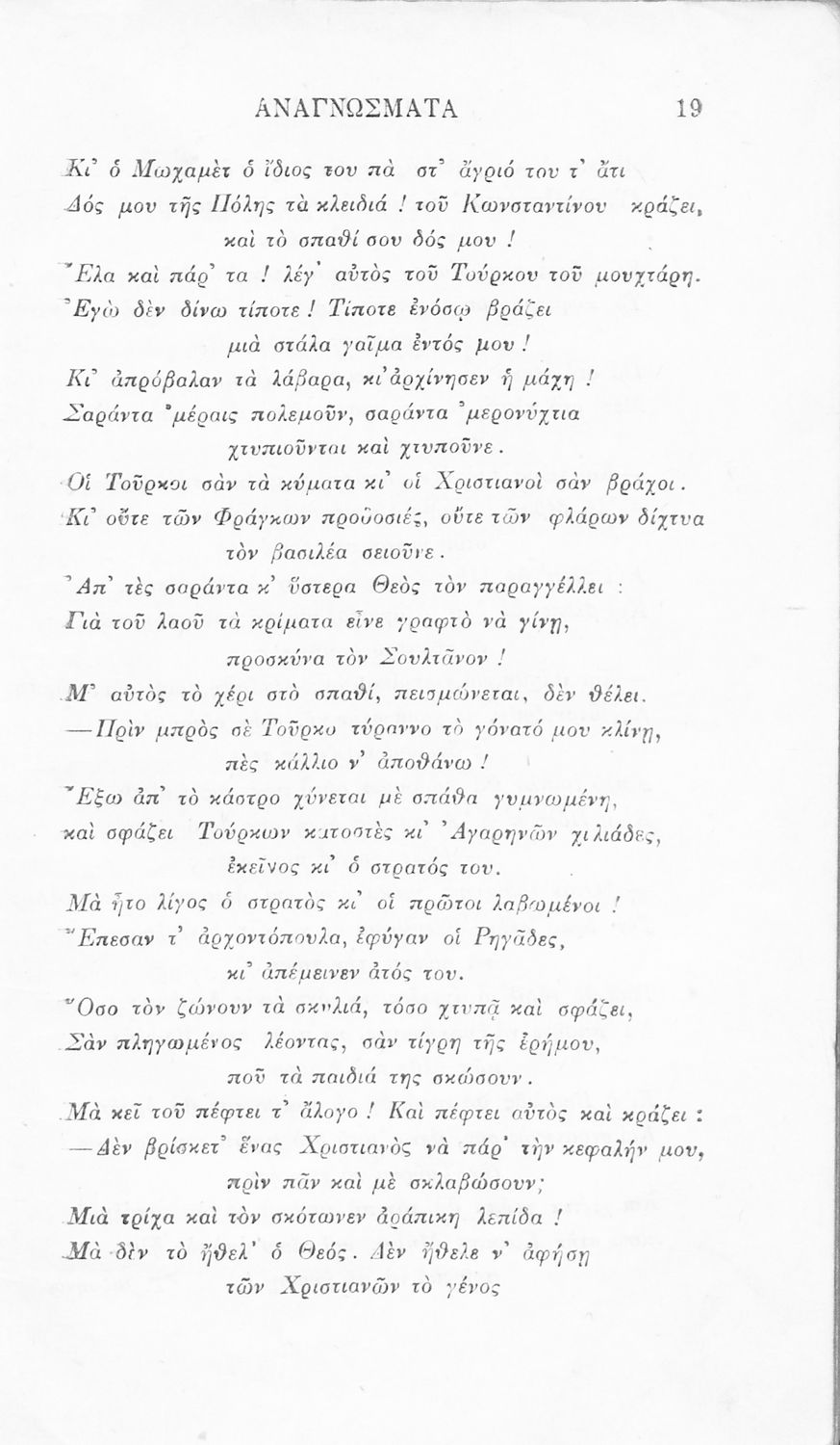Σχολικό εγχειρίδιο Νέων Ελληνικών Γ' Ελληνικού Σχολείου που περιλαμβάνει ποιήματα και πεζά Ελλήνων συγγραφέων και δημοτικά τραγούδια εμπνευσμένα από την σύγχρονη ελληνική ιστορία, τη βυζαντινή ιστορία, την ελληνική φύση και τη ζωή στην ύπαιθρο, την οικογενειακή ζωή και τη θρησκευτική παράδοση. Περιέχει και παράρτημα με βιογραφίες των συγγραφέων και λεξιλόγιο.
