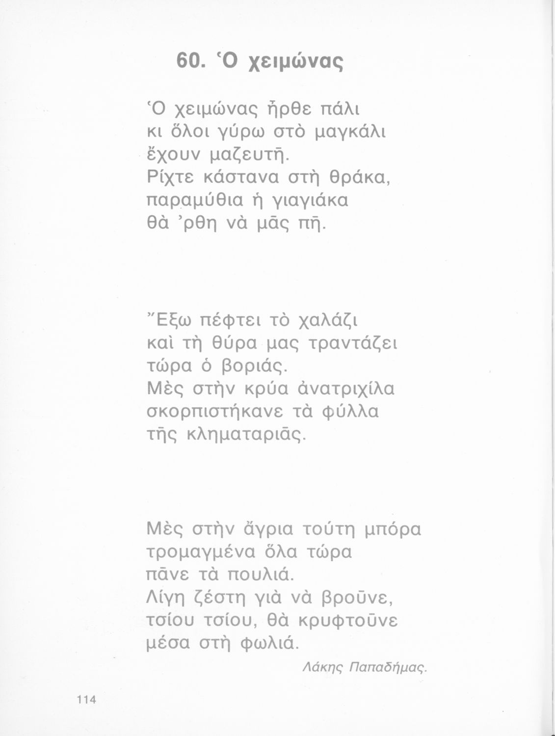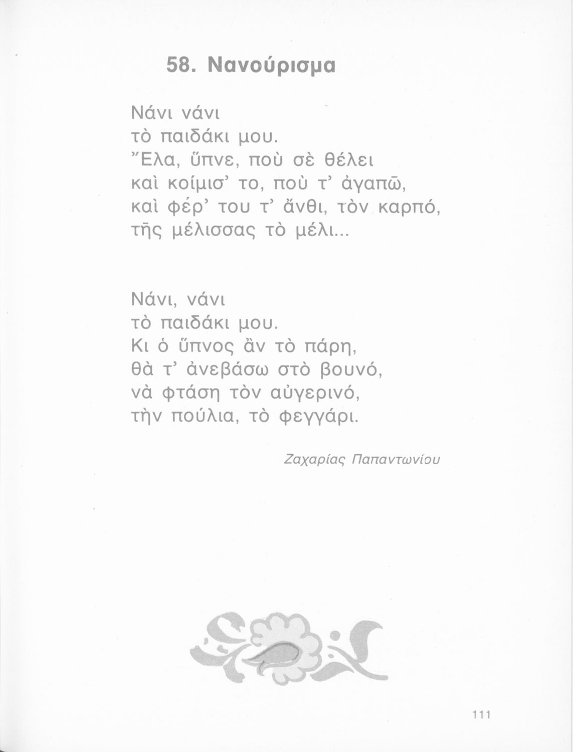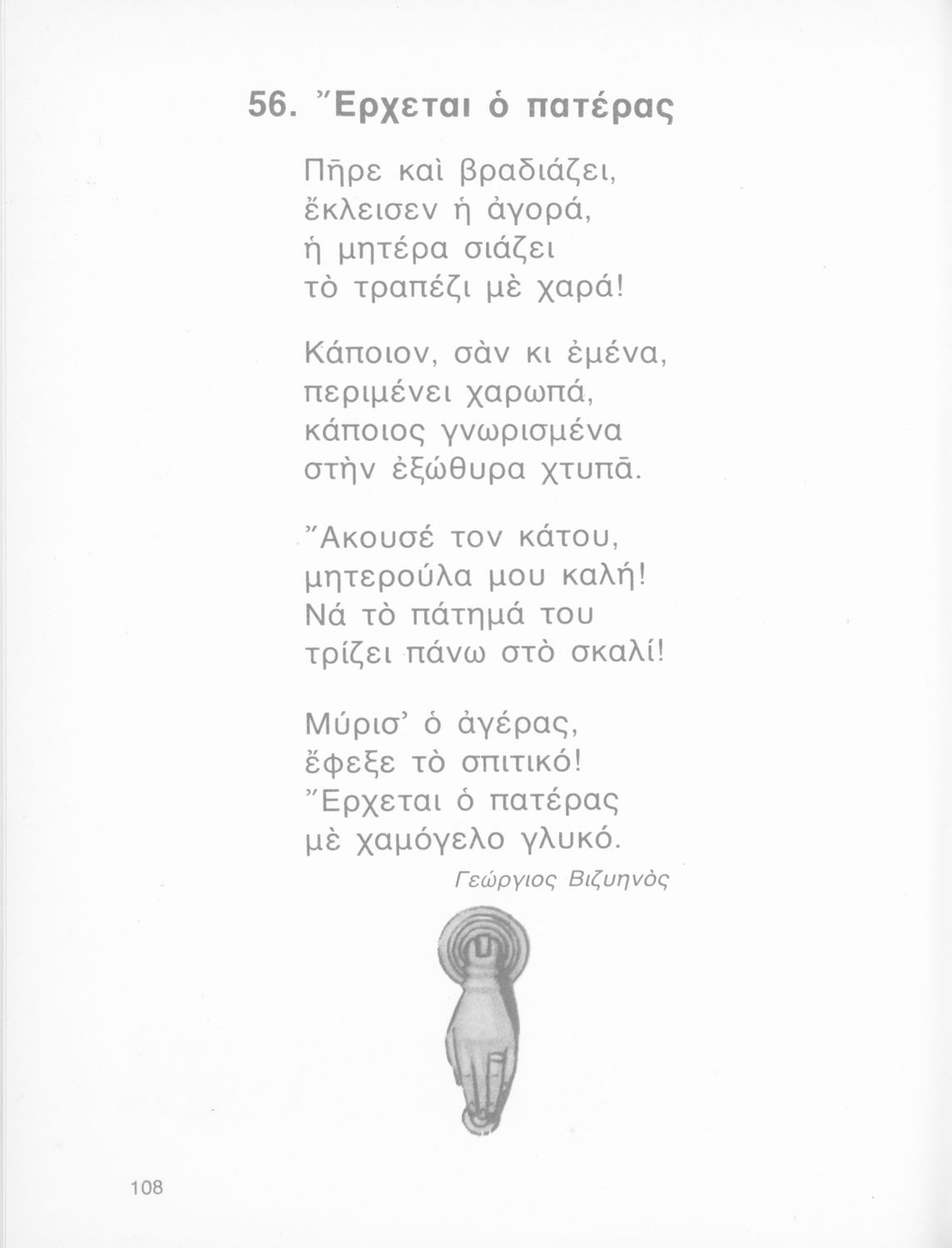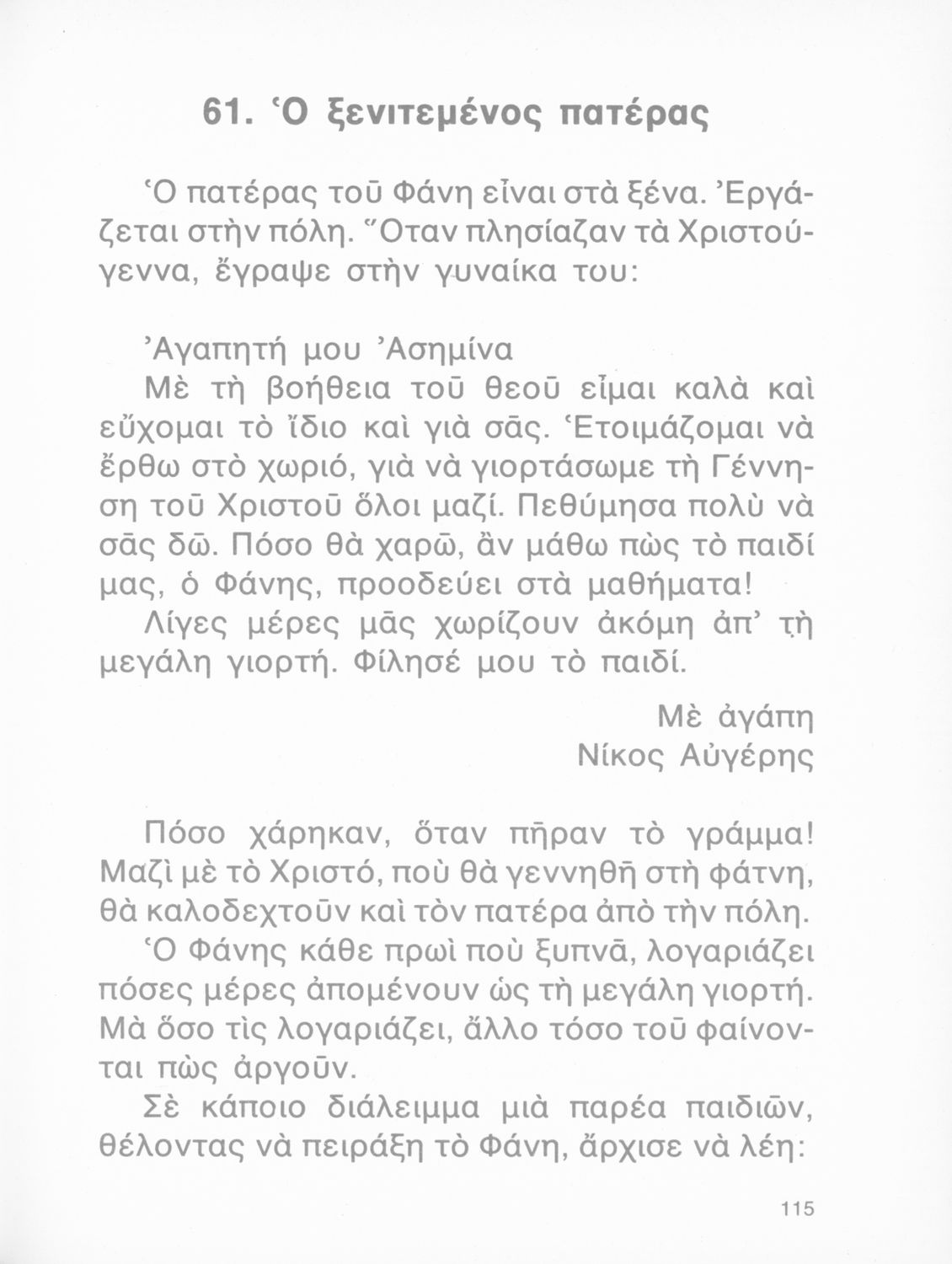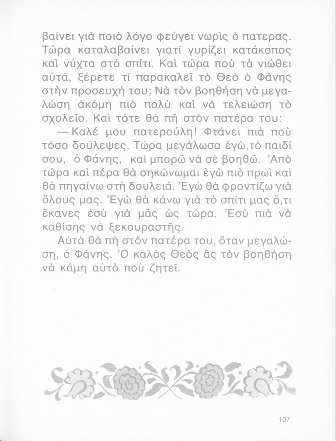 Αναγνωστικό Β' Δημοτικού που είναι χωρισμένο σύμφωνα με τις εποχές του χρόνου και περιλαμβάνει κείμενα ηθοποιητικού περιεχομένου εμπνευσμένα από τη θρησκευτική, εθνική, κοινωνική και οικογενειακή ζωή.