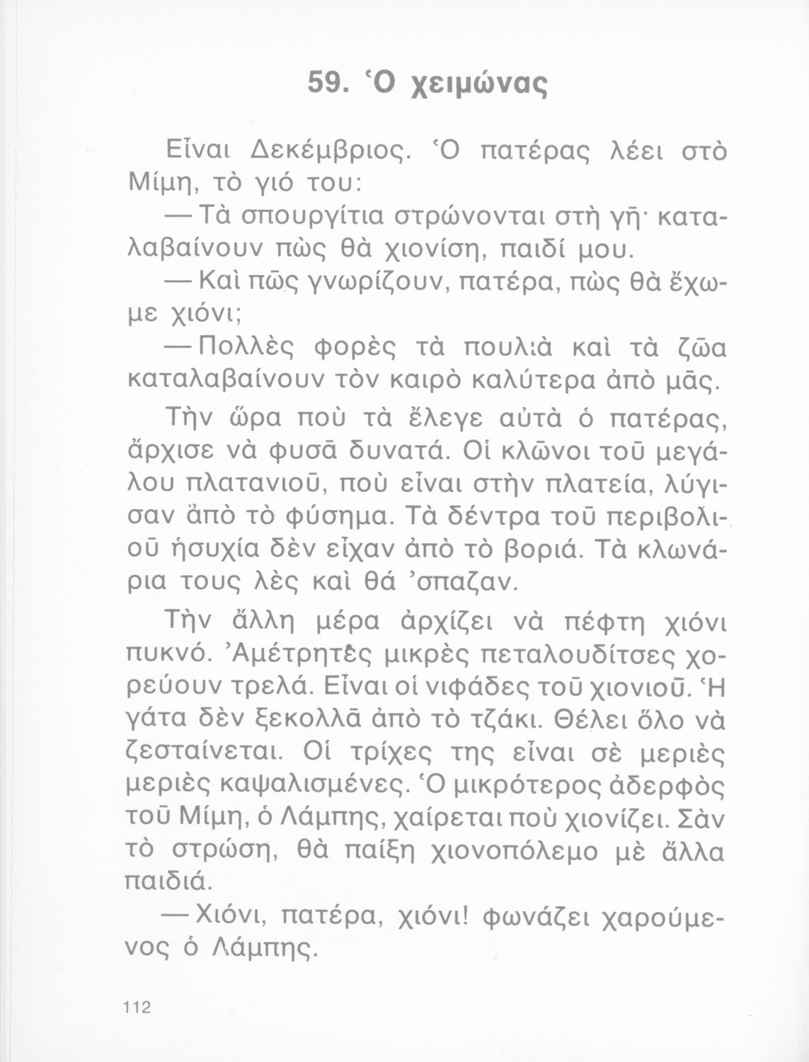Βαθμίδα εκπαίδευσης: Πρωτοβάθμια Τάξη: Β' Δημοτικού Μάθημα: Νέα Ελληνικά Γλώσσα: Δημοτική Παρουσίαση περιεχομένου: Αναγνωστικό Β' Δημοτικού που είναι χωρισμένο σύμφωνα με τις εποχές του χρόνου και περιλαμβάνει κείμενα ηθοποιητικού περιεχομένου εμπνευσμένα από τη θρησκευτική, εθνική, κοινωνική και οικογενειακή ζωή. |