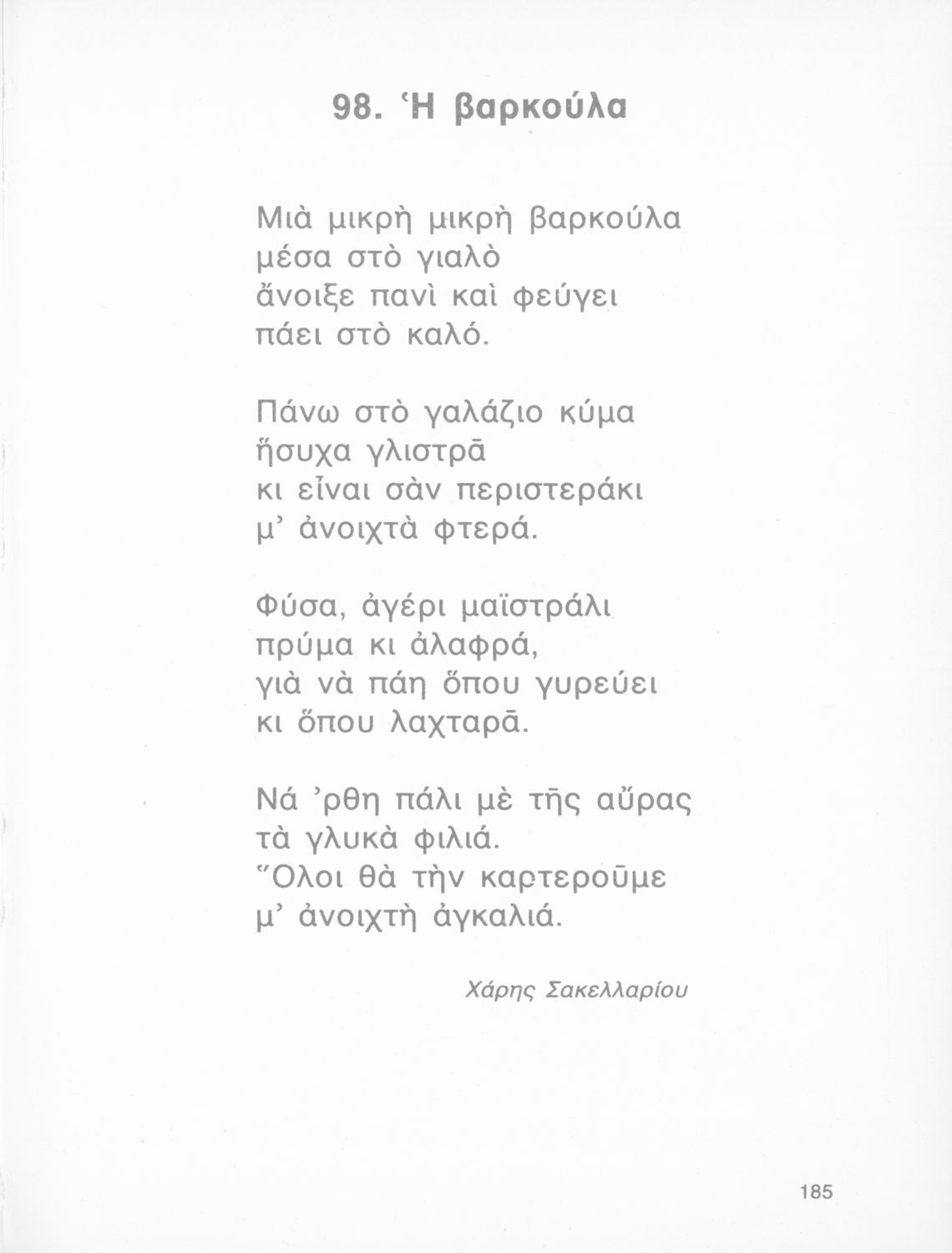 Αναγνωστικό Β' Δημοτικού που είναι χωρισμένο σύμφωνα με τις εποχές του χρόνου και περιλαμβάνει κείμενα ηθοποιητικού περιεχομένου εμπνευσμένα από τη θρησκευτική, εθνική, κοινωνική και οικογενειακή ζωή. Φέρει το