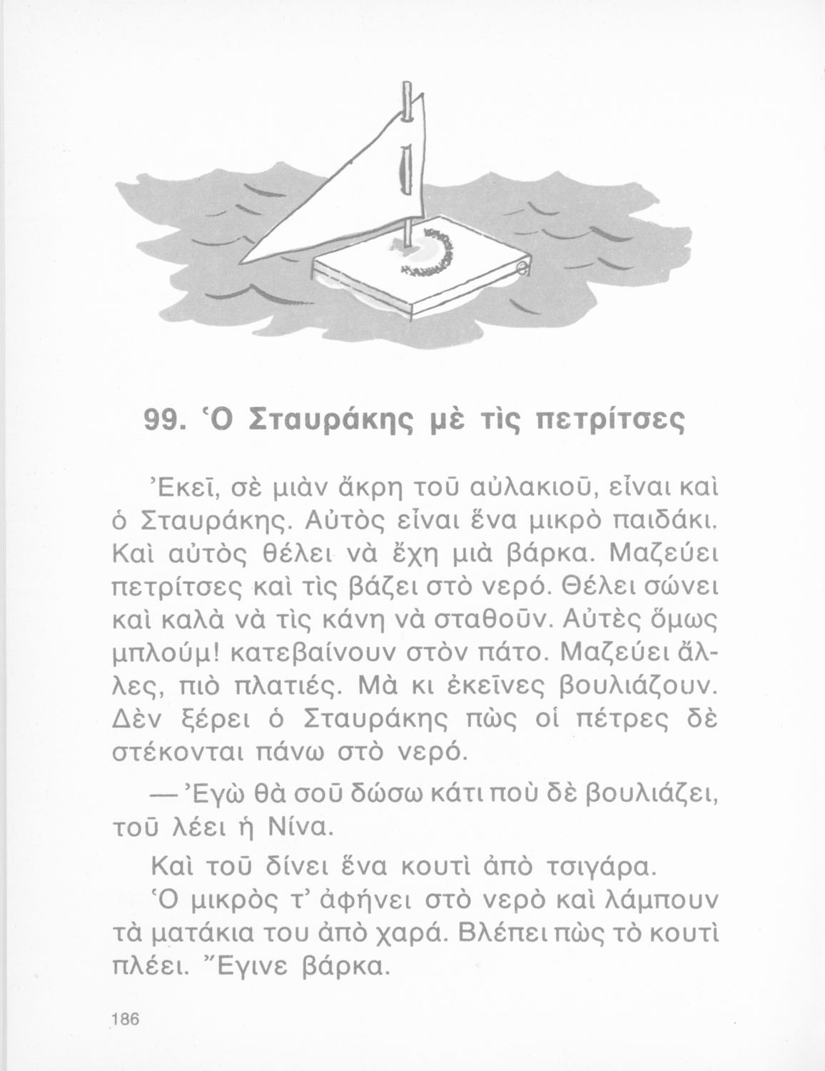 Αναγνωστικό Β΄ Δημοτικού που περιλαμβάνει πεζογραφήματα και ποιήματα από την οικογενειακή και την κοινωνική ζωή των παιδιών, από την ελληνική ύπαιθρο, από τις ελληνικές εορτές και από τις 4 εποχές του χρόνου. ...