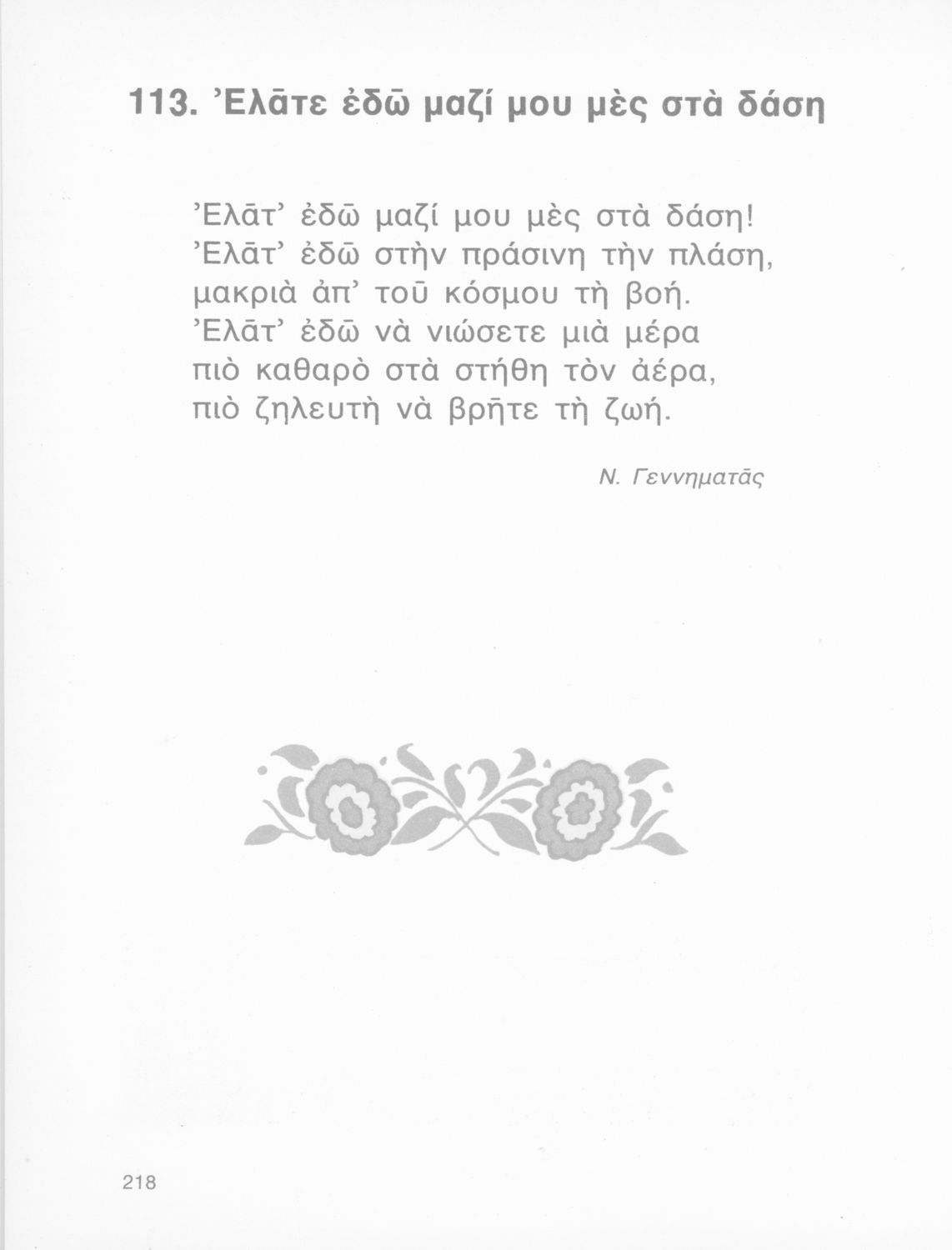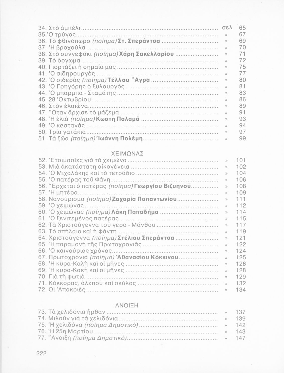 Αναγνωστικό Β' Δημοτικού που είναι χωρισμένο σύμφωνα με τις εποχές του χρόνου και περιλαμβάνει κείμενα ηθοποιητικού περιεχομένου εμπνευσμένα από τη θρησκευτική, εθνική, κοινωνική και οικογενειακή ζωή. Φέρει το