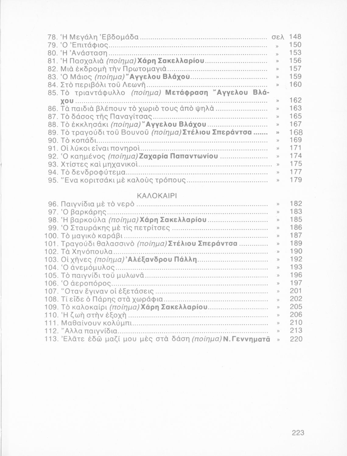 Αναγνωστικό Β΄ Δημοτικού που περιλαμβάνει πεζογραφήματα και ποιήματα από την οικογενειακή και την κοινωνική ζωή των παιδιών, από την ελληνική ύπαιθρο, από τις ελληνικές εορτές και από τις 4 εποχές του χρόνου. ...