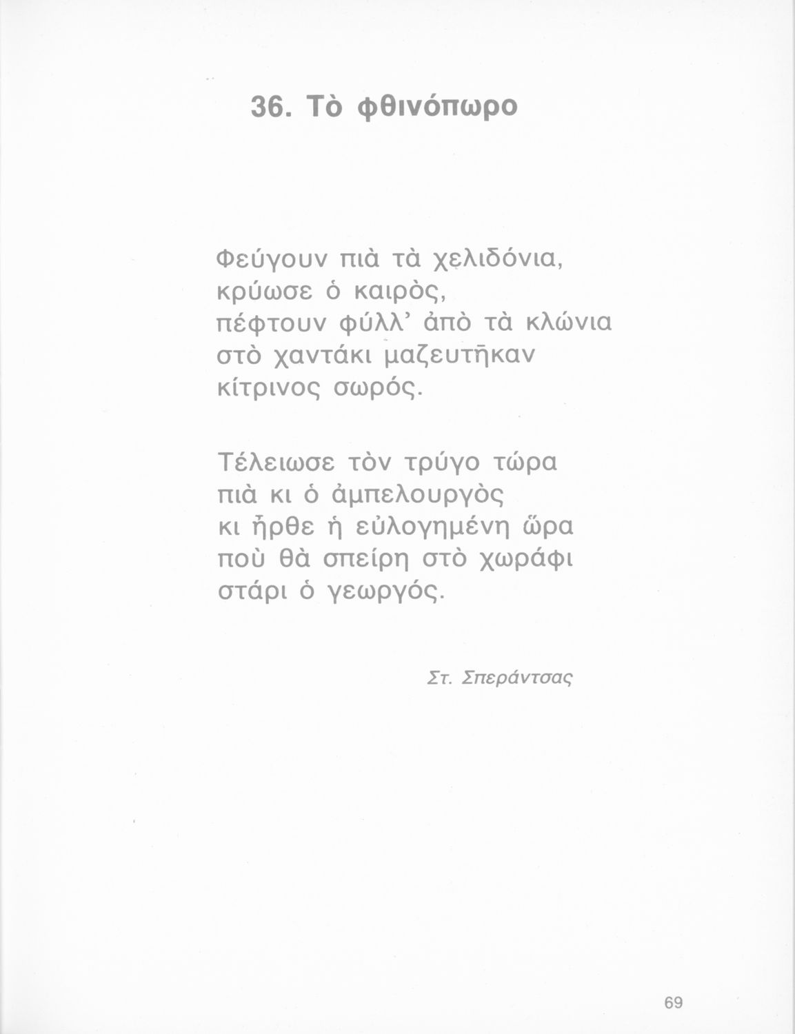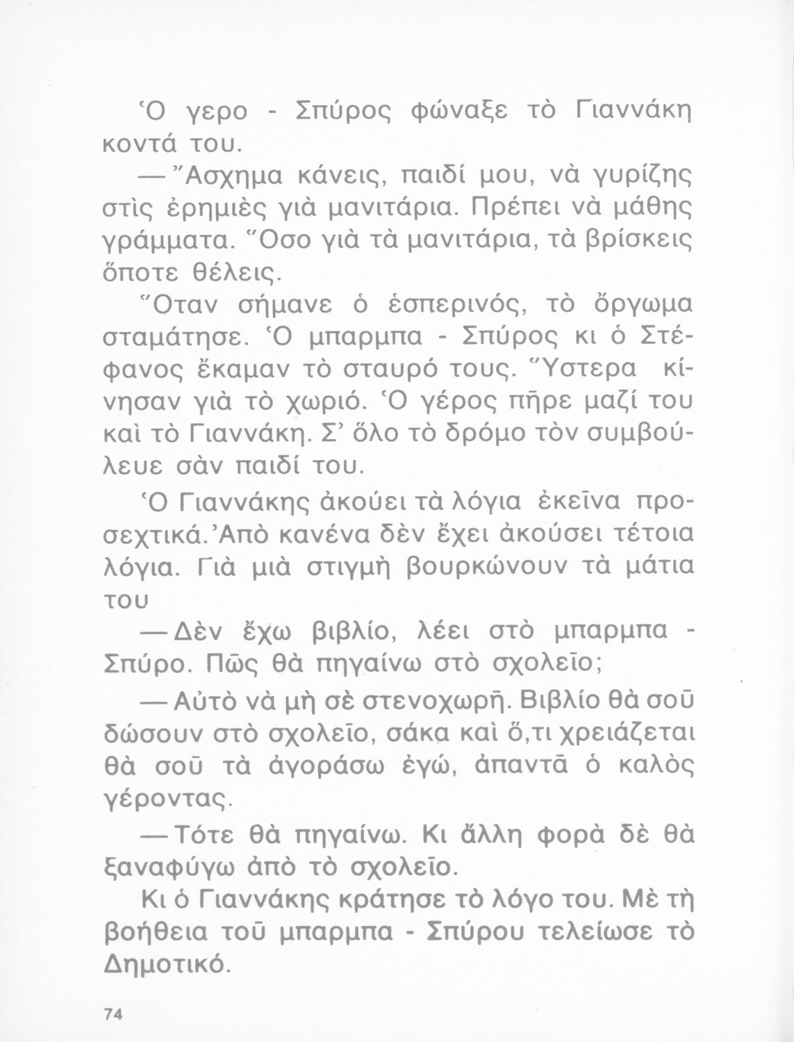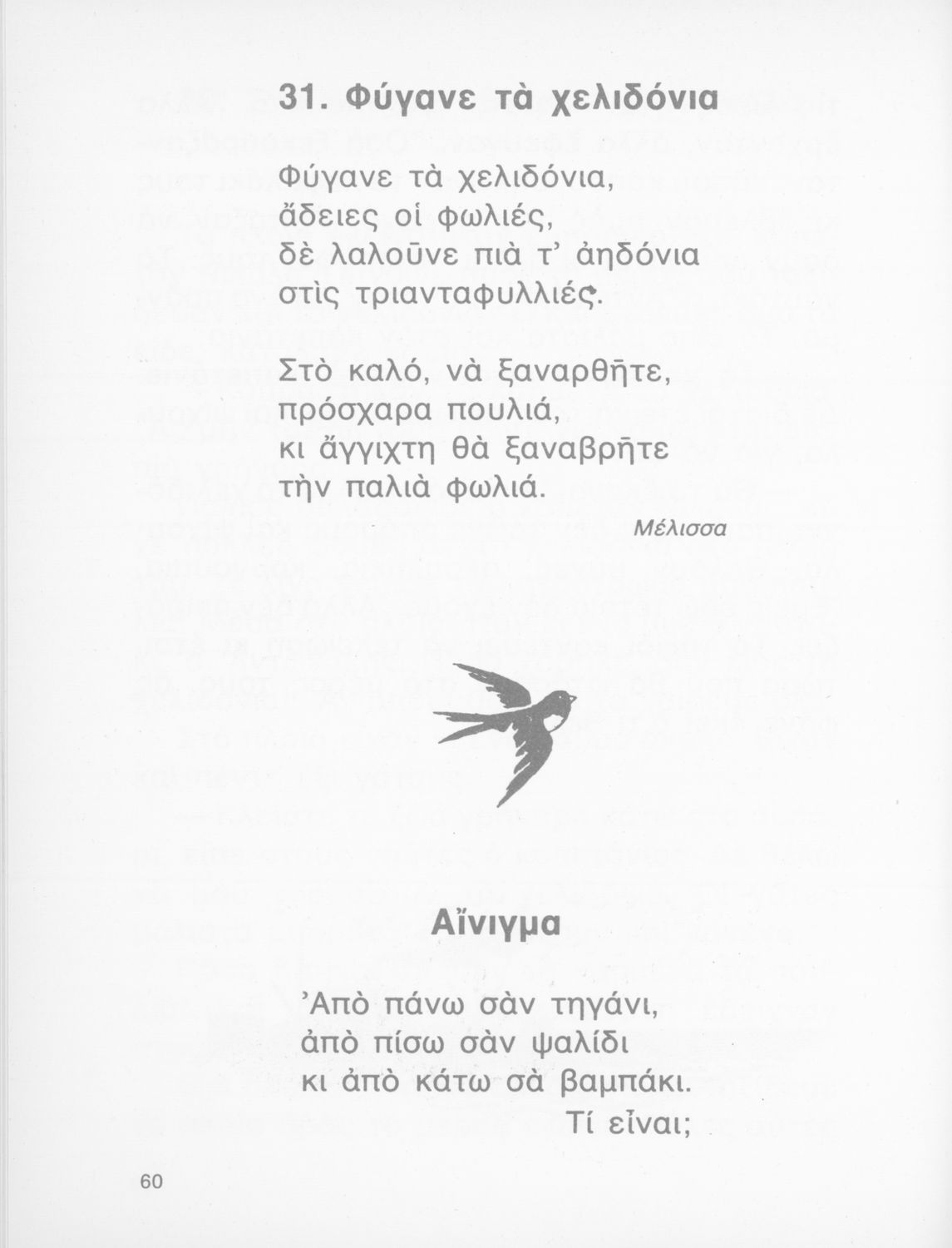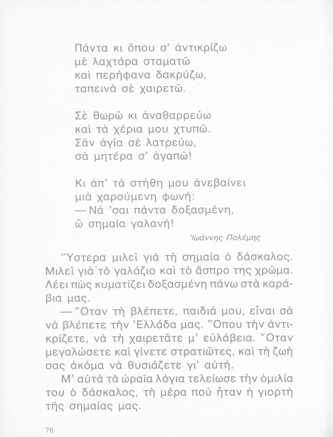 Αναγνωστικό Β' Δημοτικού που είναι χωρισμένο σύμφωνα με τις εποχές του χρόνου και περιλαμβάνει κείμενα ηθοποιητικού περιεχομένου εμπνευσμένα από τη θρησκευτική, εθνική, κοινωνική και οικογενειακή ζωή.