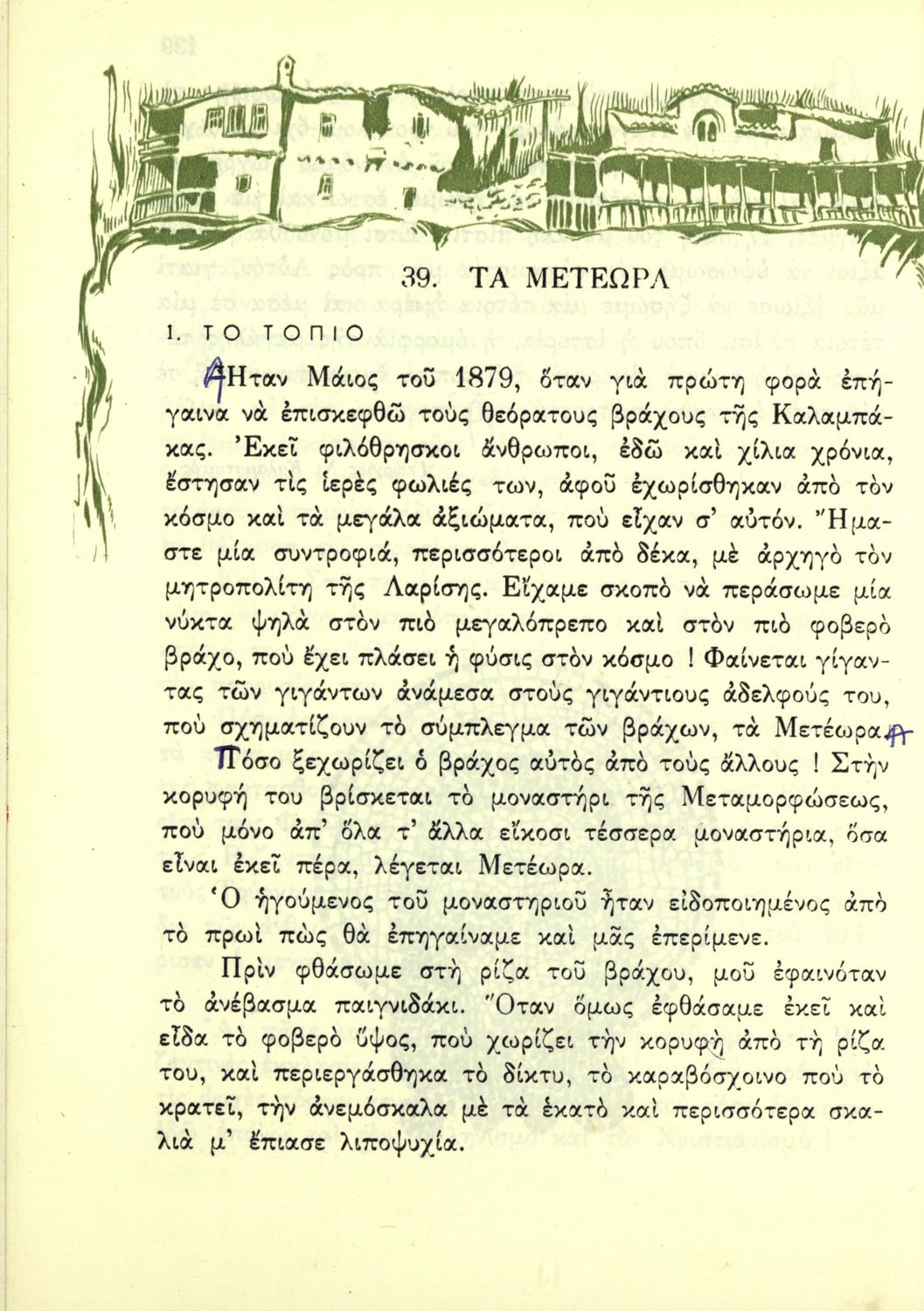Αναγνωστικό Ε΄ Δημοτικού που περιέχει κείμενα εμπνευσμένα από την εθνική, κοινωνική και οικογενειακή ζωή και την ελληνική φύση, μυθολογία και ιστορία.