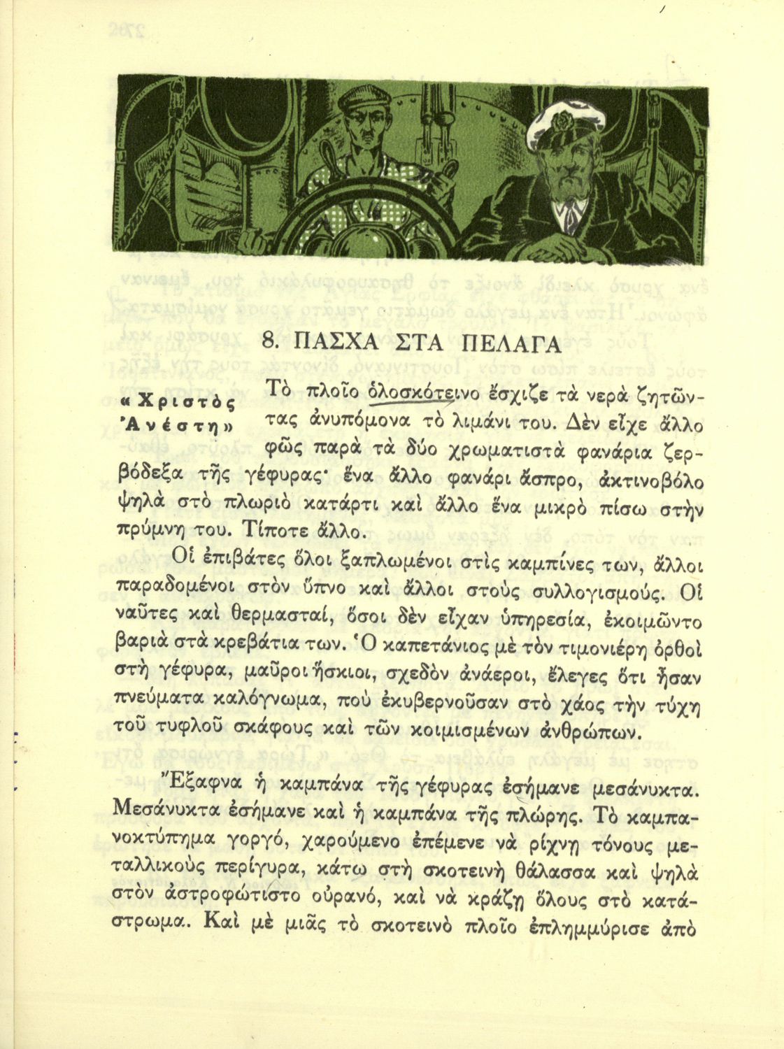 Αναγνωστικό Ε΄ Δημοτικού που περιέχει κείμενα εμπνευσμένα από την εθνική, κοινωνική και οικογενειακή ζωή και την ελληνική φύση, μυθολογία και ιστορία.