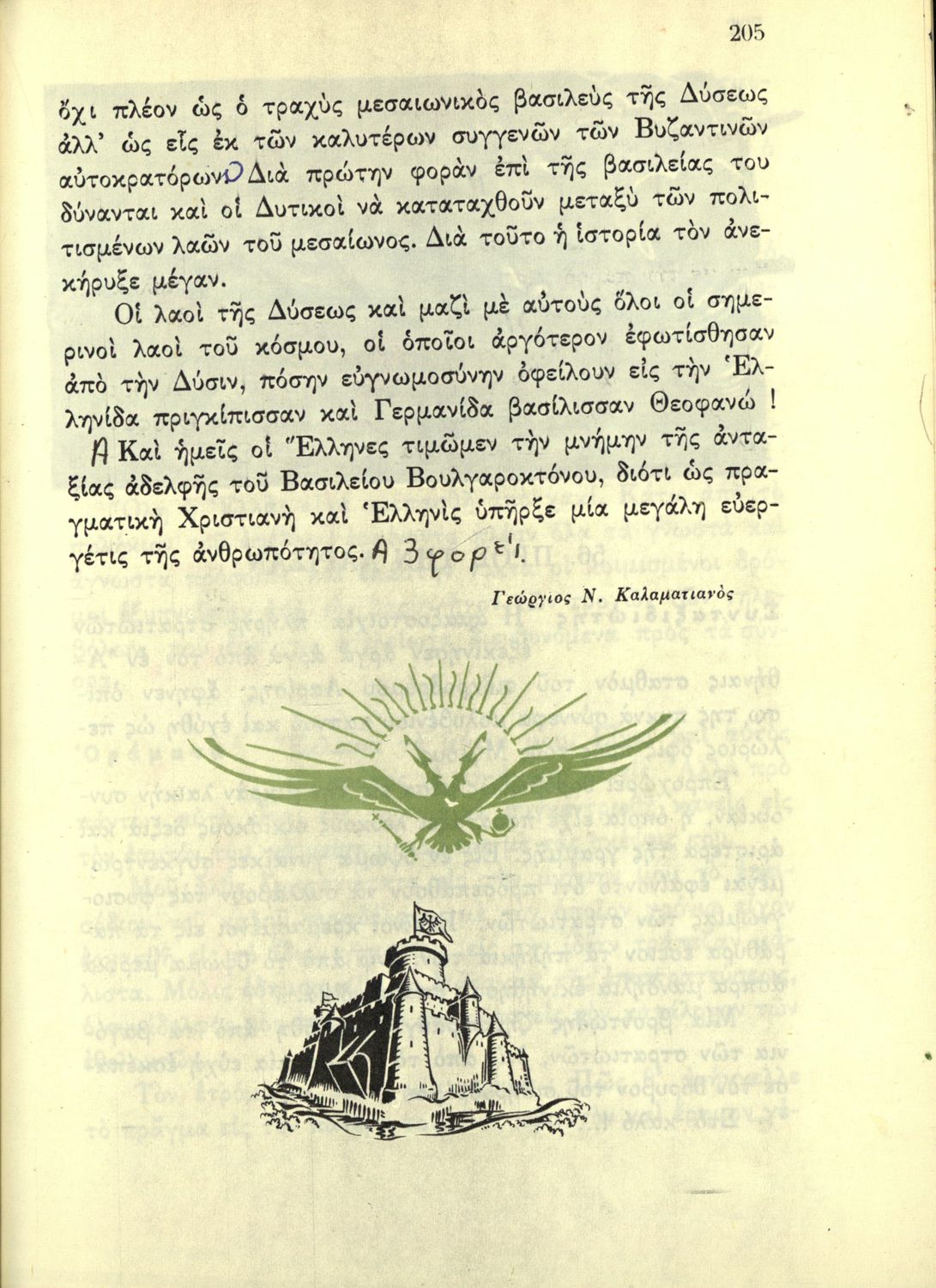 Αναγνωστικό Ε' Δημοτικού που εξιστορεί τη ζωή και το έργο του Μ. Αλεξάνδρου. Προοριζόταν, όπως αναφέρει η έκθεση των κριτών, να εμπνεύσει "φρονήματα υψηλά και γενναία και να υποθάλψη το συναίσθημα της ...