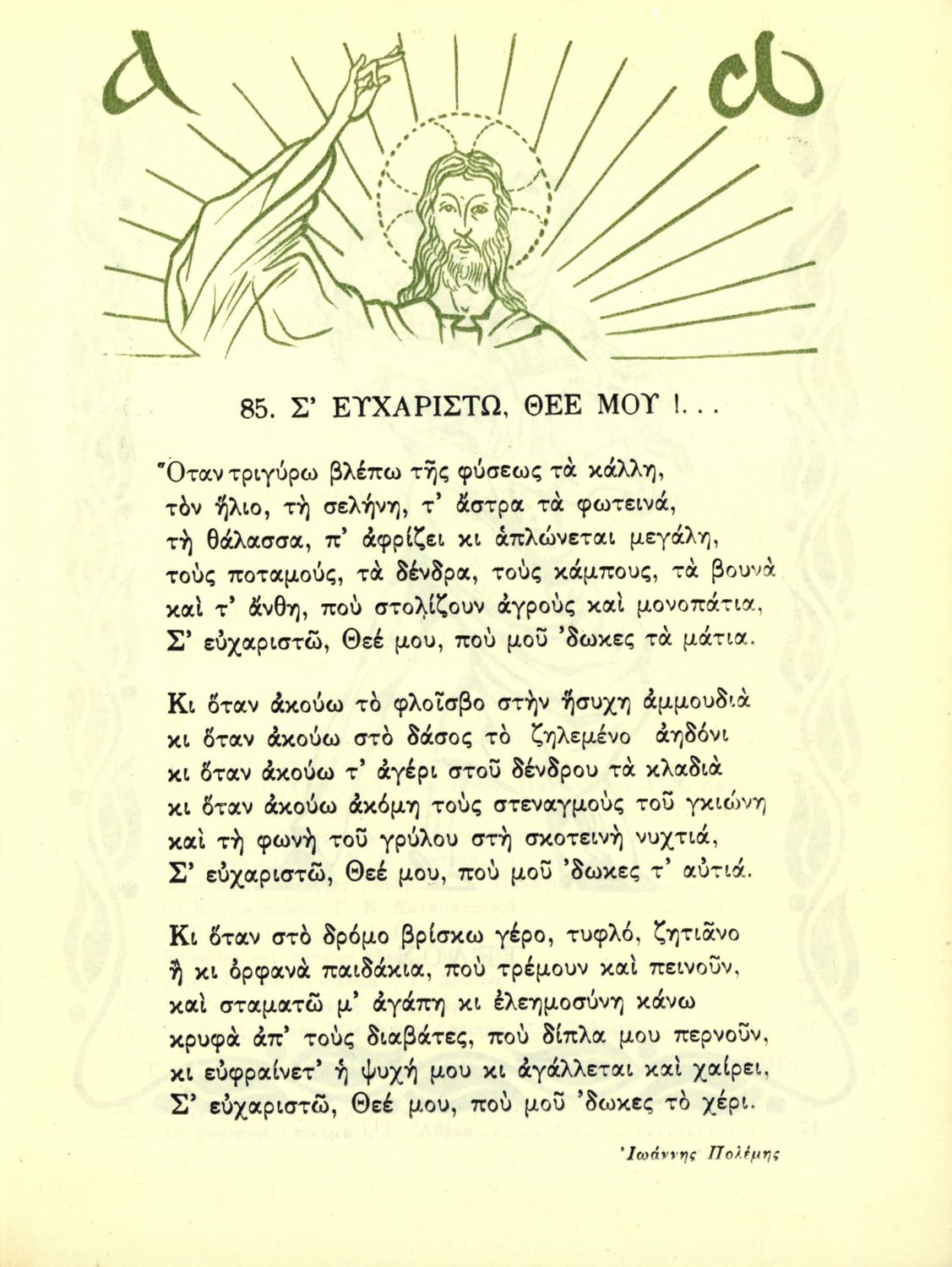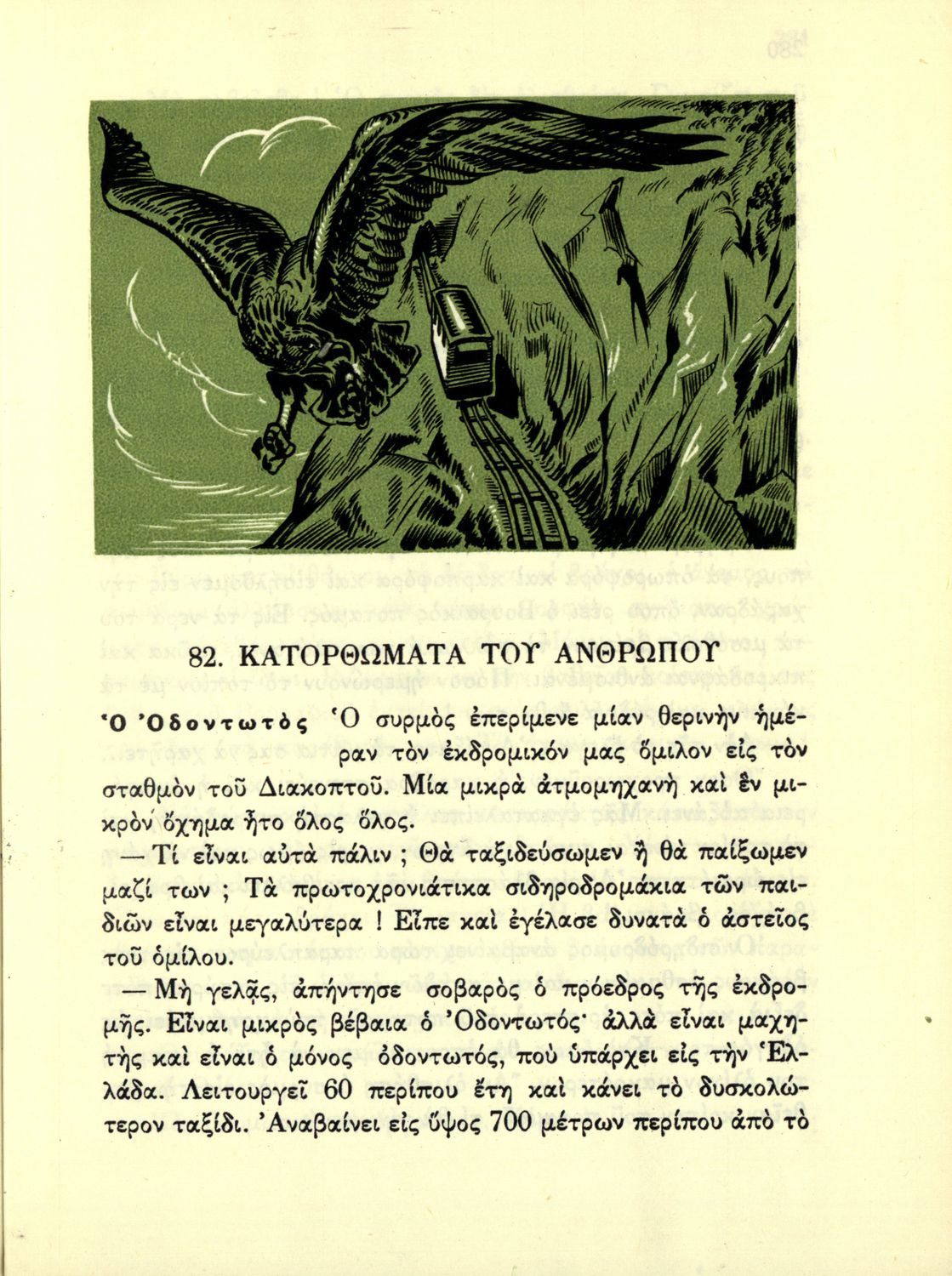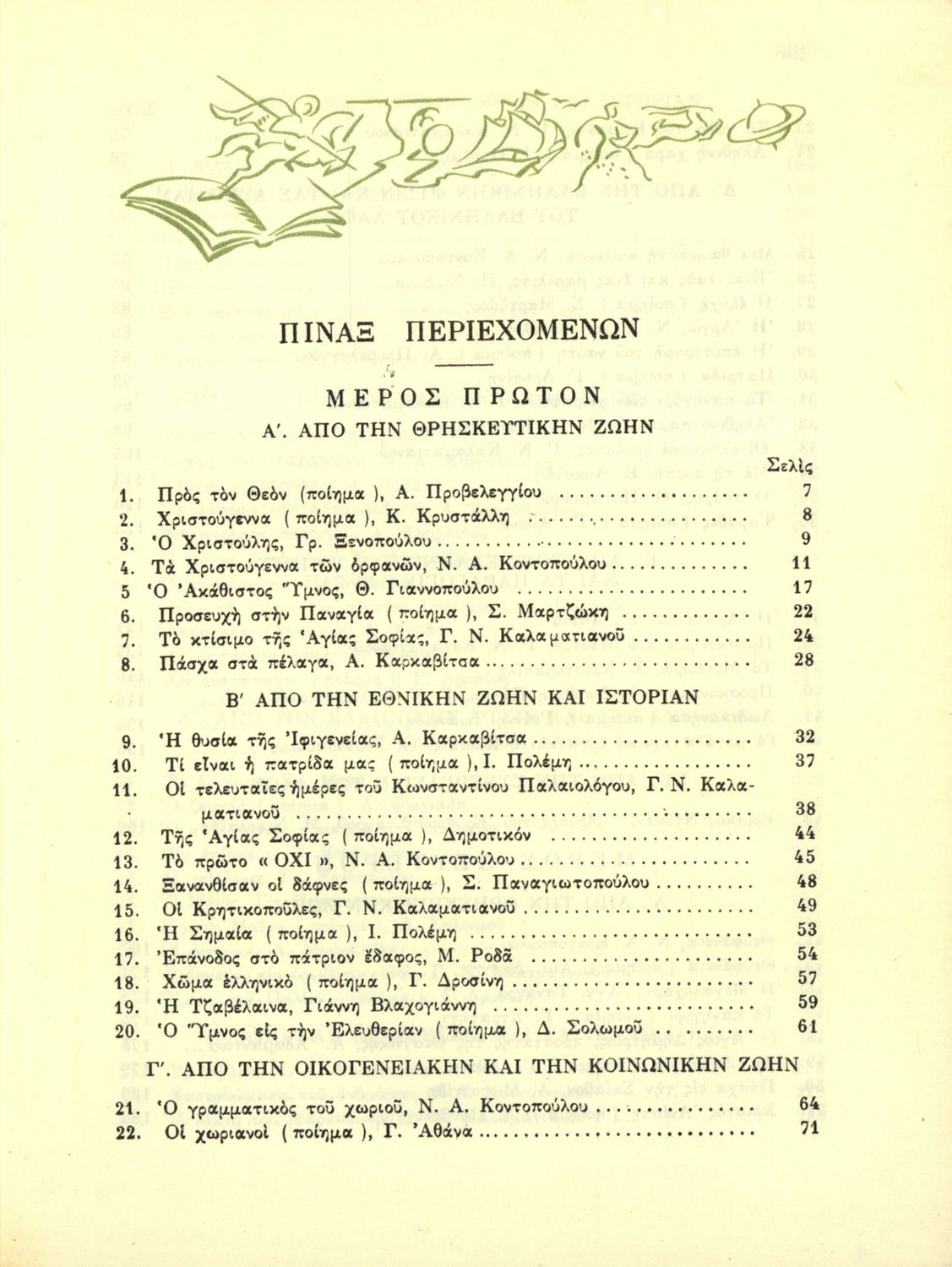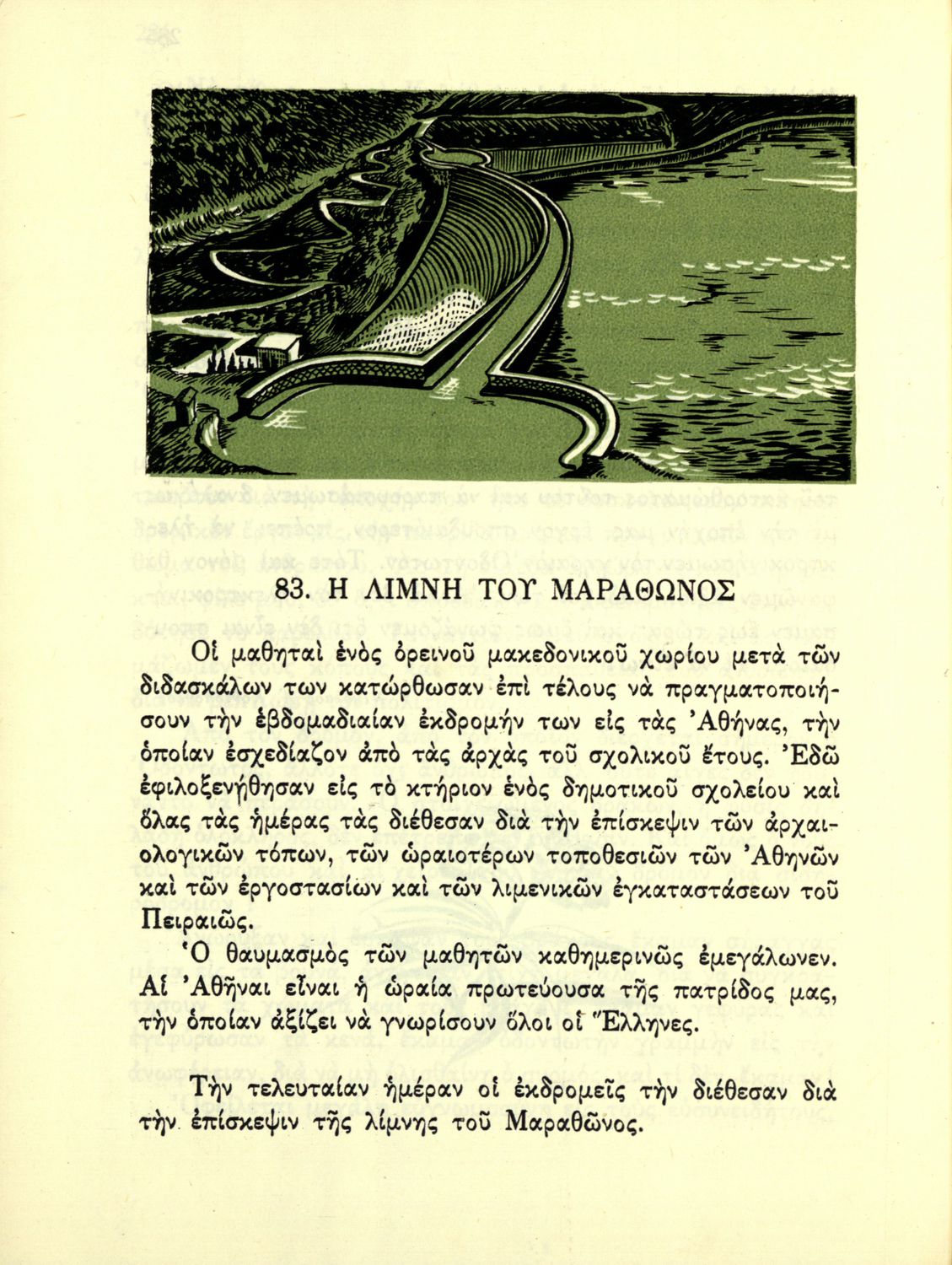 Αναγνωστικό Ε΄ Δημοτικού που περιέχει κείμενα εμπνευσμένα από την εθνική, κοινωνική και οικογενειακή ζωή και την ελληνική φύση, μυθολογία και ιστορία. Φέρει το σύμβολο της δικτατορίας.